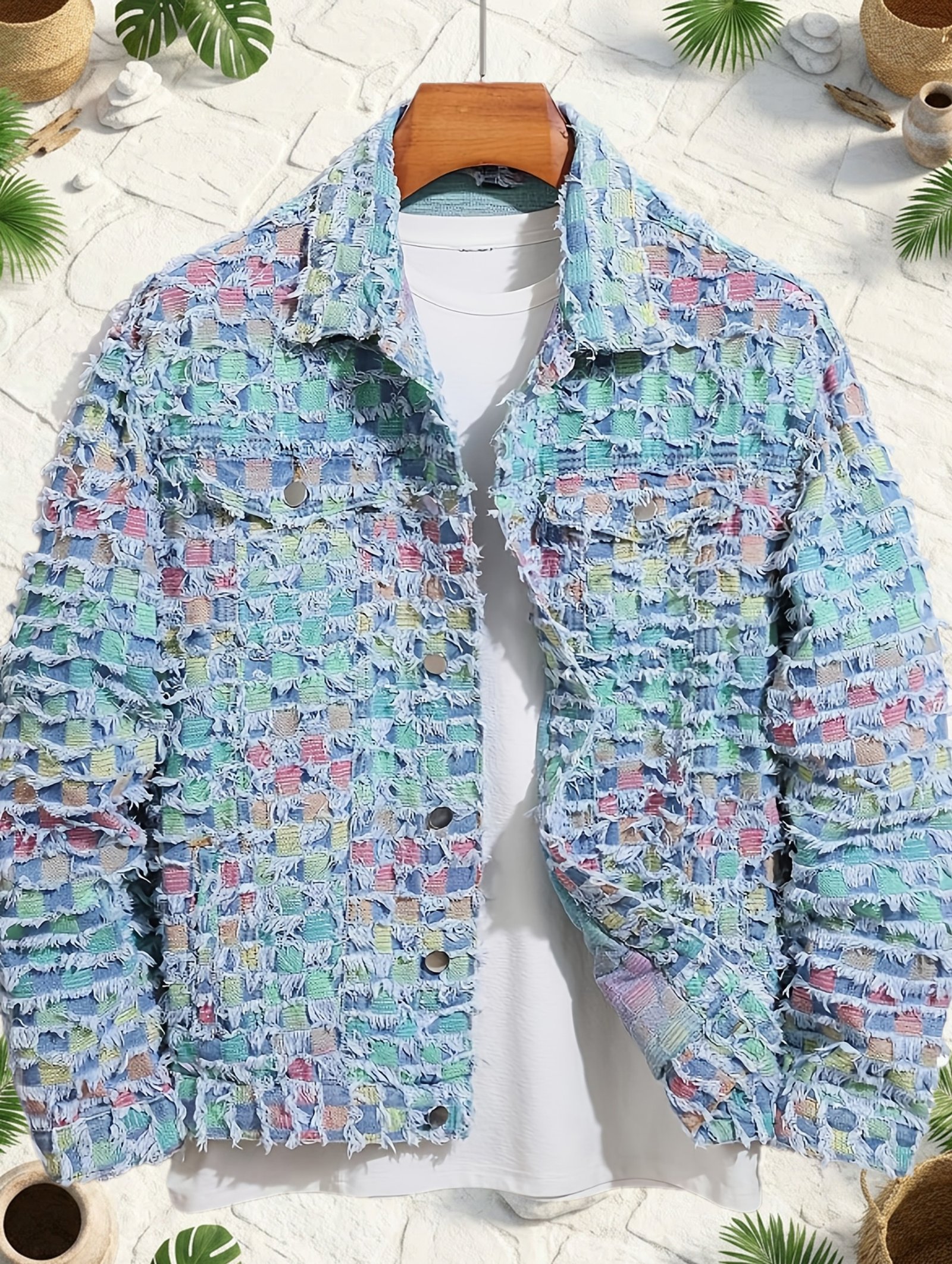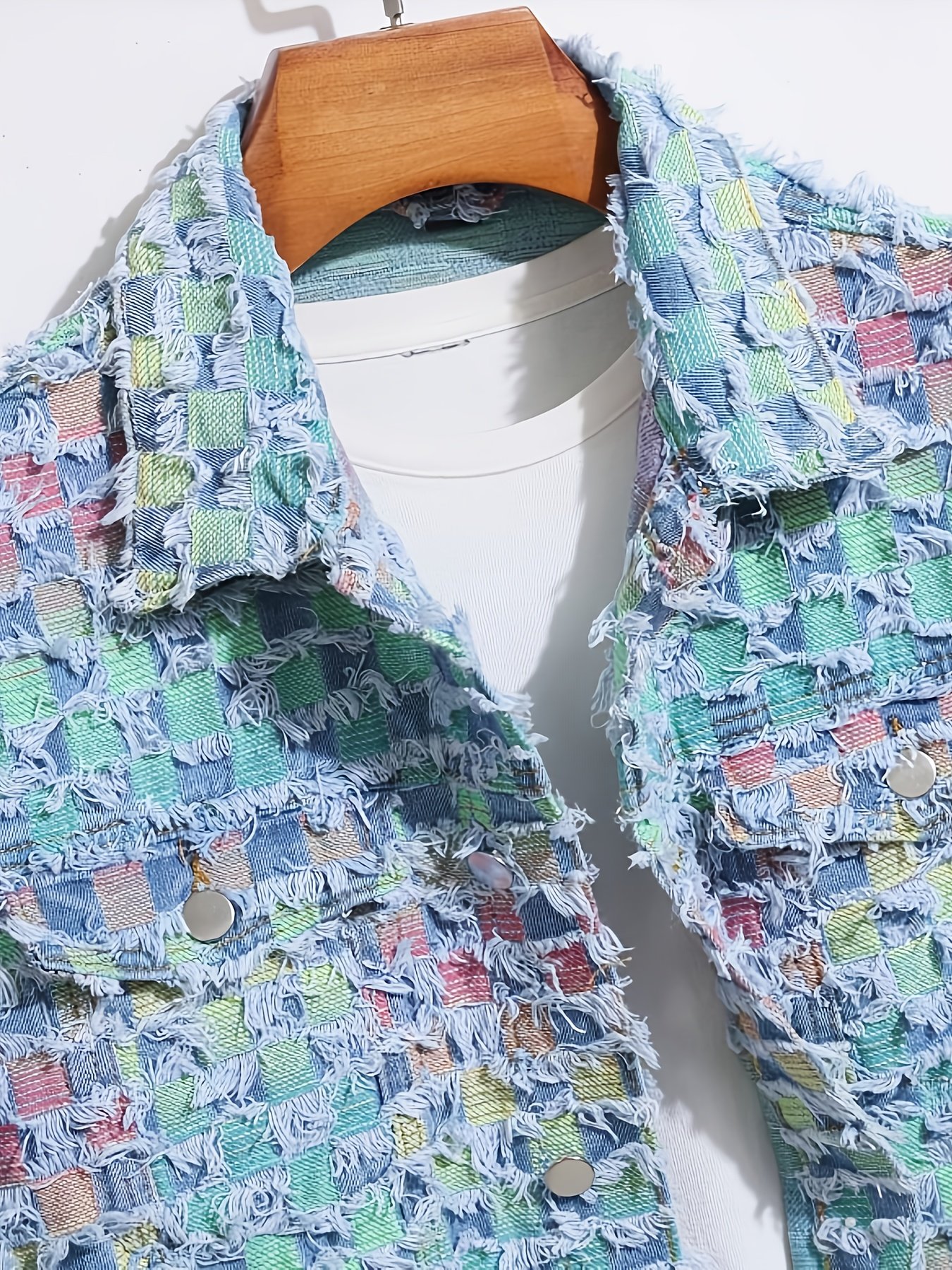 Be the first to review “Men's Trendy Plaid Fringe Color-block Denim Jacket” Cancel reply
