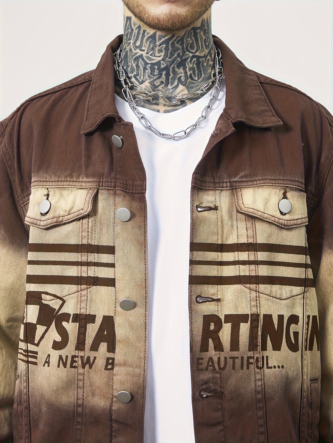 Be the first to review “Men'S Vintage Washed Distressed Gradient Denim Jacket – Brown to Gradient, Loose Fit Streetwear Coat with Chest Pocket, Single-Breasted Button Closure” Cancel reply