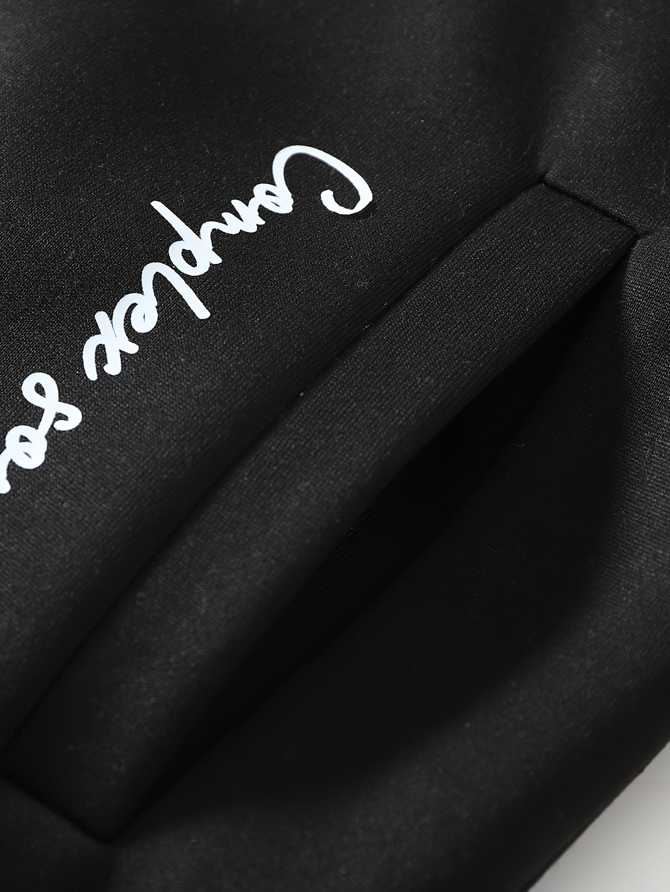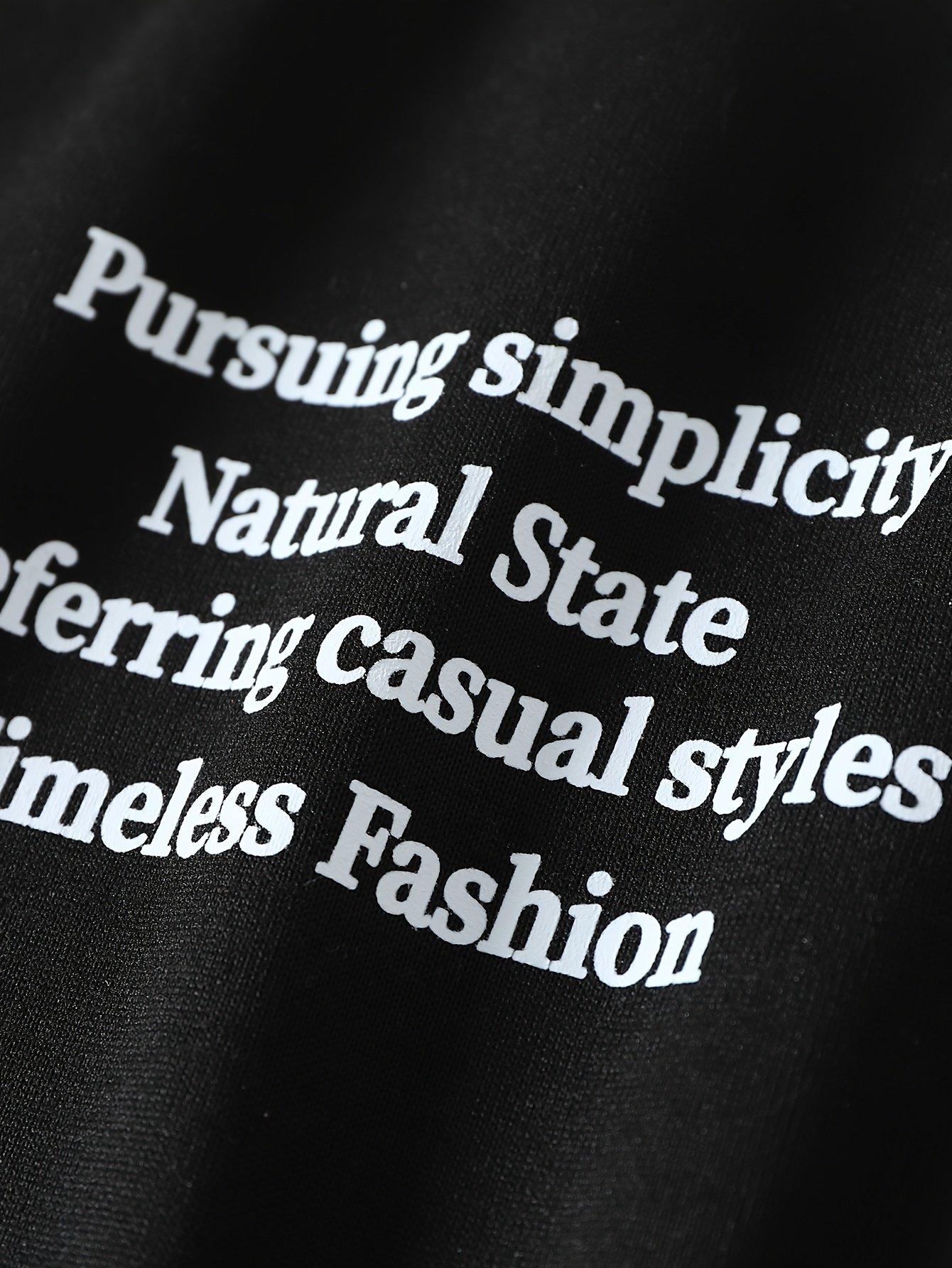 Men's Outdoor Winter Loose Fit Hooded Jacket with Warmth and Cold Protection Design, English Texture Black Zipper Outerwear Top, Suitable for Casual Dates and More