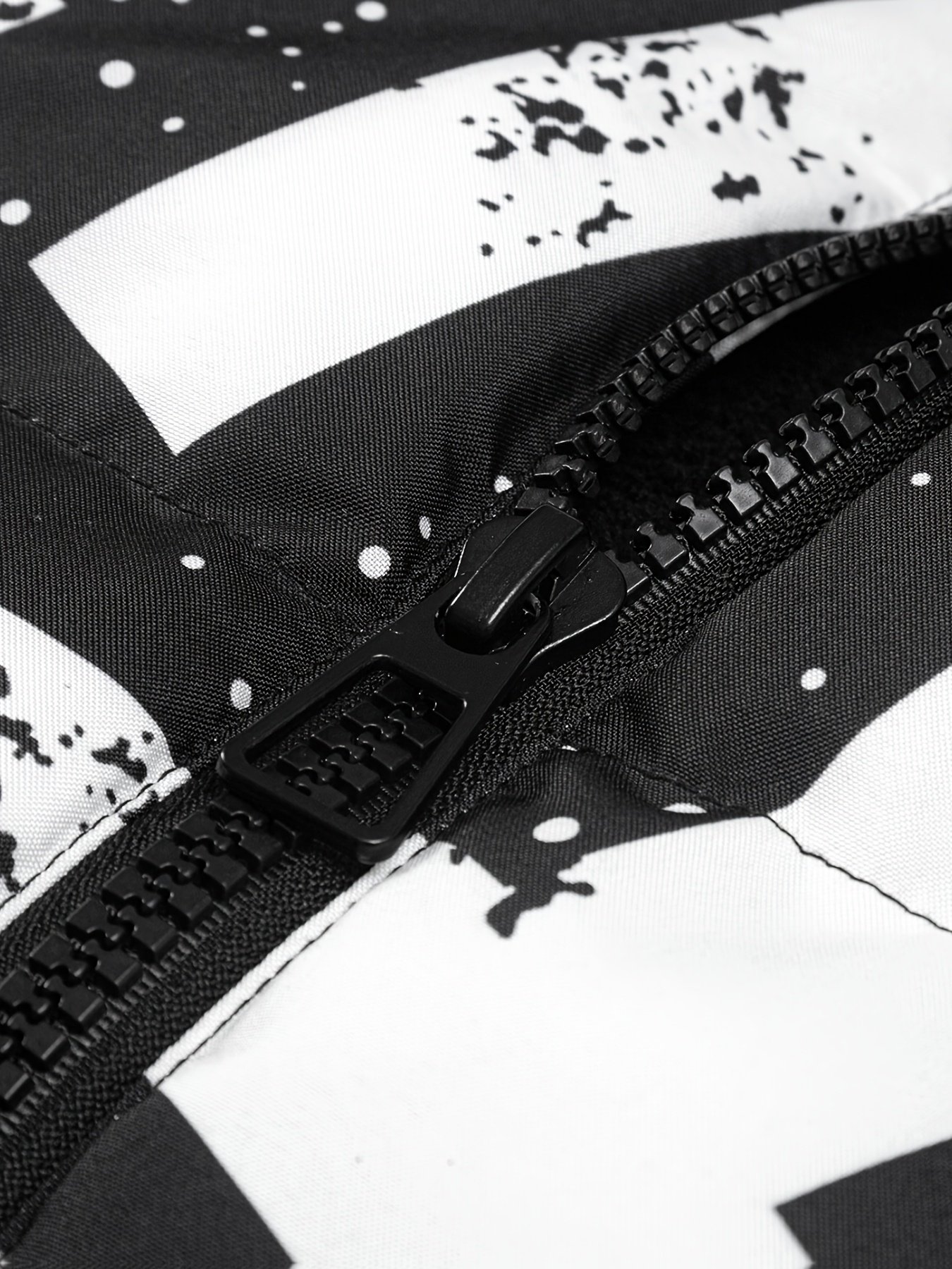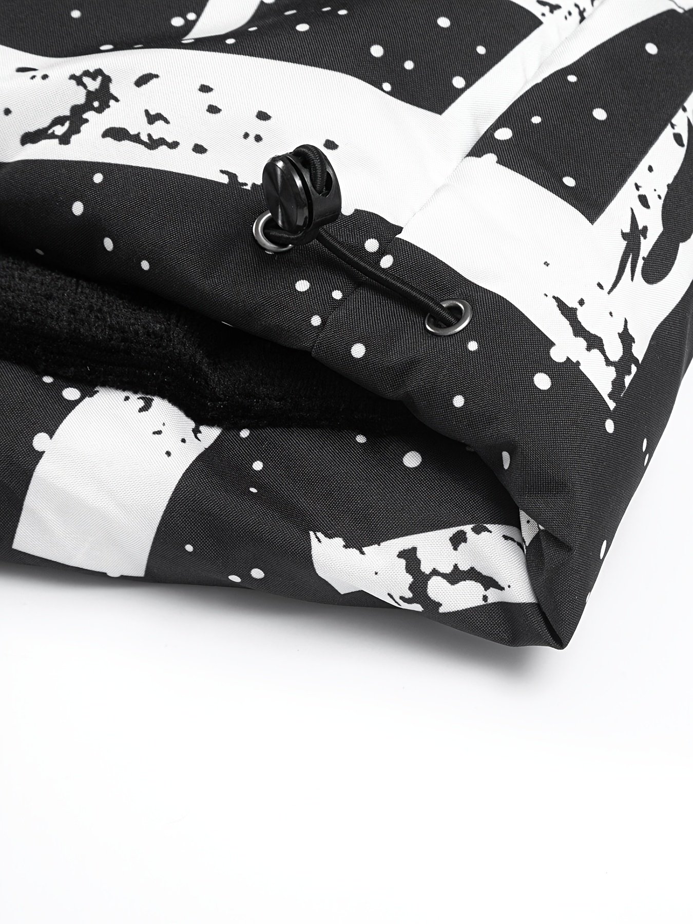 Men's Outdoor Winter Loose Fit Hooded Jacket with Warmth and Cold Protection Design, English Texture Black Zipper Outerwear Top, Suitable for Casual Dates and More