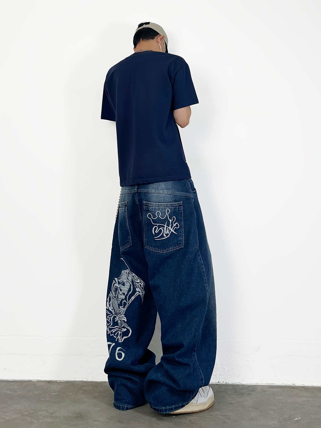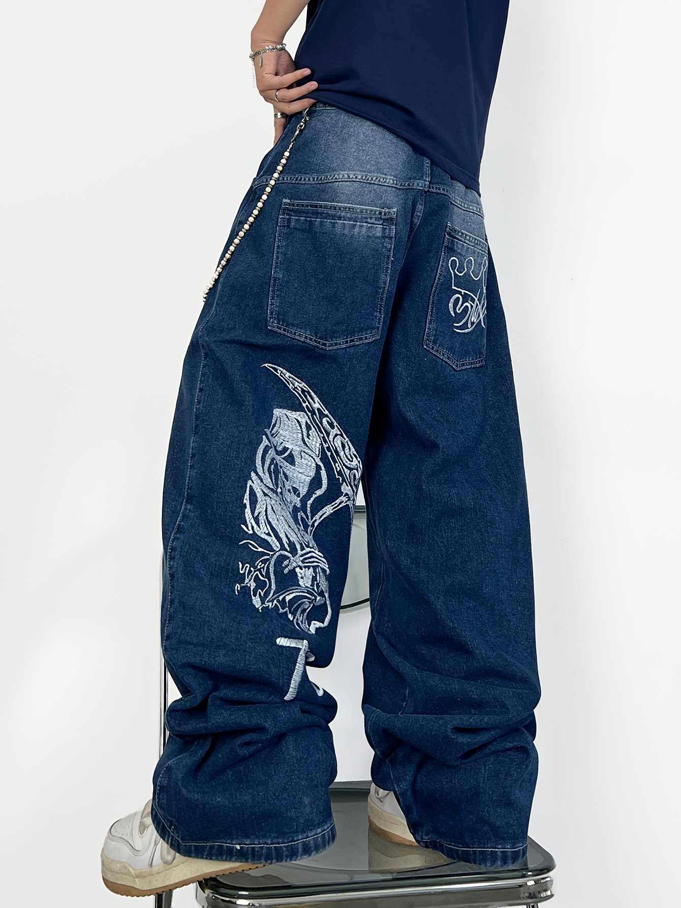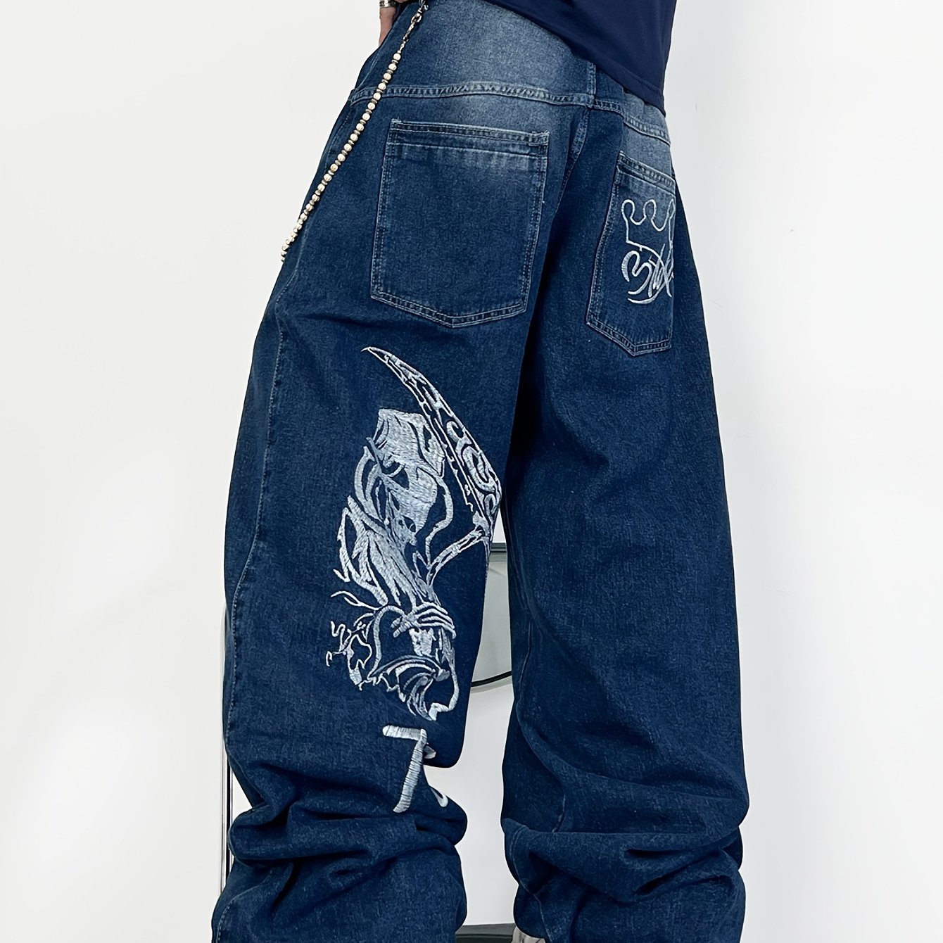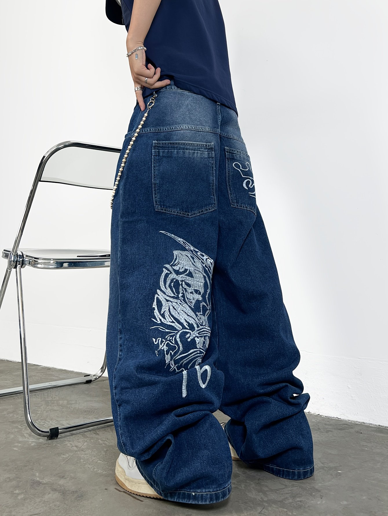 Men's Hip-Hop Loose Fit Wide-Leg Denim Pants, Beltless Skater Jeans