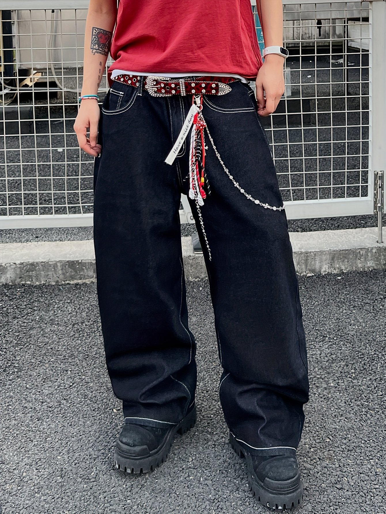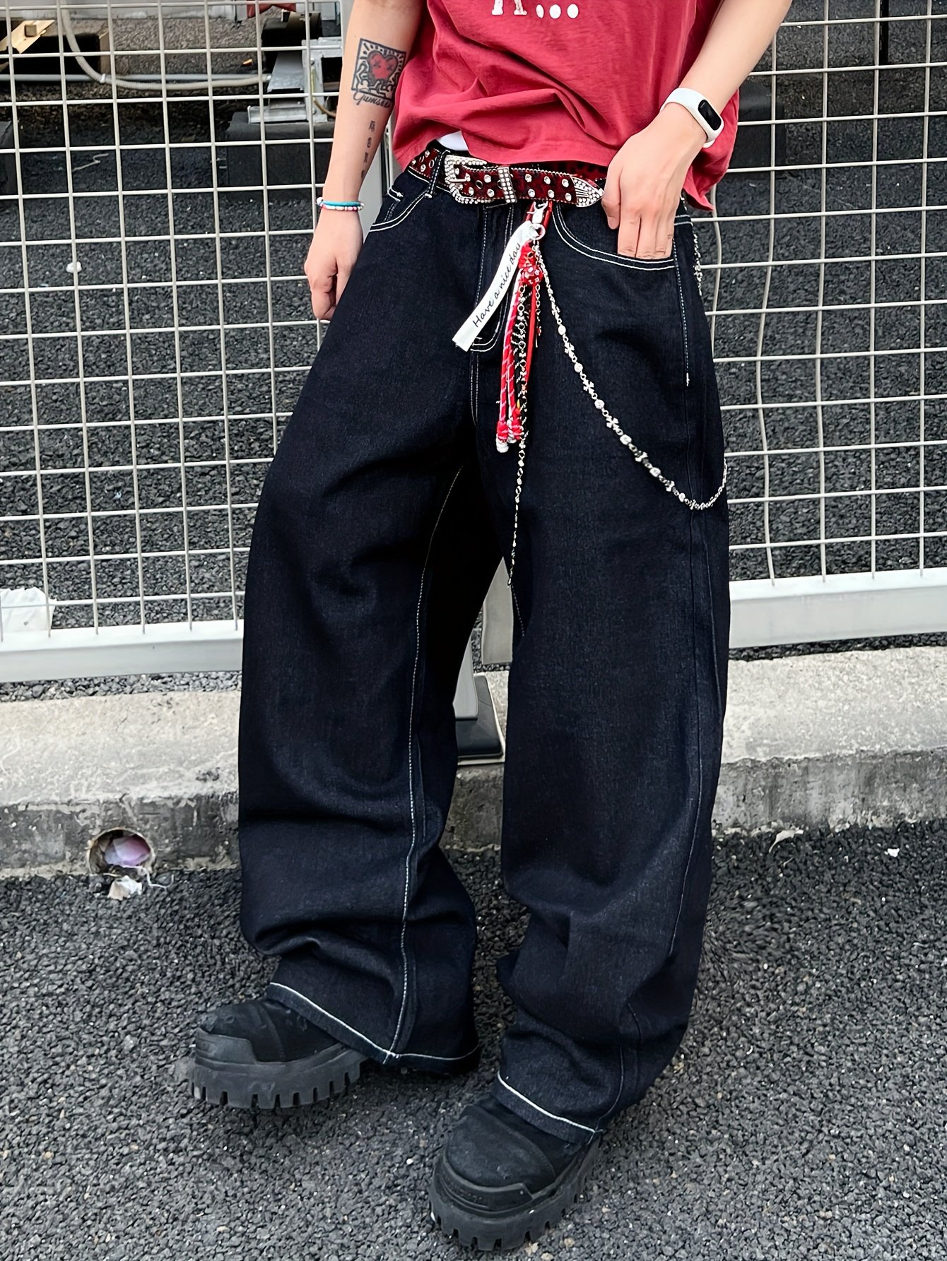 Be the first to review “A Pair of Loose-Fitting Vintage American Style Print Denim Pants, Trendy And Versatile Black Wide-Leg Trousers for Both Men And Women Belt And Accessories Not Included.” Cancel reply