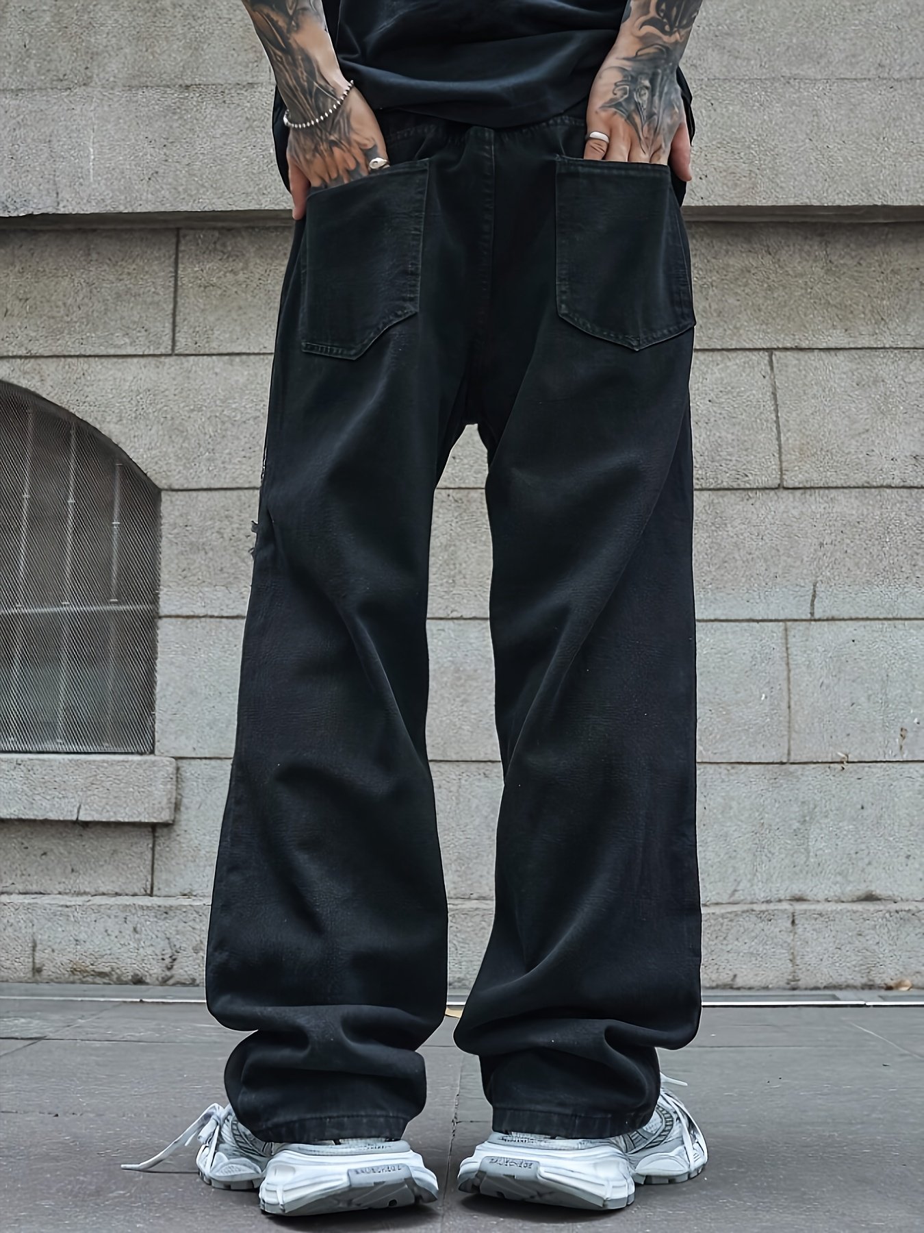 Men's Hip-Hop Loose Fit Wide-Leg Denim Pants, Beltless Skater Jeans