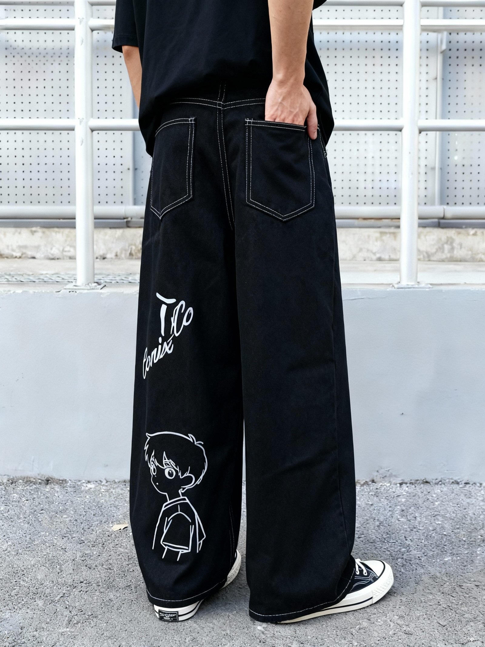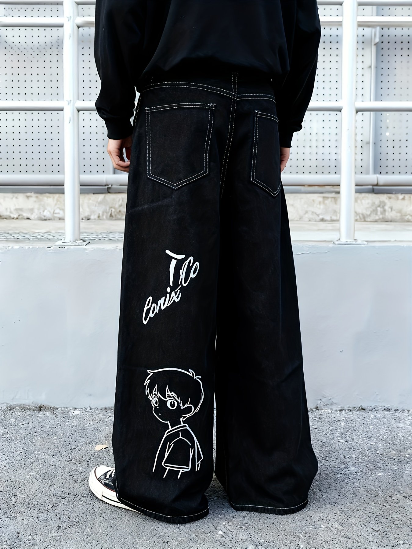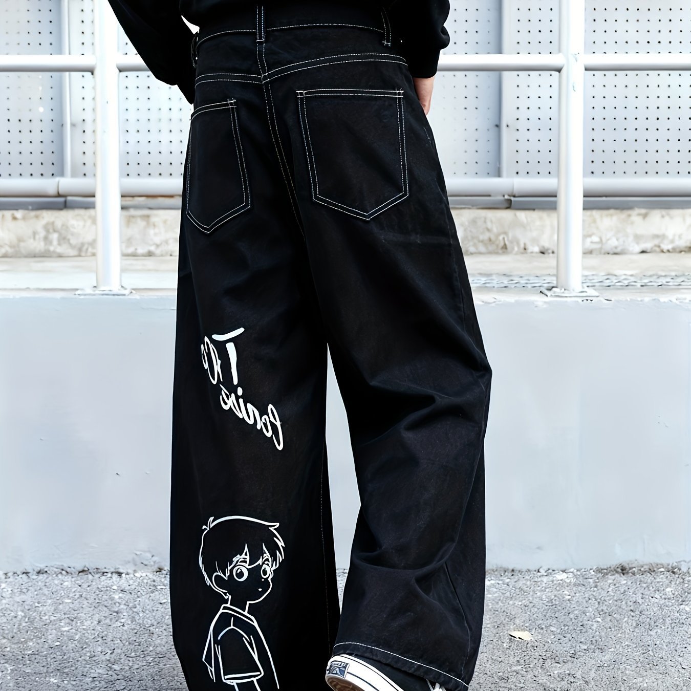 Be the first to review “Men's Black Oversized Wide-Leg Jeans with Anime Manga Print Text & Characters – Relaxed Fit Straight-Leg Trousers, Heavy-Wash for Casual Wear, & Everyday Use – -Inspired Style” Cancel reply
