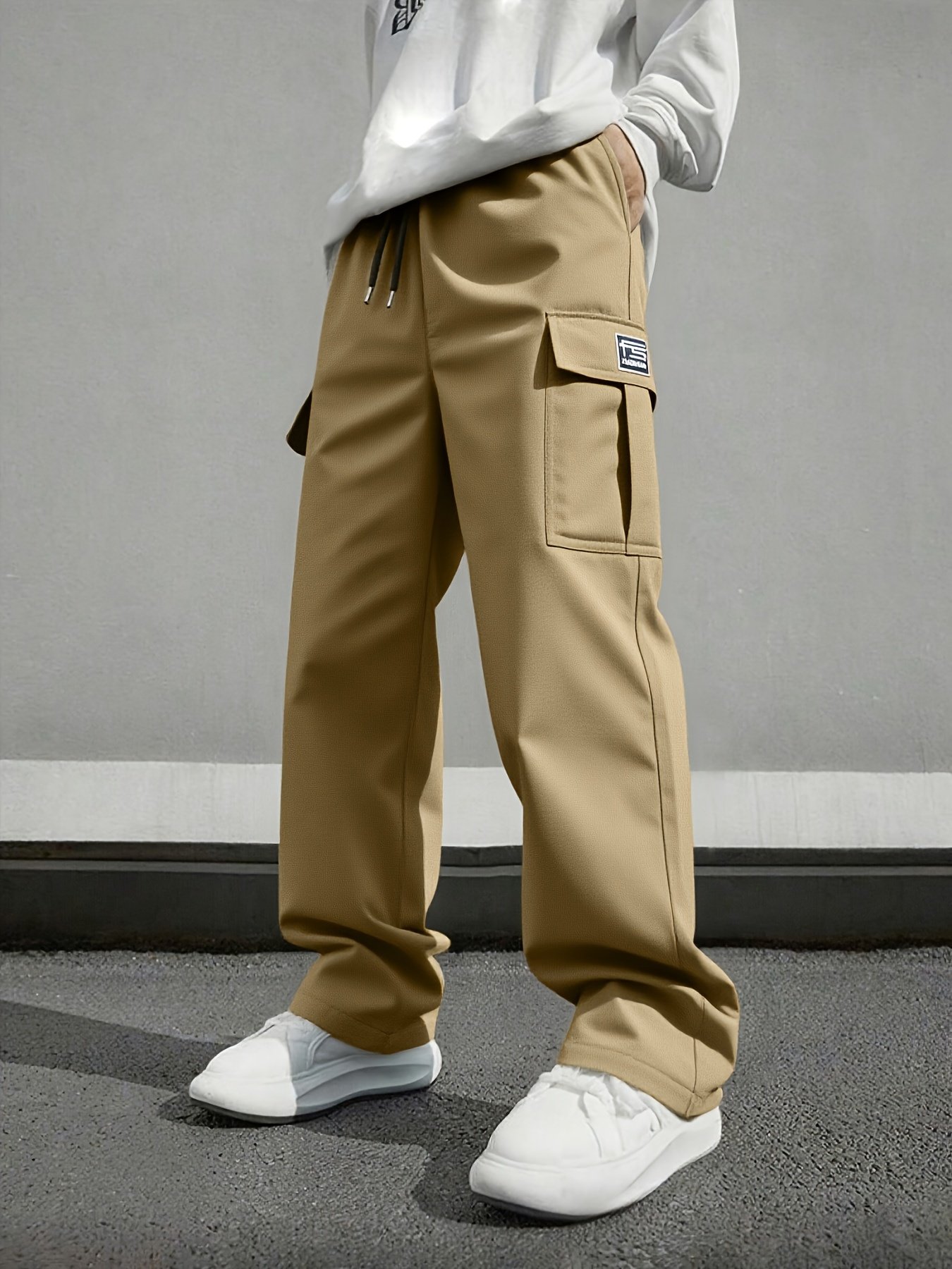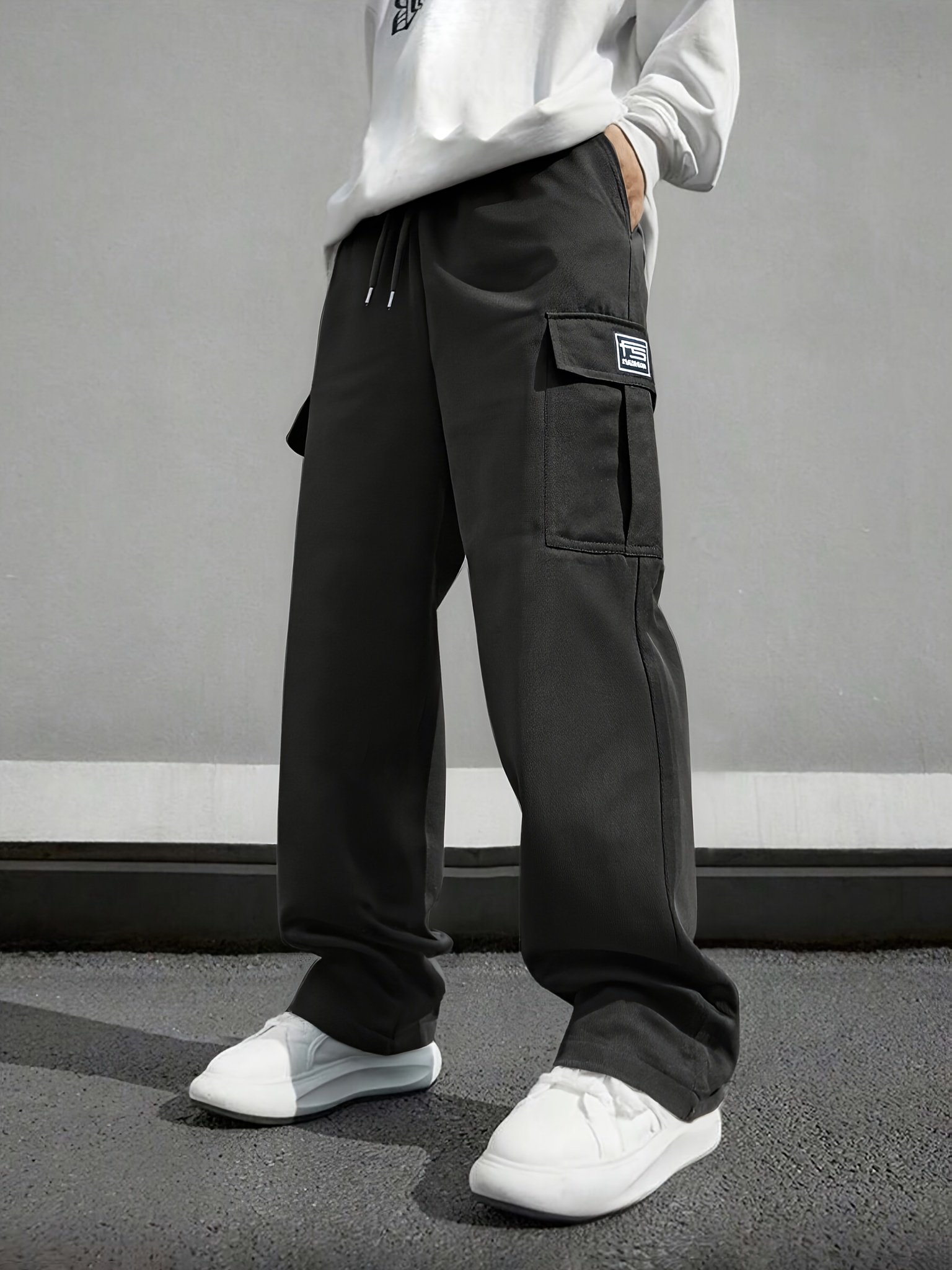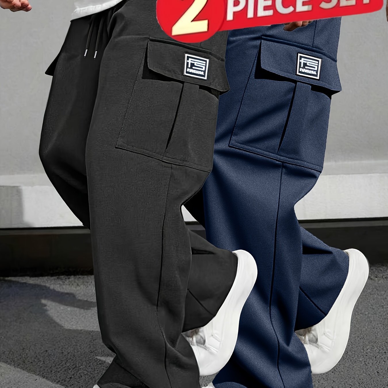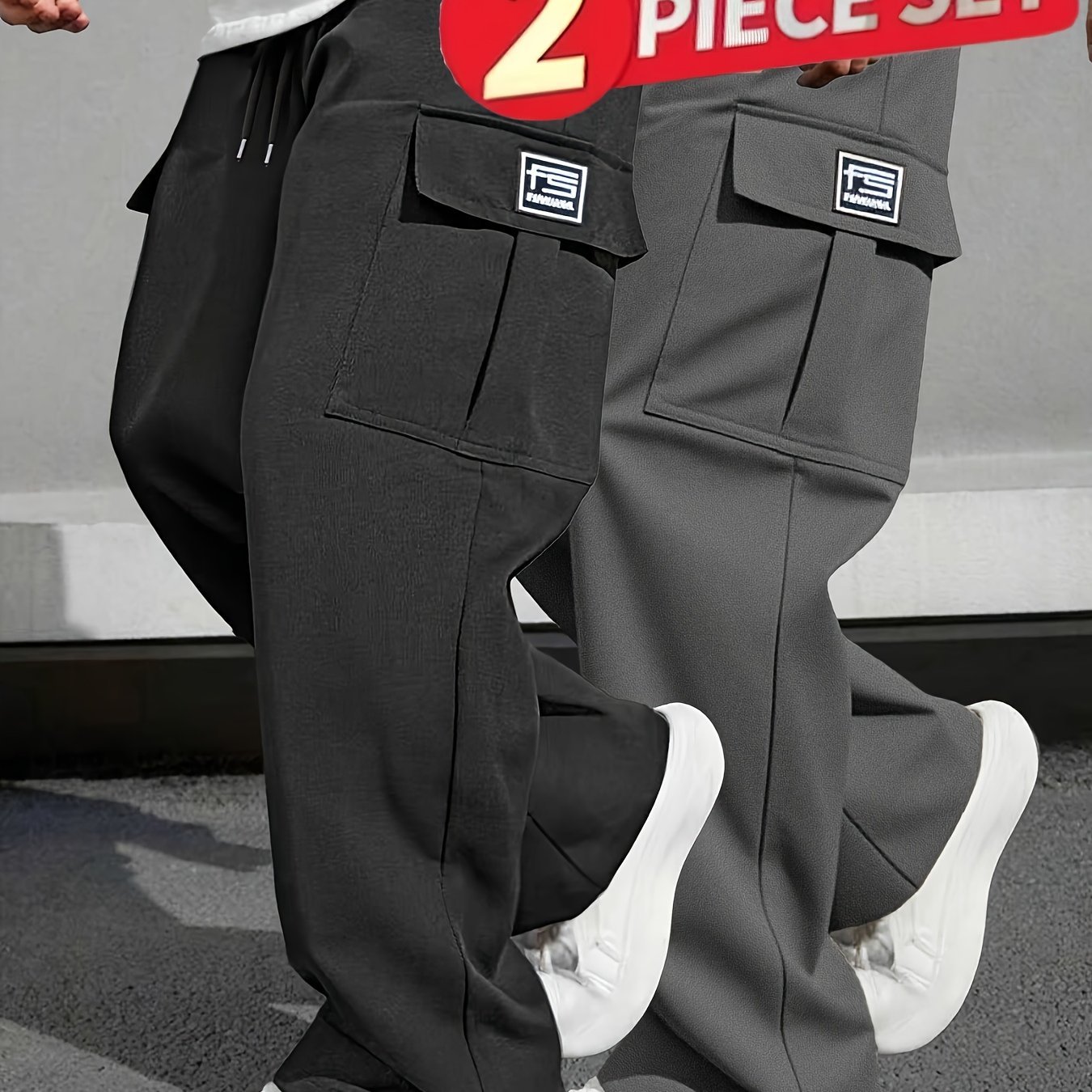 2pcs Men's Heavy-Duty Work Pants with Multi-Pocket Design – Loose-Fit Cargo Pants with Beltless Waist & Zippered Pockets, Straight-Leg Trousers for Construction, Gym, Casual Attire – Spring Season Hand Washable, Non-Stretch Fabric, Mid-Rise, Casual & Ath