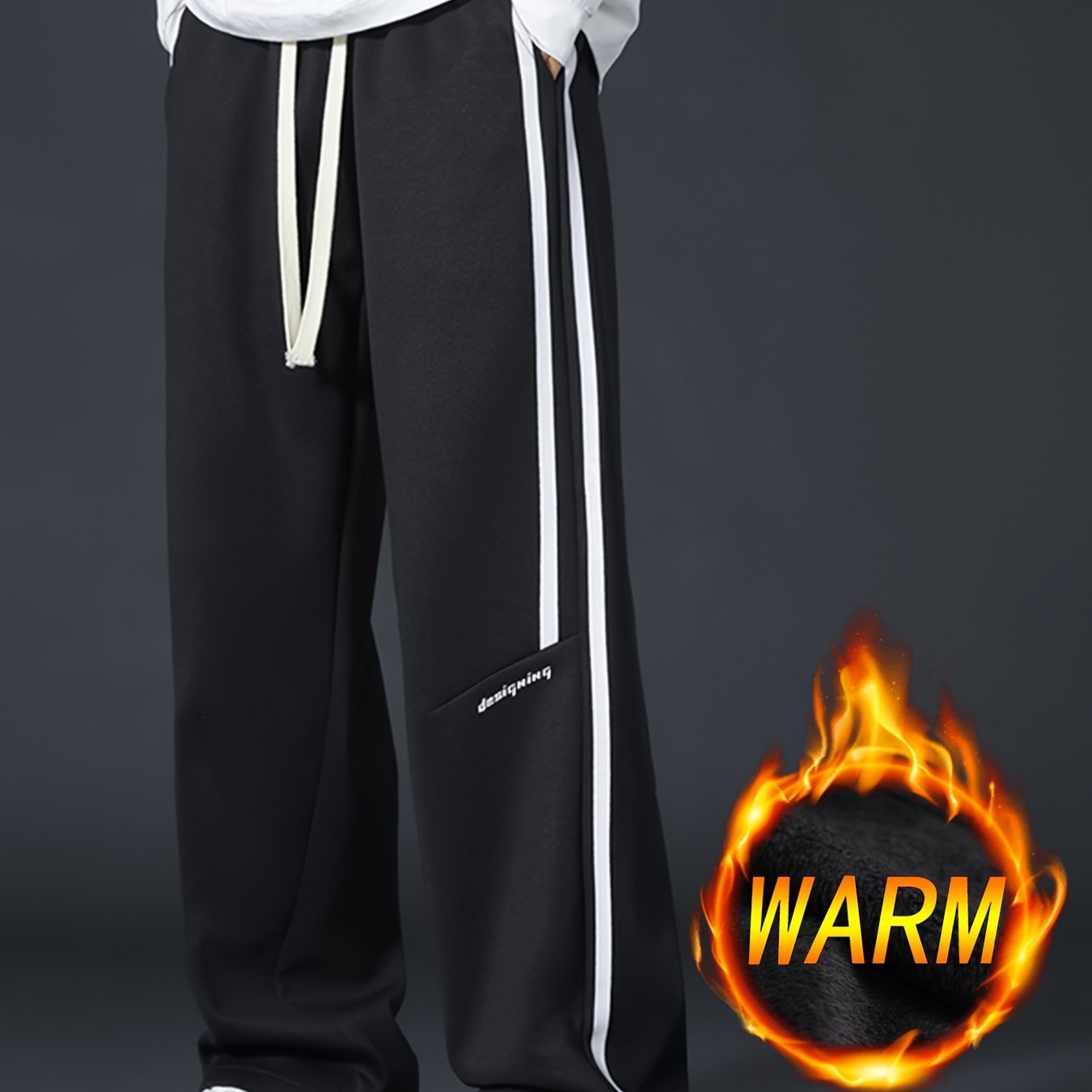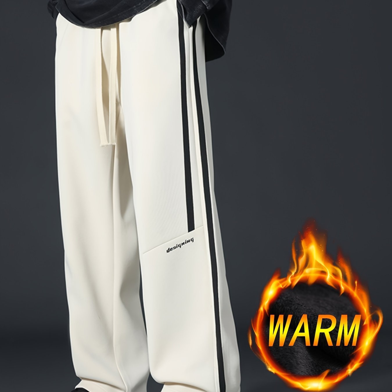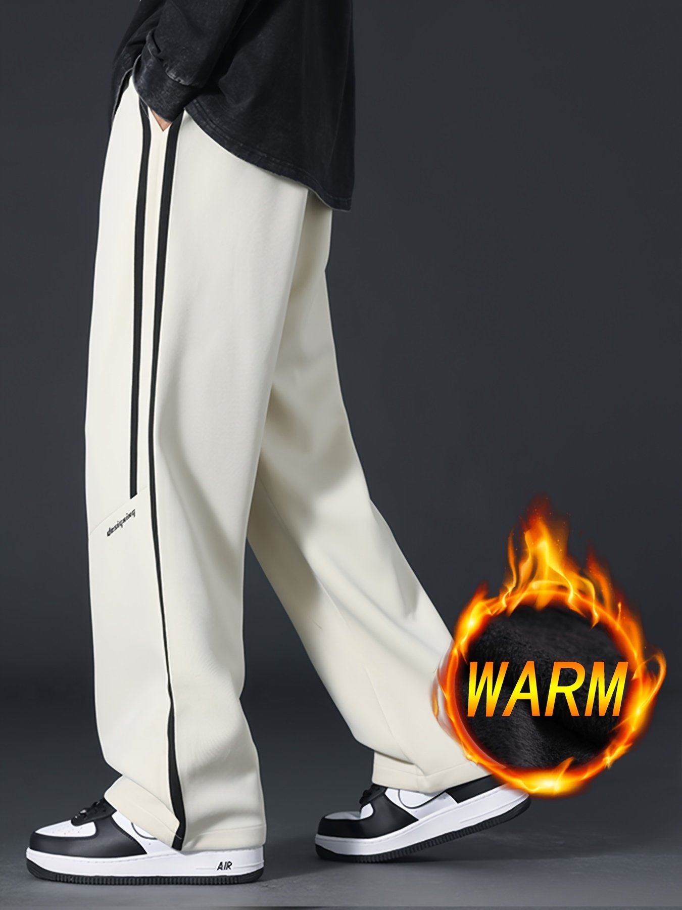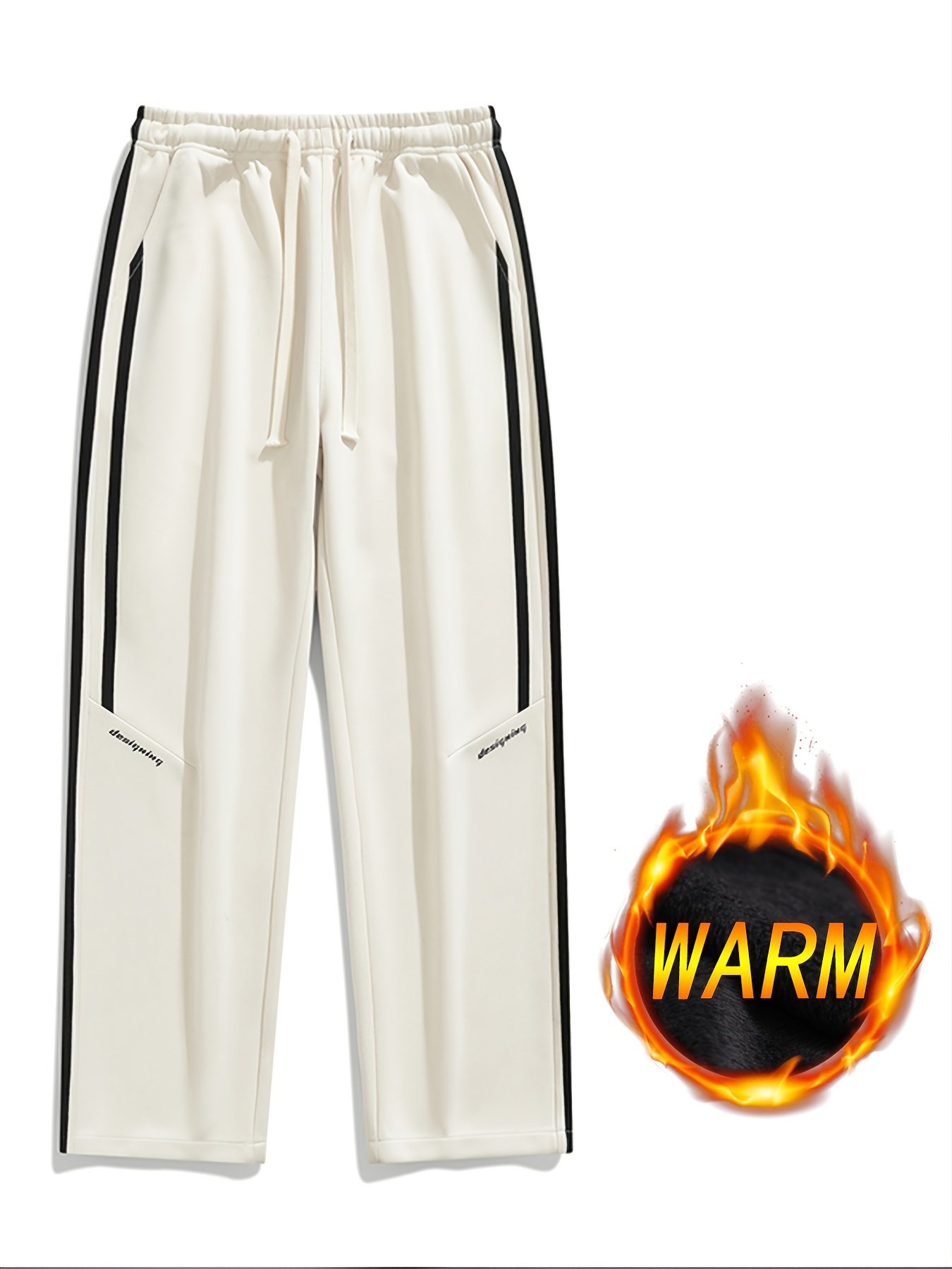 Heavy-Duty Winter Thermal Joggers – -Like Pants with White Piping & Black Straight-Leg Fit, White Sneaker-Compatible Casual Trousers for Cold Weather Machine Washable – Athletic to Casual Attire