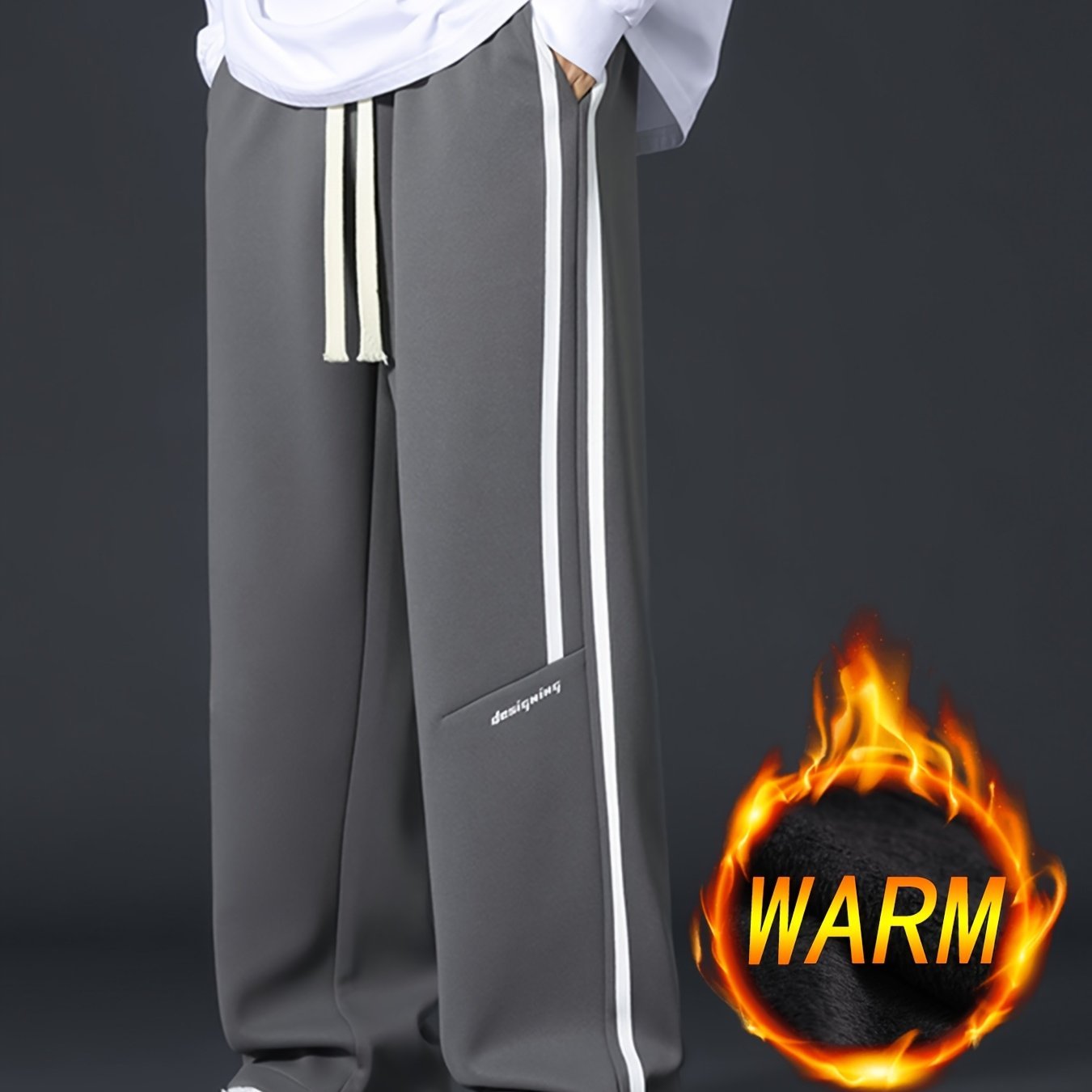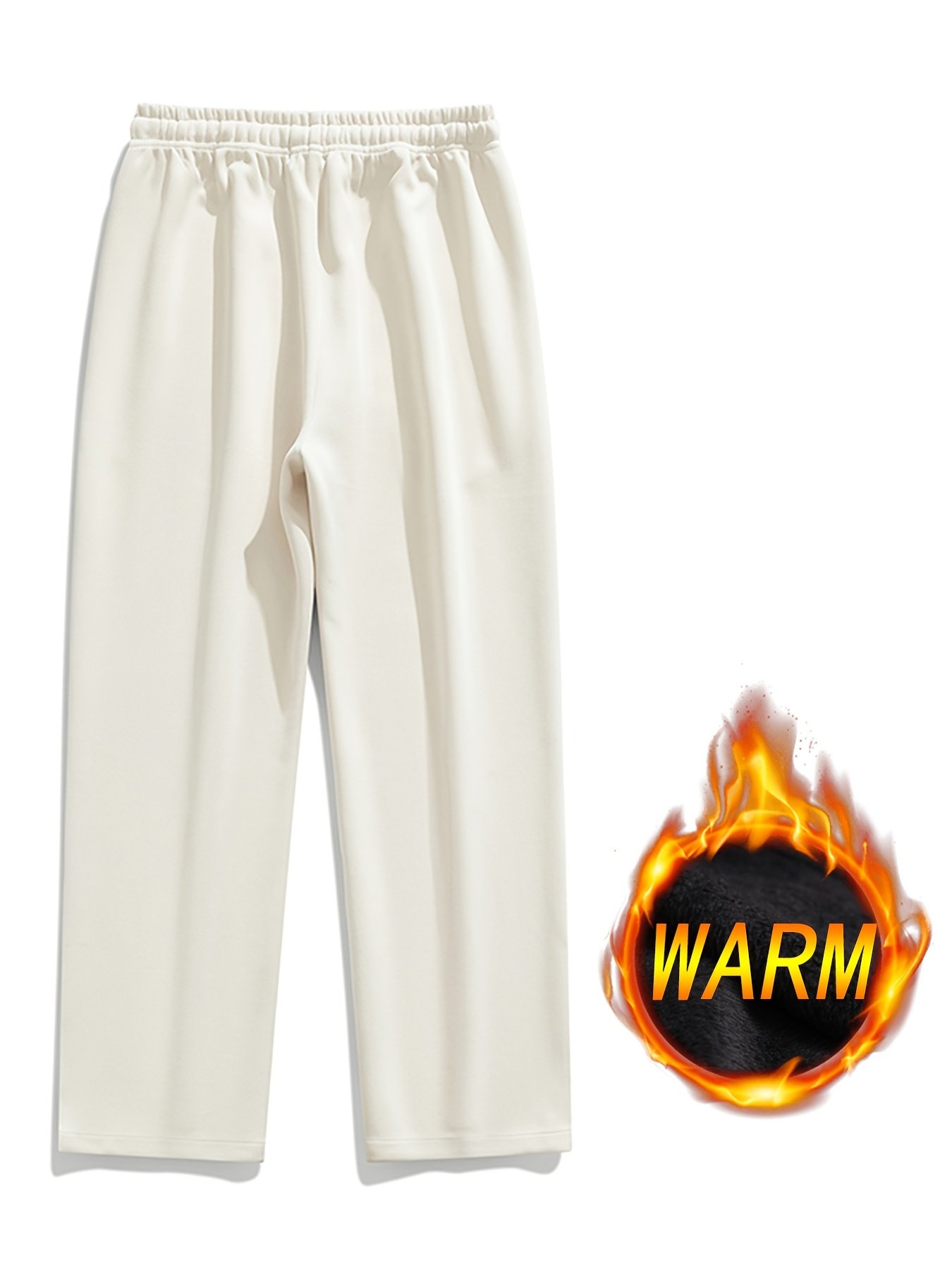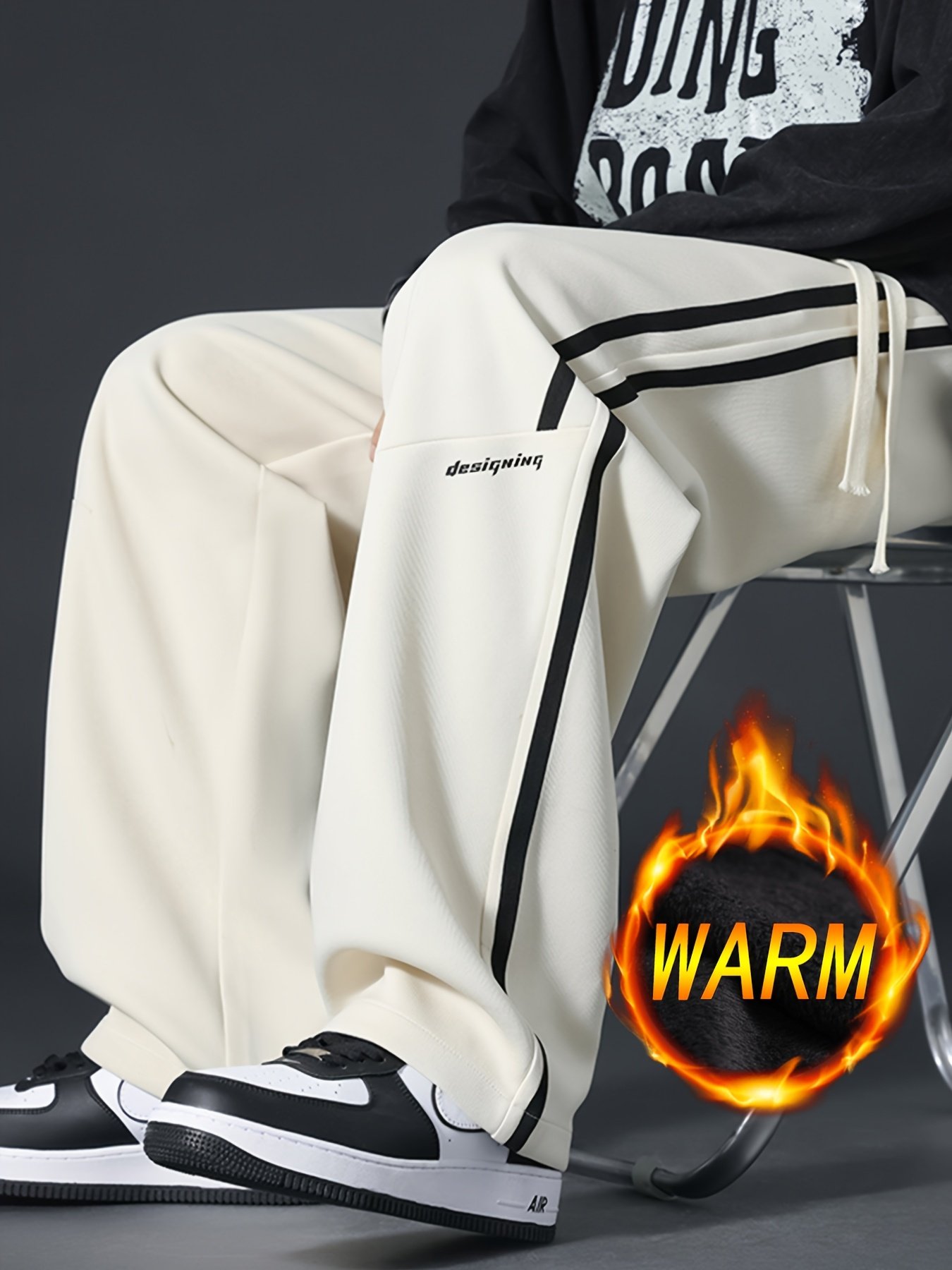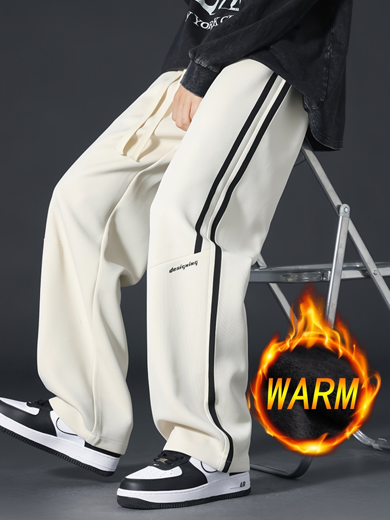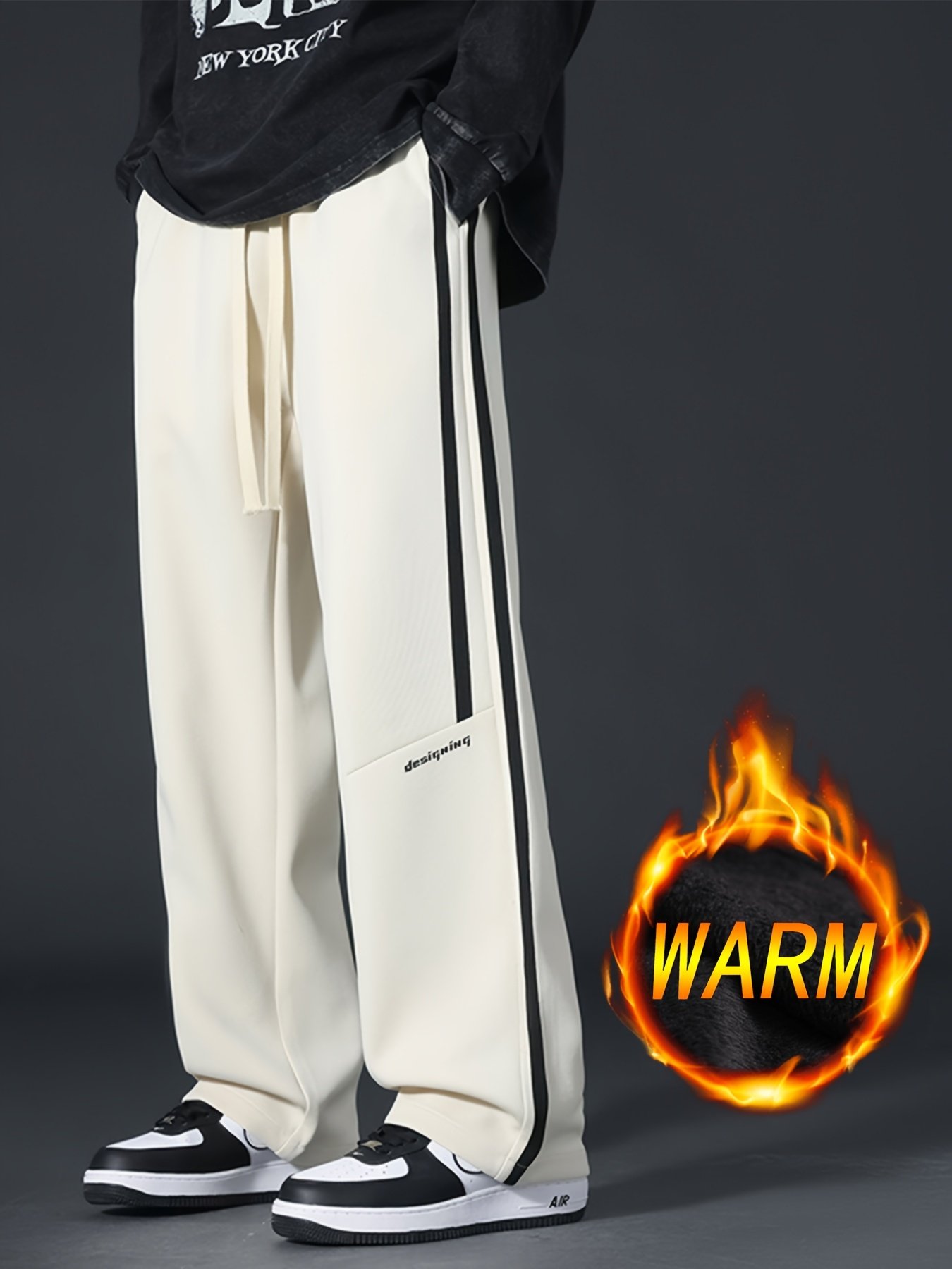 Heavy-Duty Winter Thermal Joggers – -Like Pants with White Piping & Black Straight-Leg Fit, White Sneaker-Compatible Casual Trousers for Cold Weather Machine Washable – Athletic to Casual Attire