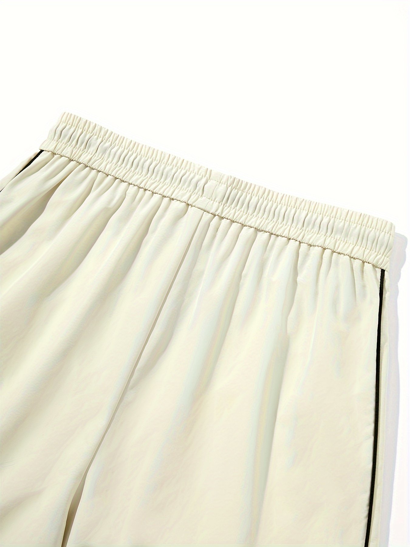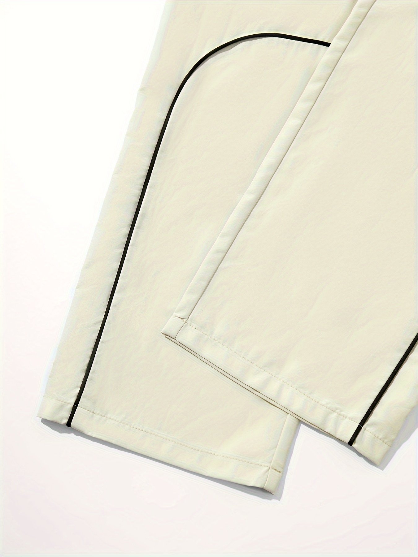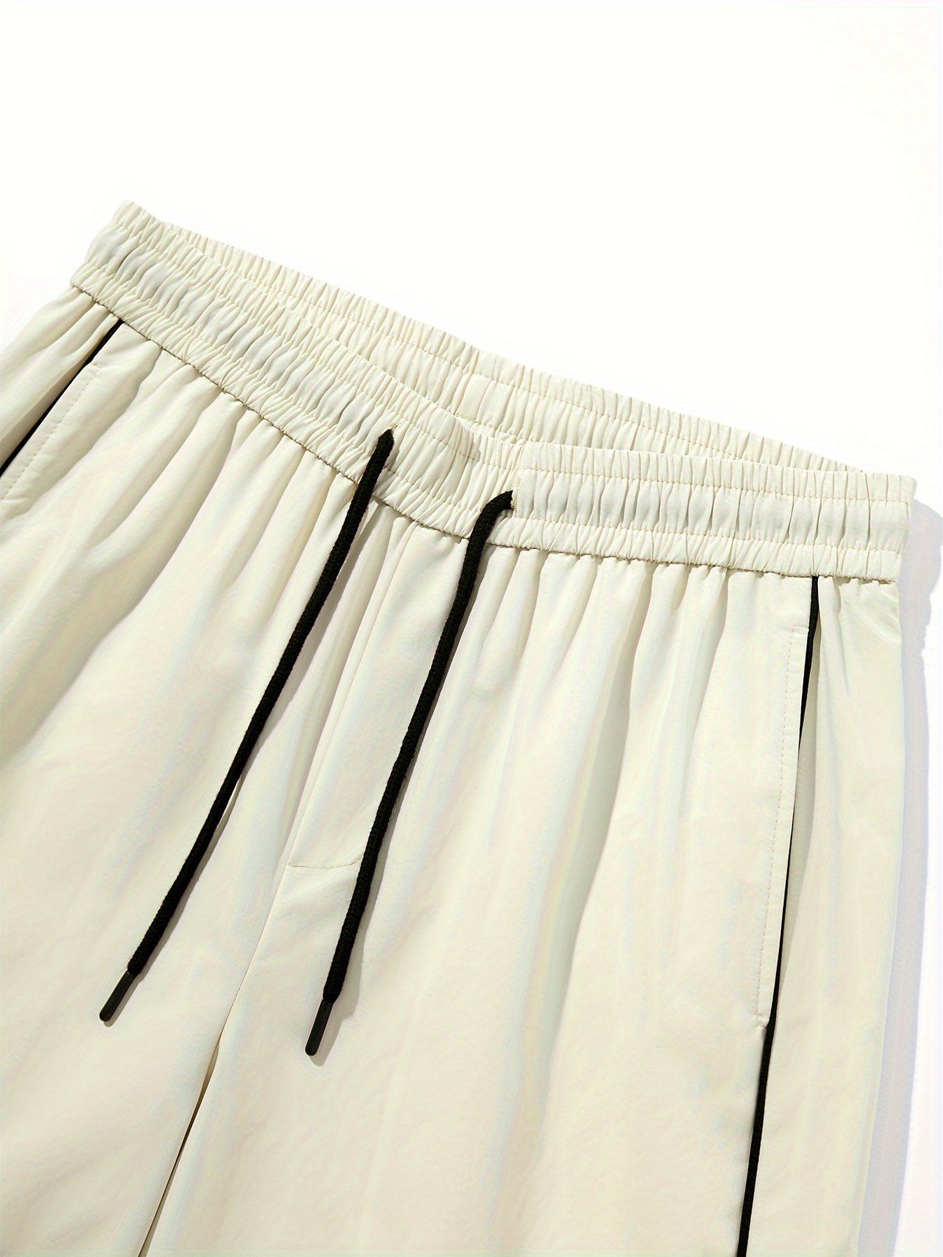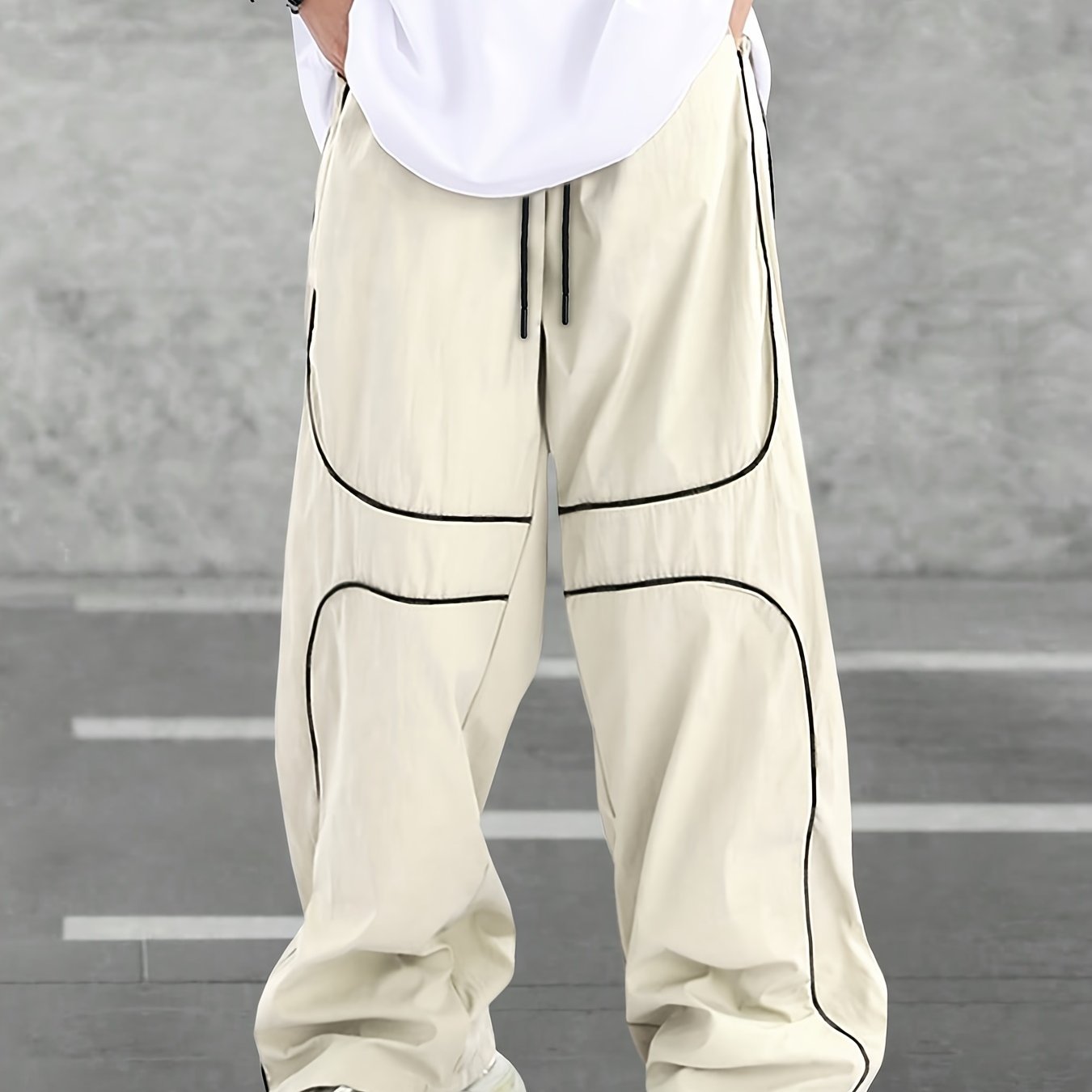Men'S Casual Straight-Leg Pants with Elastic Waistband & Drawstring – Beige Jacquard Fabric, Relaxed Fit for Spring/Fall Outdoor Leisure, Perfect for Casual Attire, Leisure Leisurewear, Smooth Texture Fabric