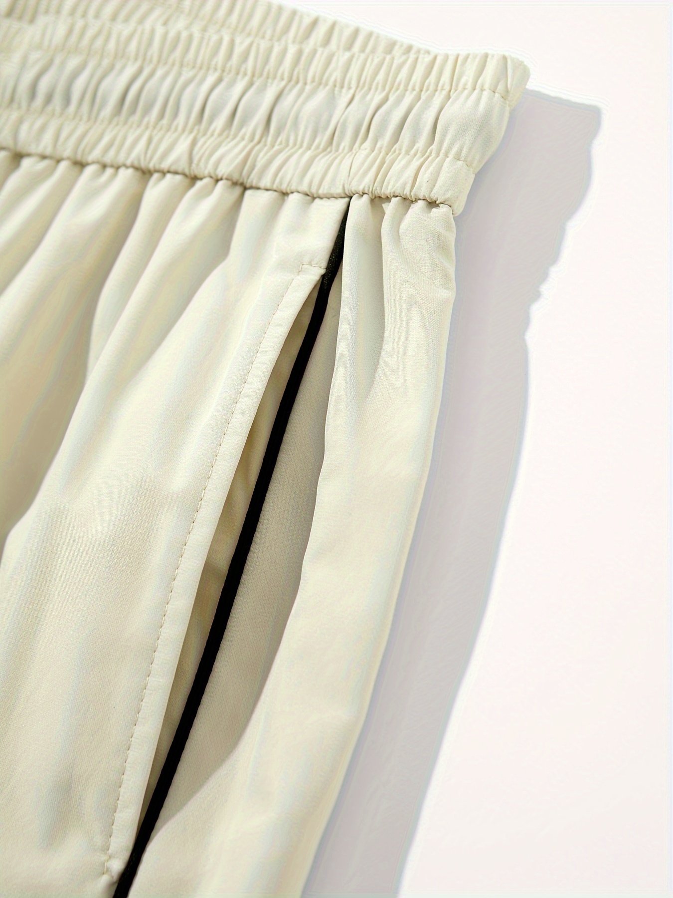 Men's Casual Straight-Leg Pants with Drawstring Waist, Side Zipper Pockets & Stylish Label Design – White, Perfect for Spring, Fall Outdoor Activities & Casual Attire, Spring Fall Attire | Stylish Cargo Pants | Durable Casualwear