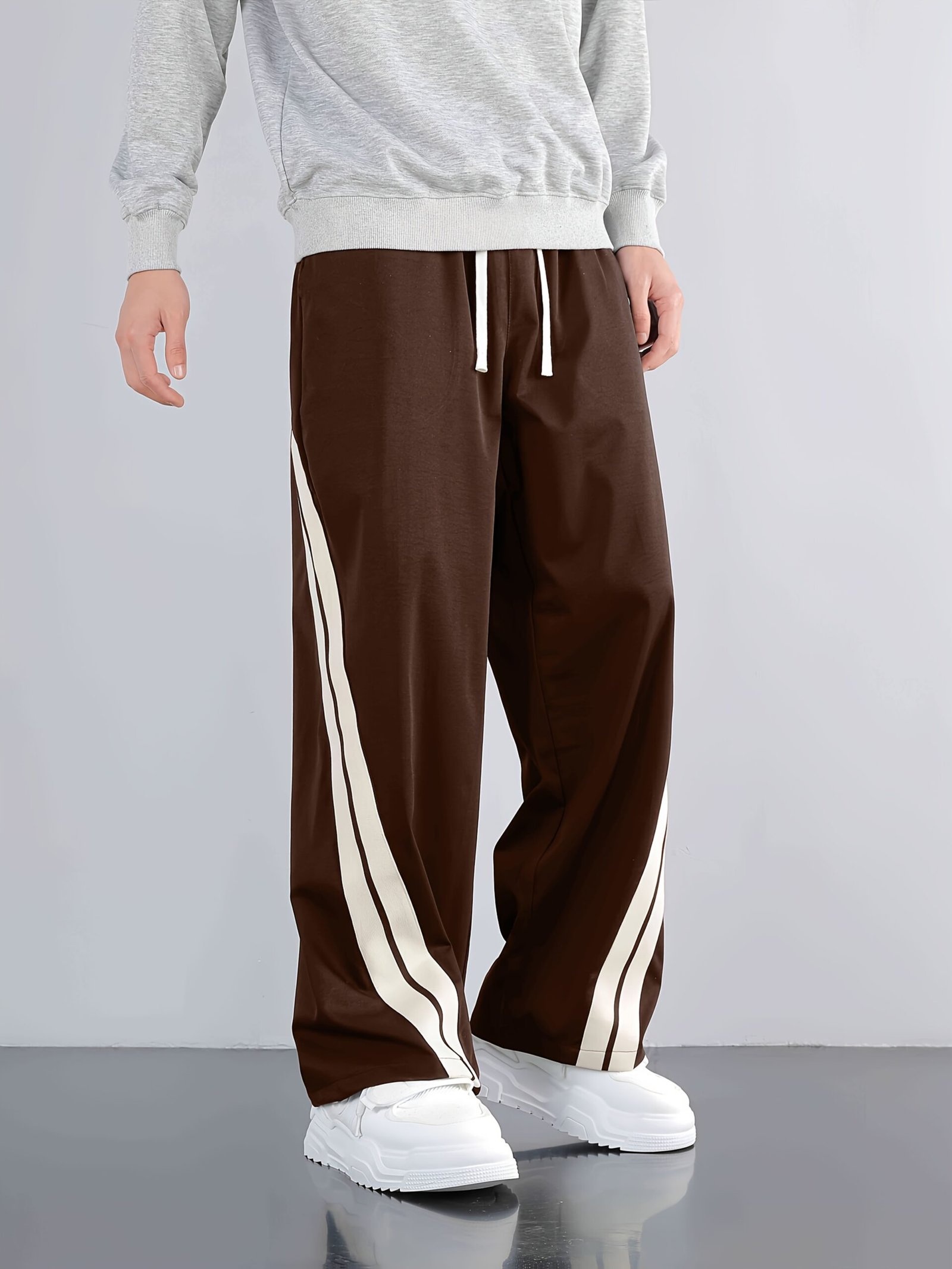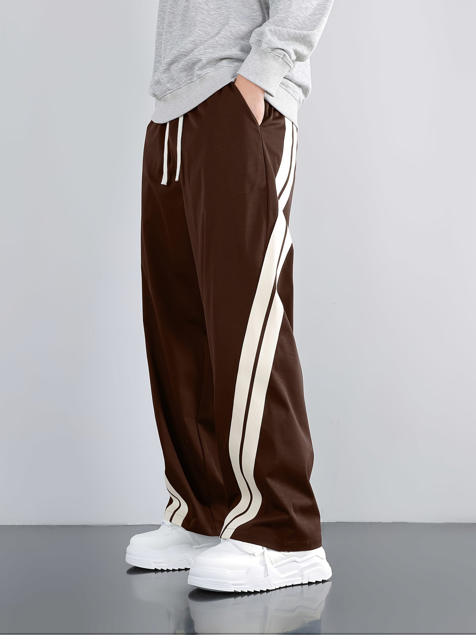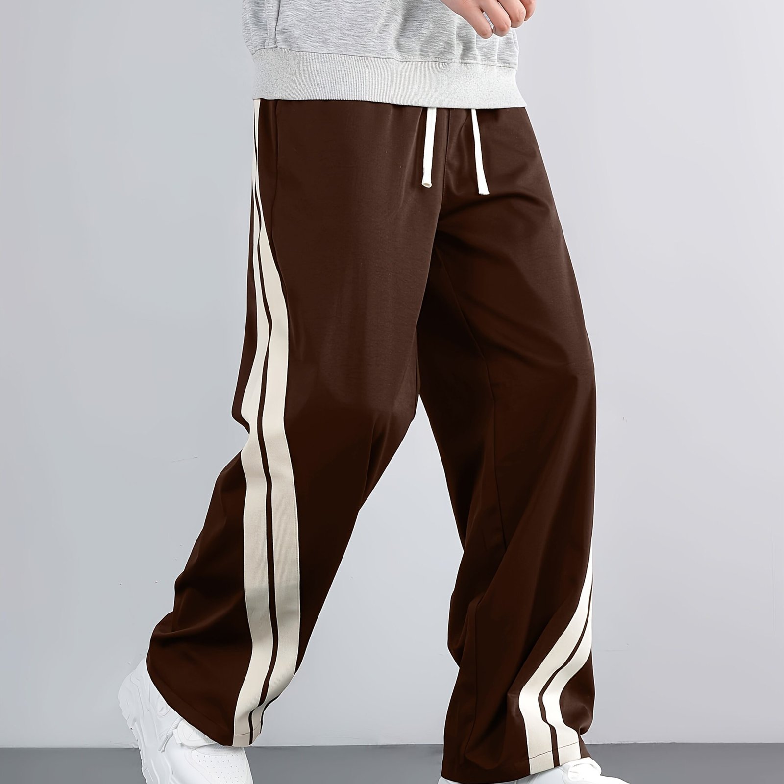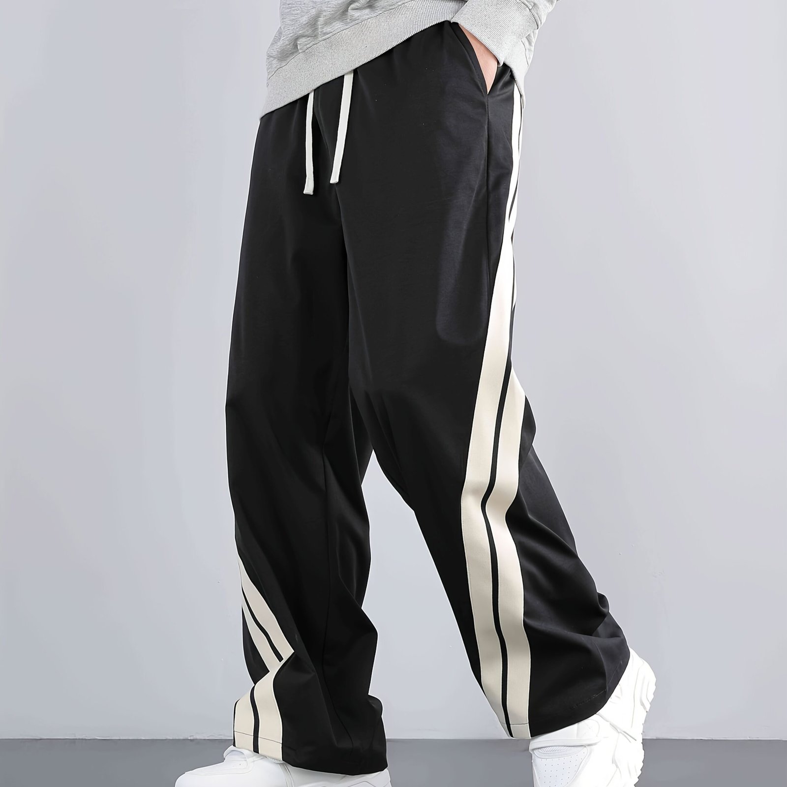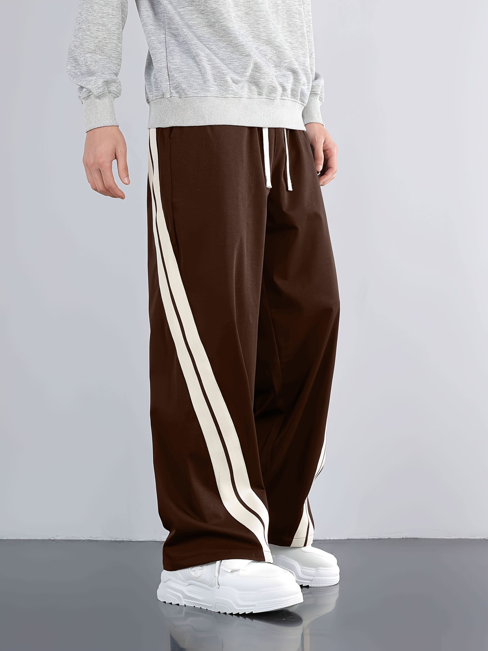 Men'S Casual Wide-Leg Pants with Side Stripe Pleats, Elastic Drawstring Waist, and Elastic Waistband – Perfect for Spring and Autumn Outdoor Leisure