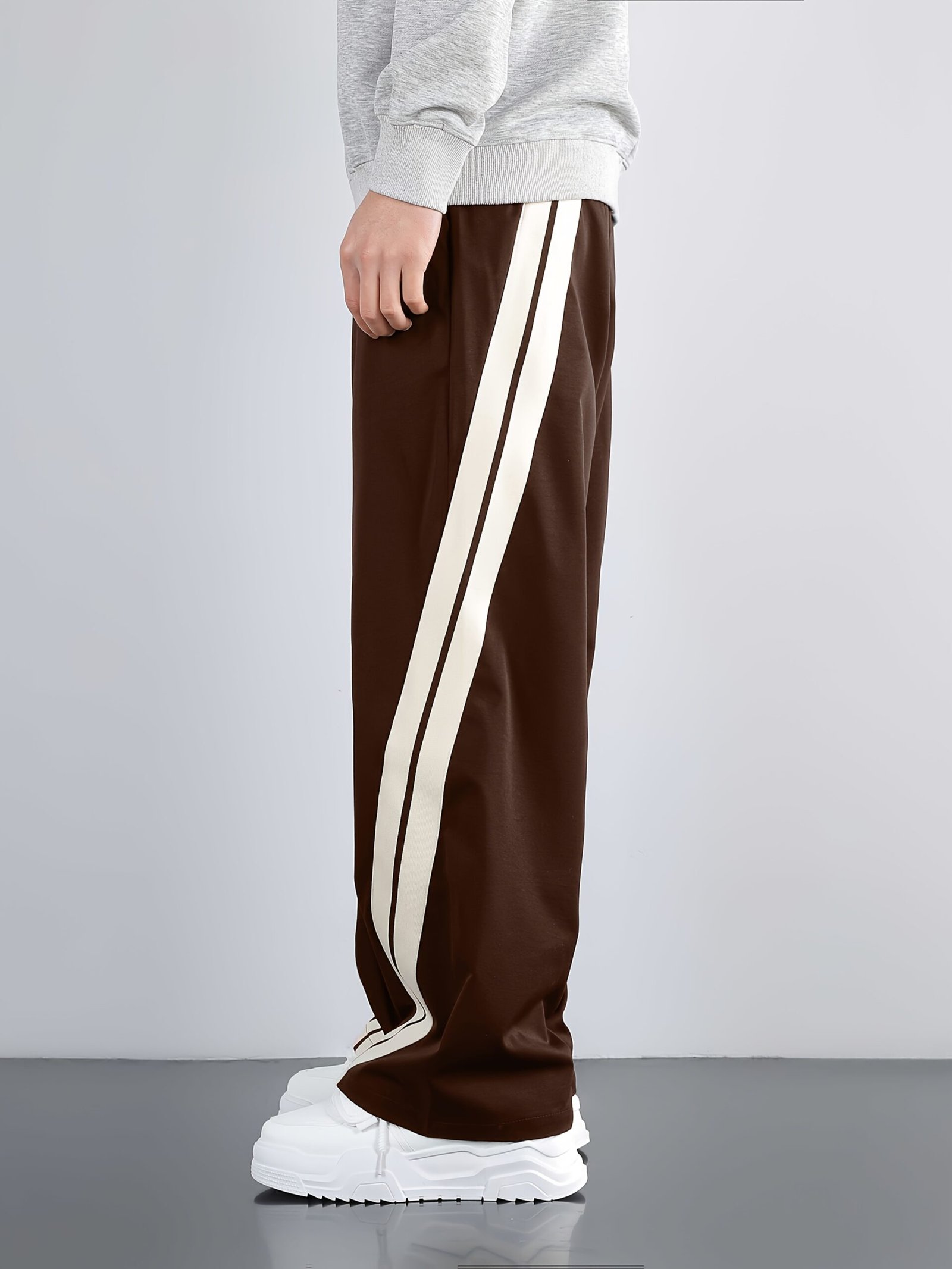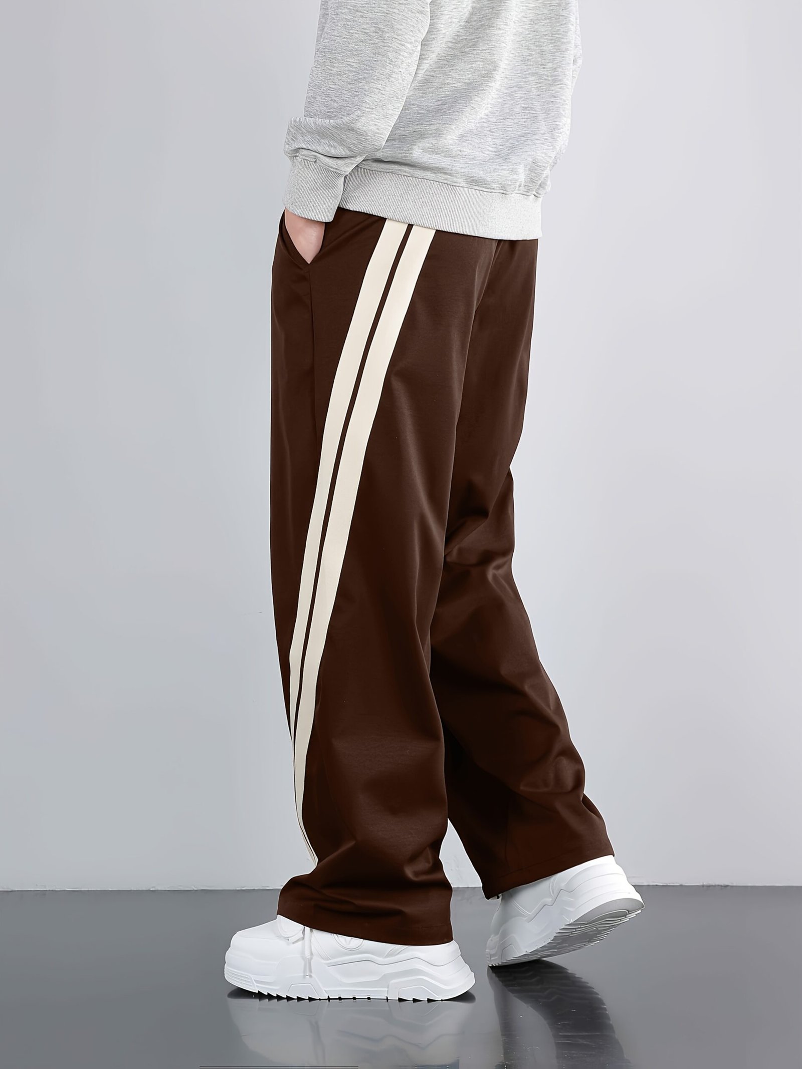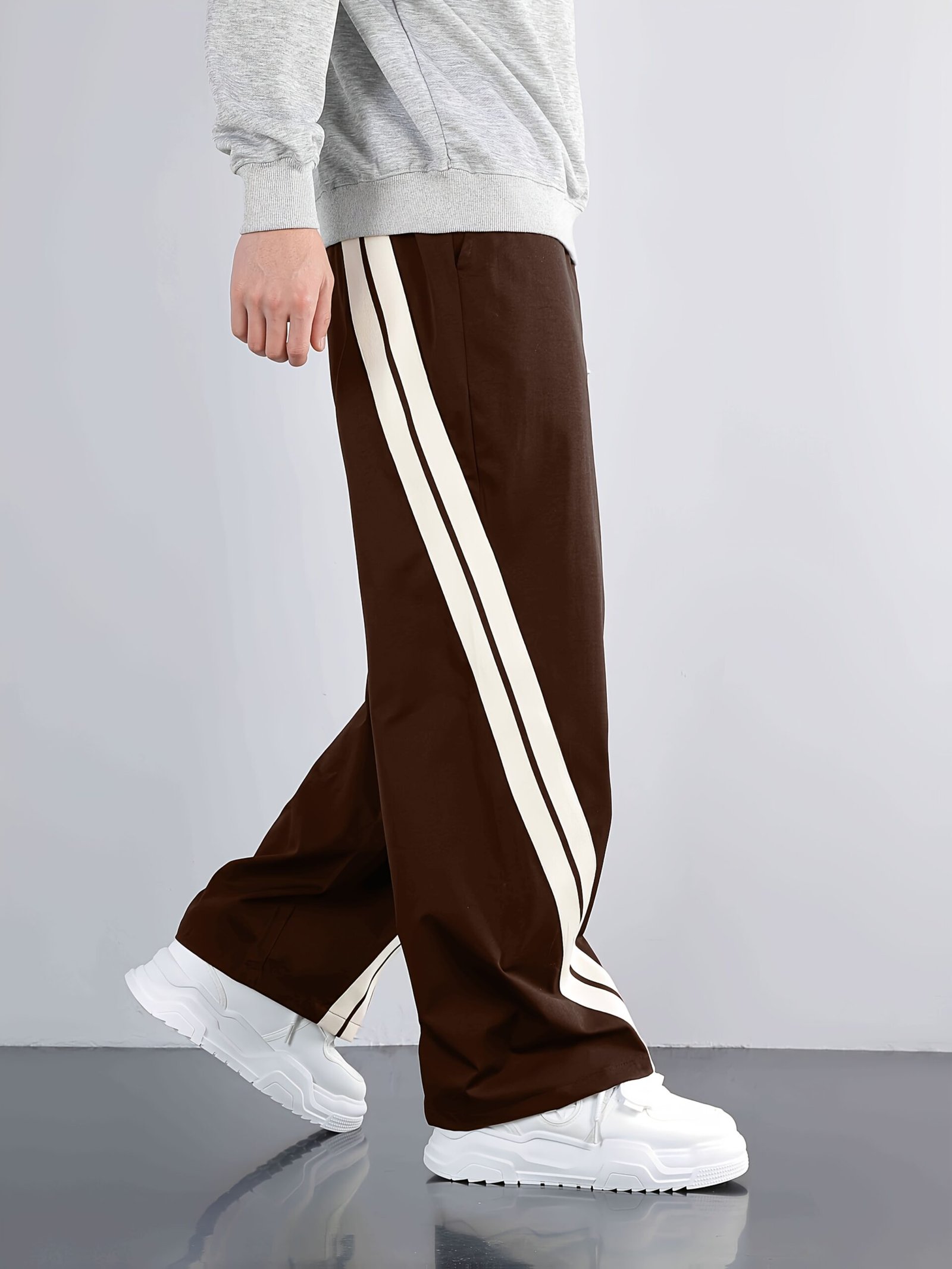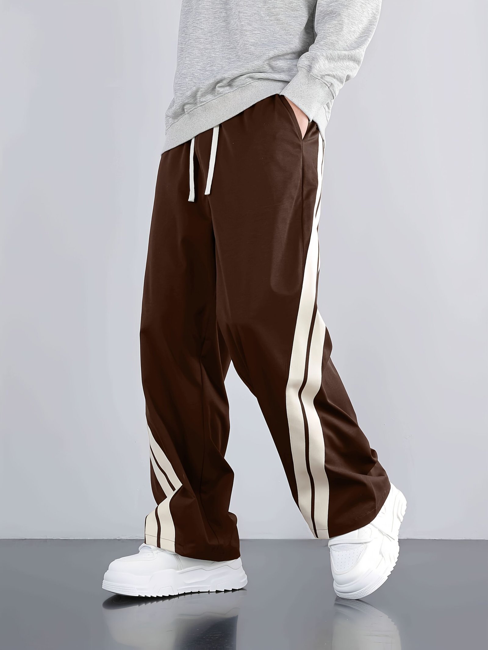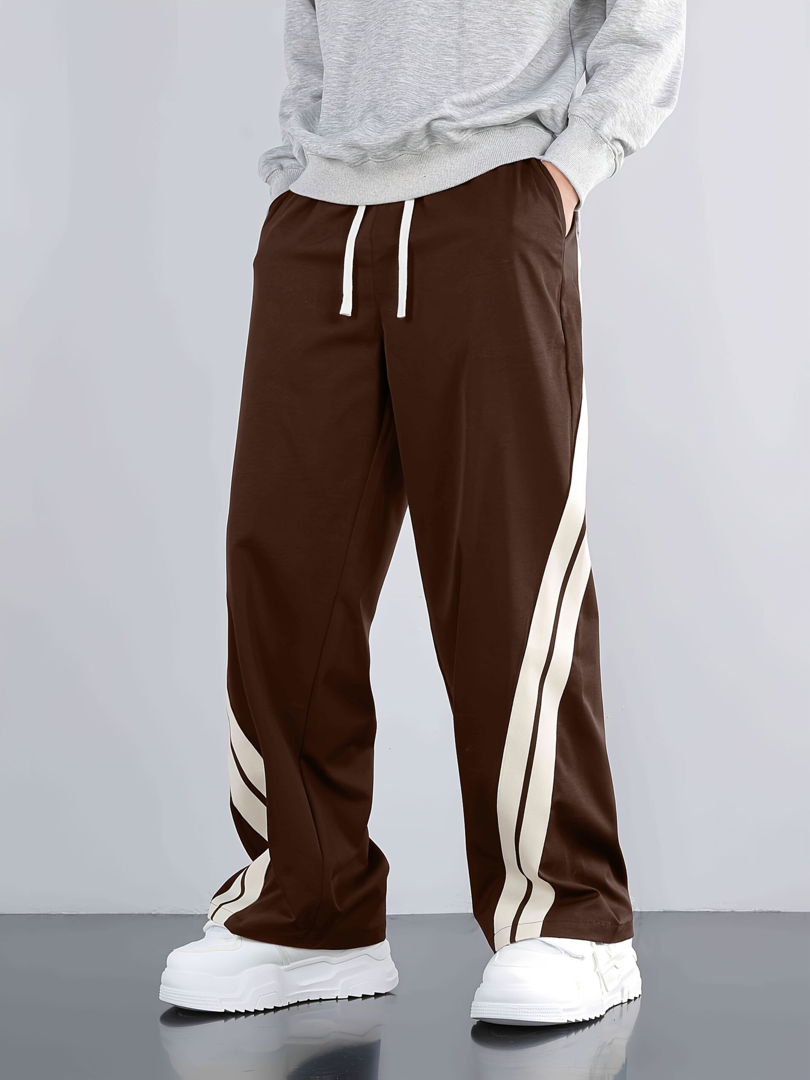 Men'S Casual Wide-Leg Pants with Side Stripe Pleats, Elastic Drawstring Waist, and Elastic Waistband – Perfect for Spring and Autumn Outdoor Leisure