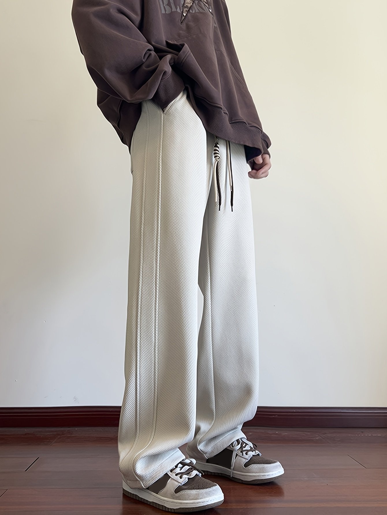 Men'S Casual Wide-Leg Pants with Side Stripe Pleats, Elastic Drawstring Waist, and Elastic Waistband – Perfect for Spring and Autumn Outdoor Leisure