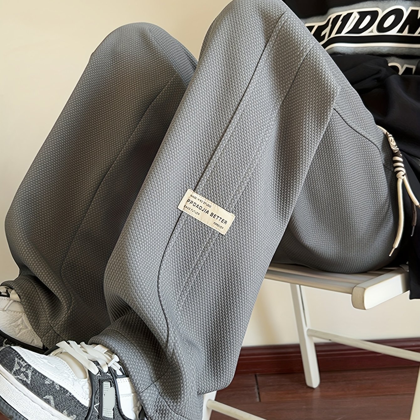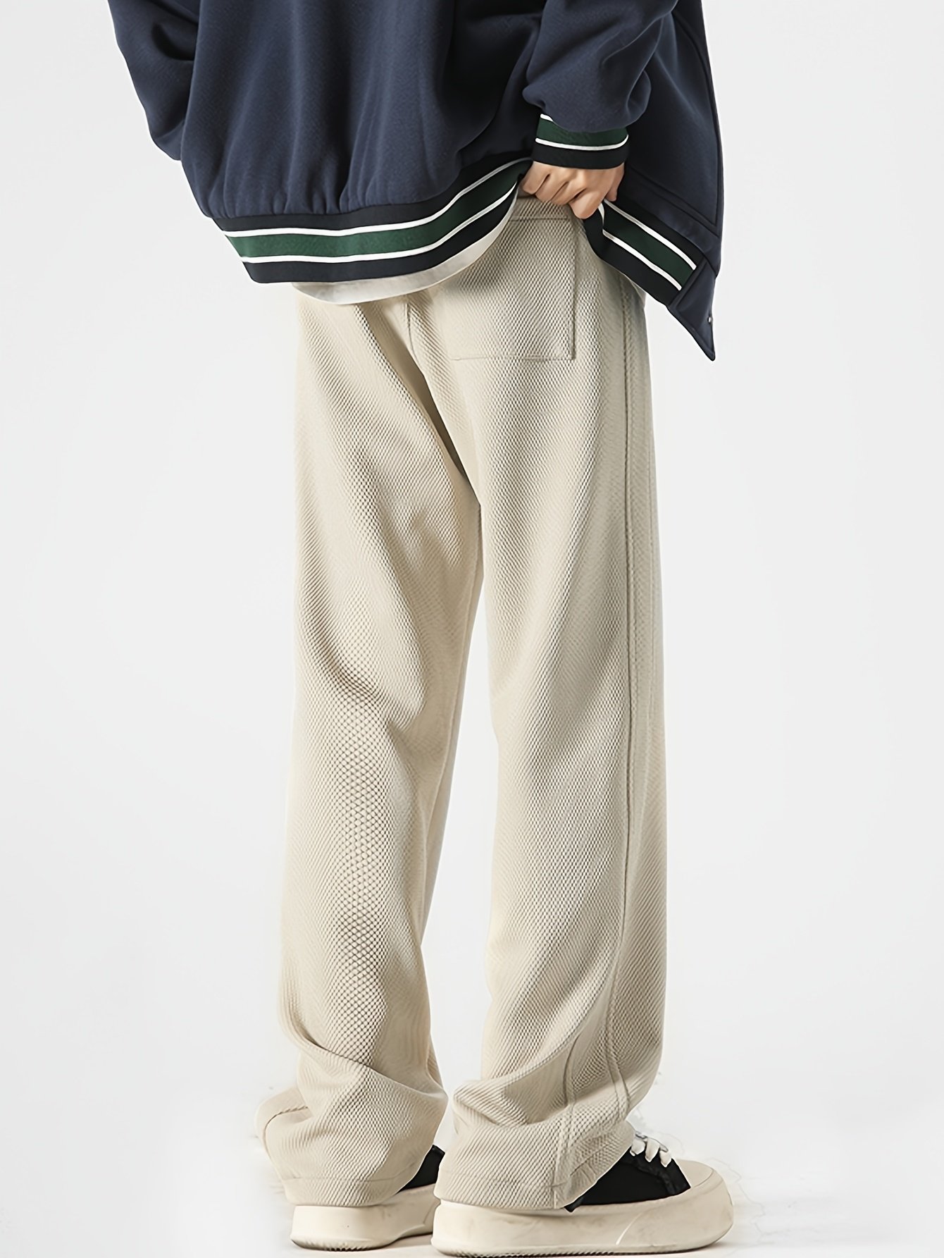 Men's Casual Knit Pants – Elastic Waist Trousers in Black/Beige/Gray/White, All-Season Loose Fit Formal Everyday Pants for Men, Easy-Care Hand Washable Knit Trousers, Relaxed Outfit, Patchwork Design, Quality Stitching, Stylish Bottoms, Urban Wear