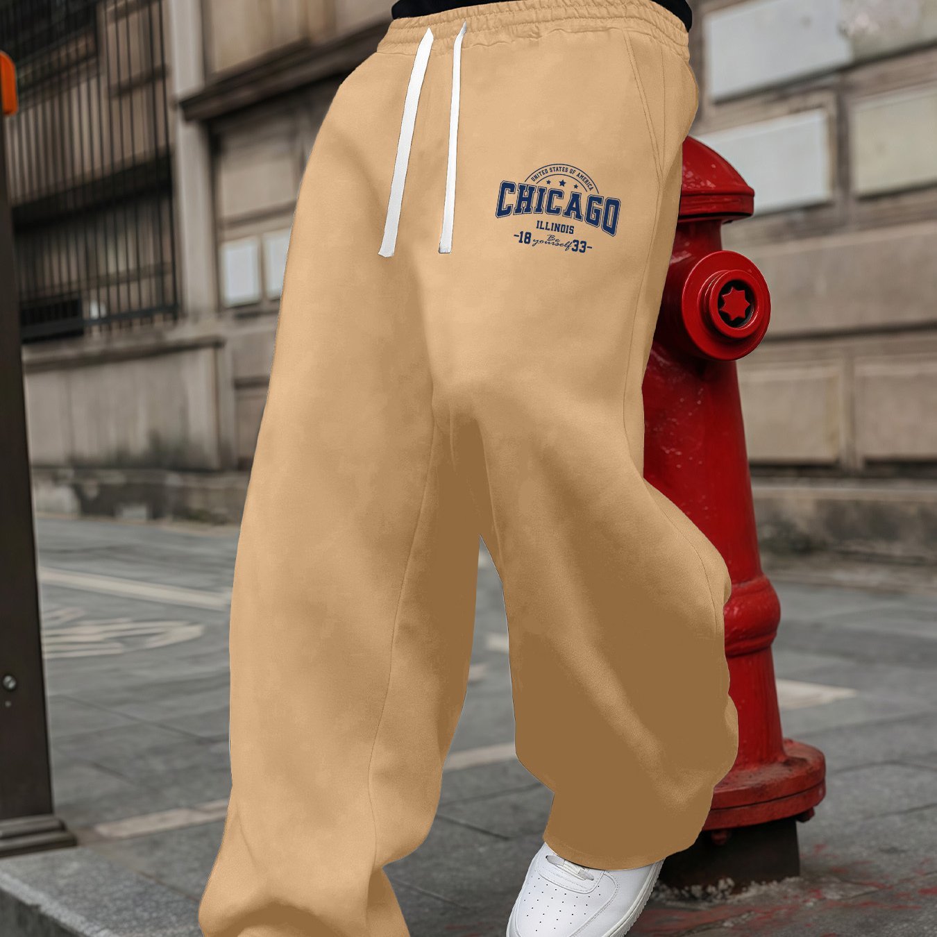 Men's Loose-Fit Jogger Pants – Soft Knit Casual Sweatpants with Elastic Drawstring Waist, Beige 5 Colors Available – All-Season Gym, Lounge, Everyday Pants for Urban Streetwear – Machine Washable