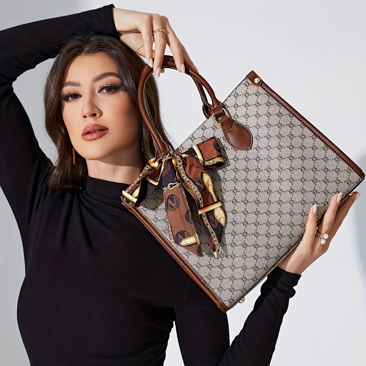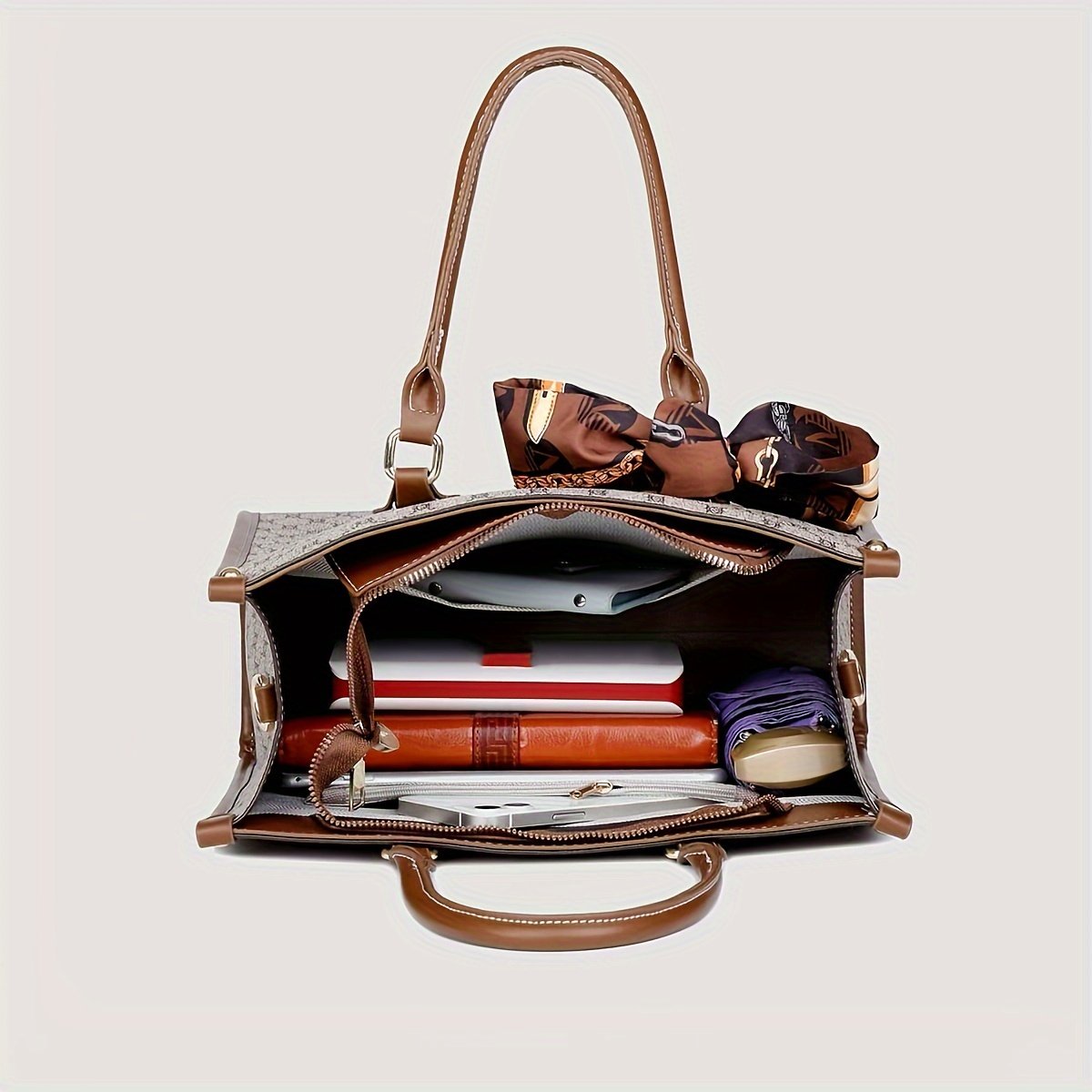 Be the first to review “LABOONOO Wo 's Large Capacity Geometric Print Handbag – Gray with Zipper Closure, Decorative Bow & Chain Strap, Polyester Lining for Work, Travel, Shopping, Work Handbag, Elegant Accessory, Goldtoned Edges” Cancel reply