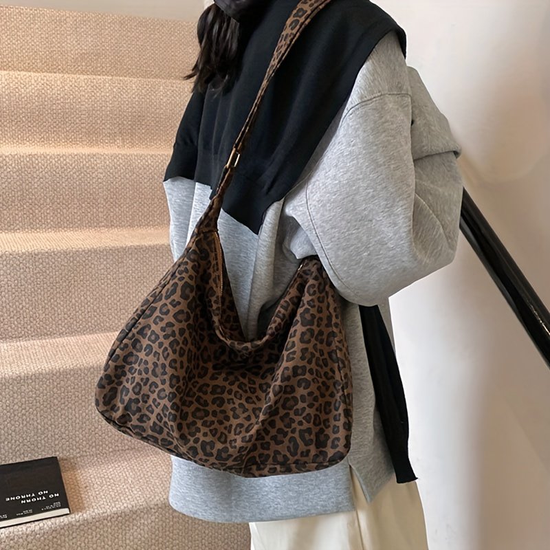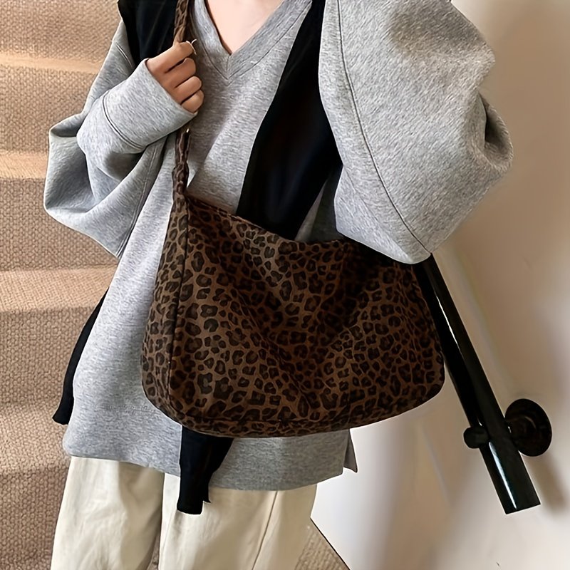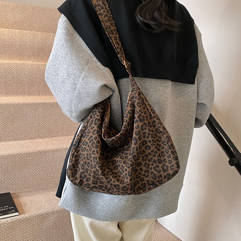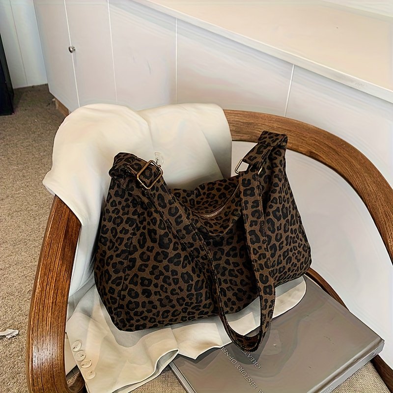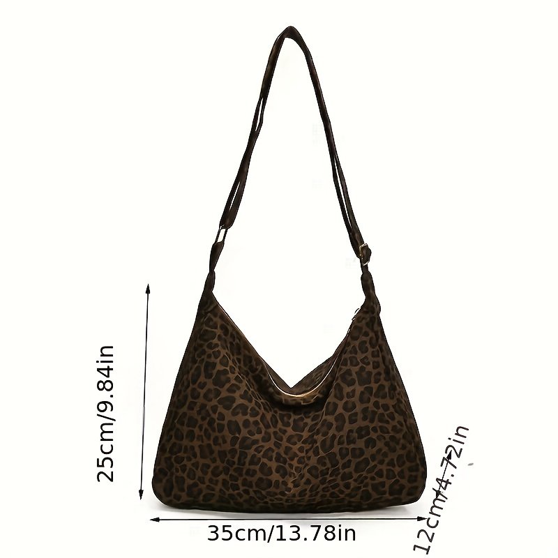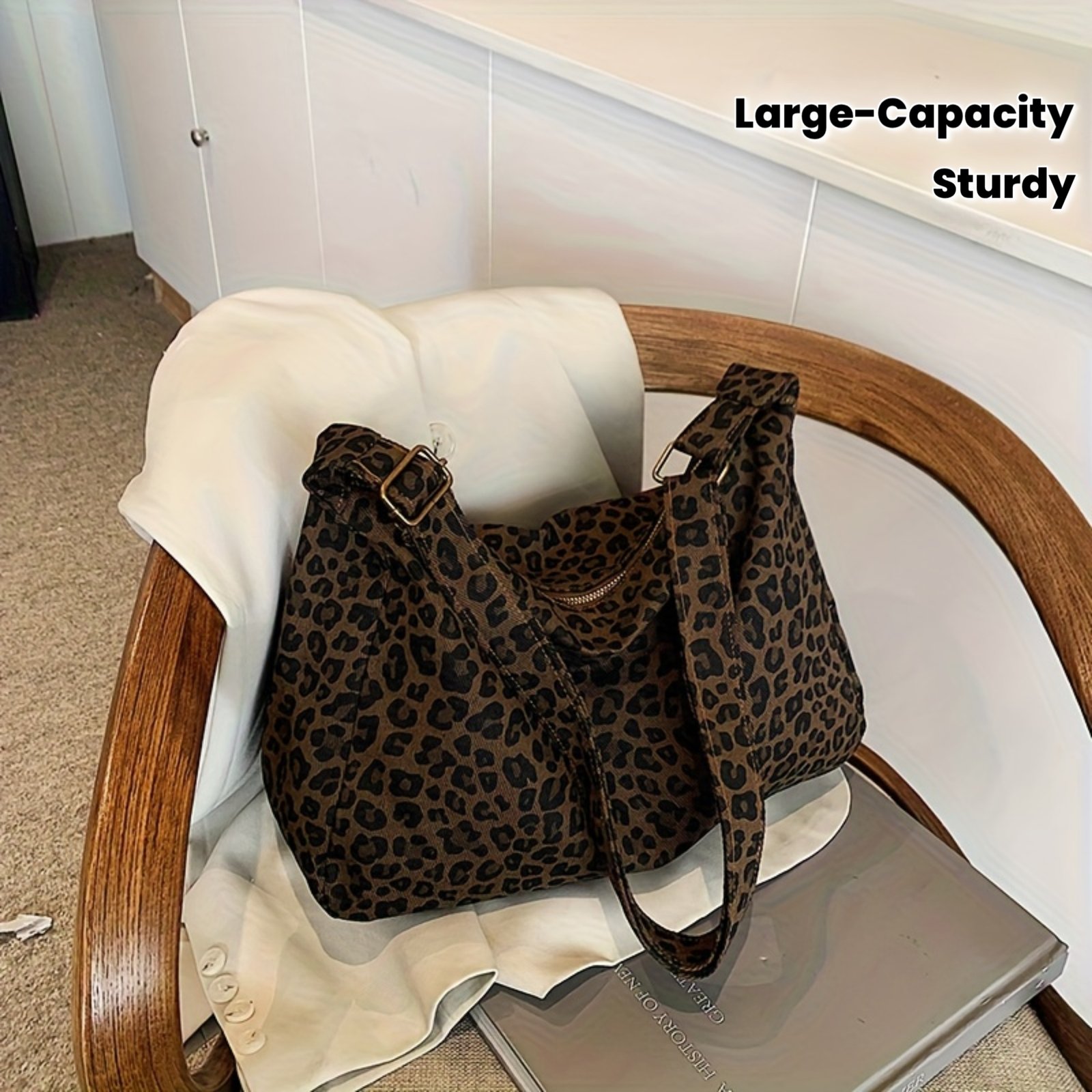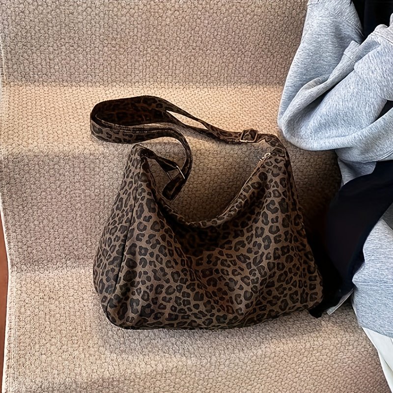 Leopard Print Crossbody Bag with Adjustable Strap – Large Capacity Zip Compartments, Coffee Brown, Suitable for Daily Commuting, Beach Trips, Casual Outings, Crossbody Handbag, Travel Accessory, Vintage Style, Sturdy and Durable, Spacious Tote