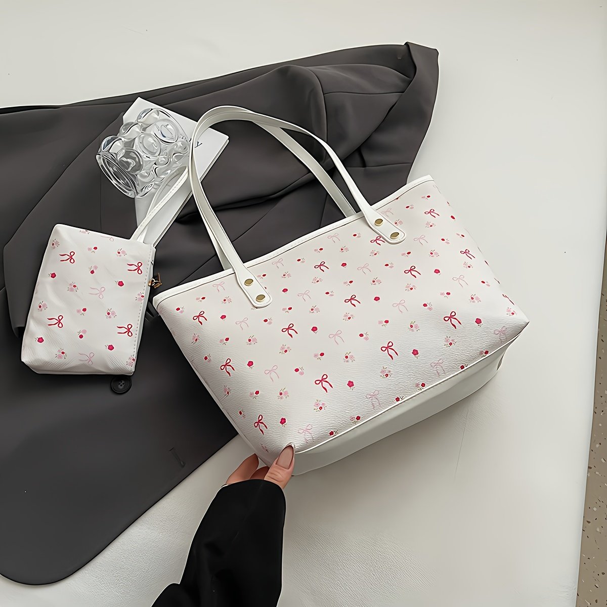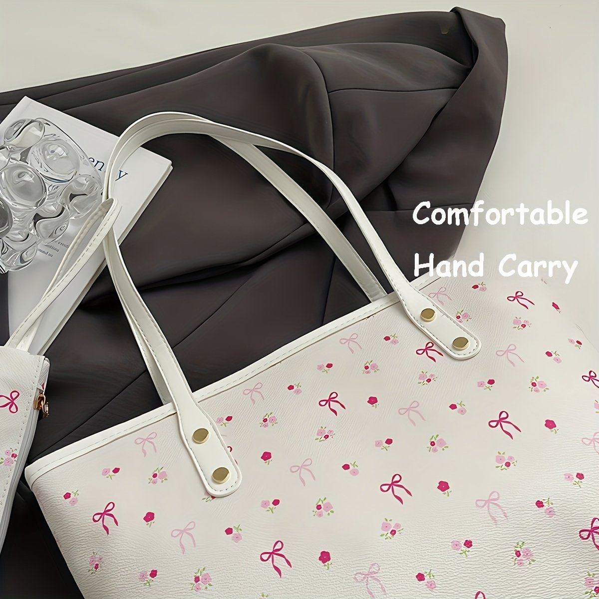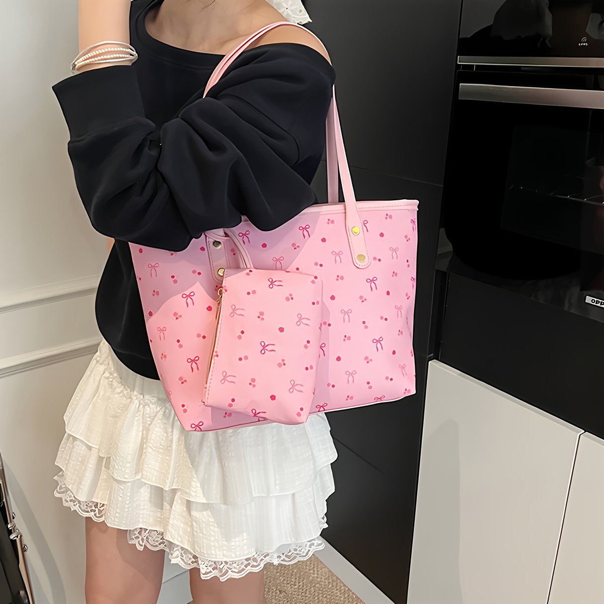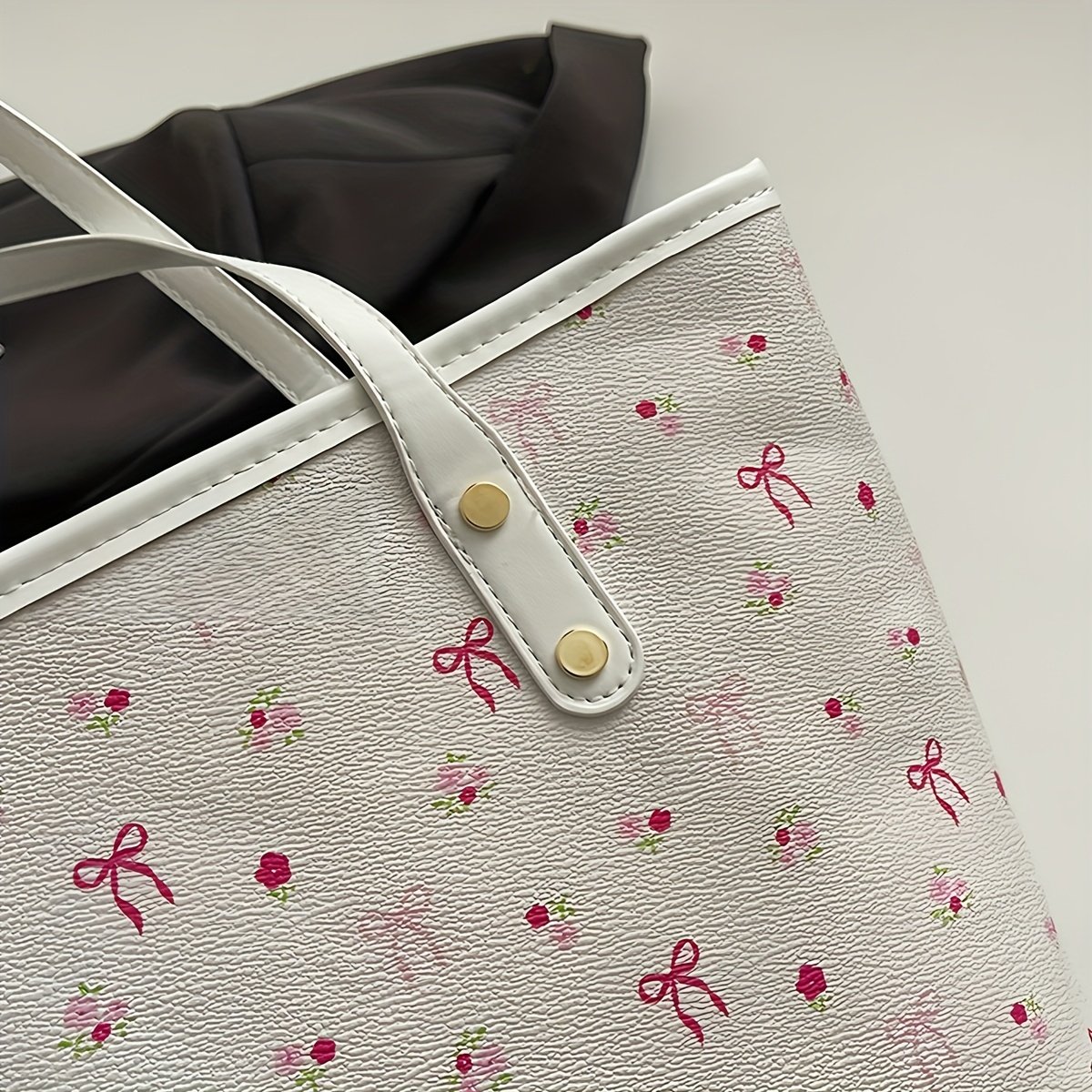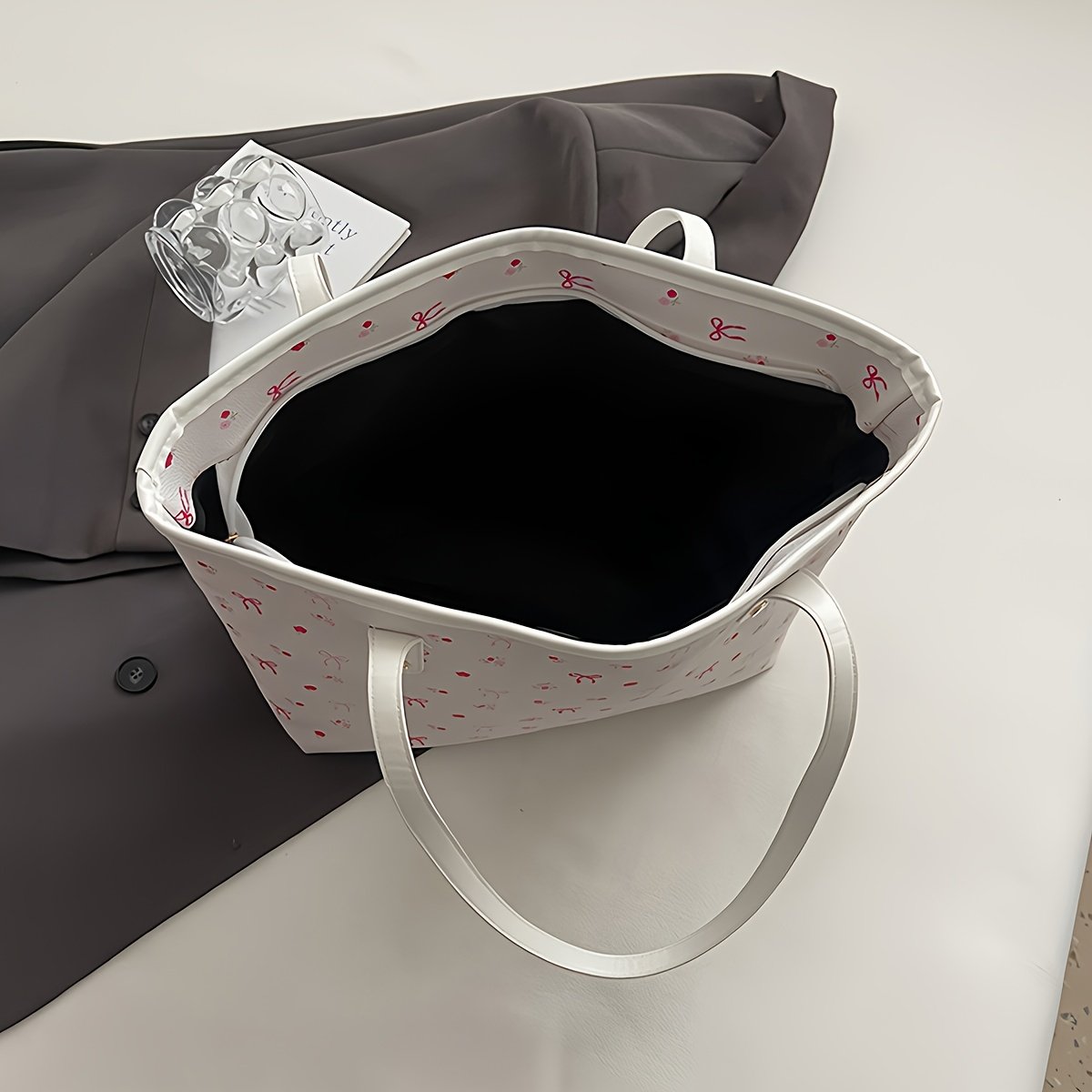 Stylish And Fresh Cherry Bow Shoulder Bag, Large Capacity Tote Bag, Underarm Bag for College Students' Commuting, Versatile Underarm Handbag Suitable for Everyday Work Outfits