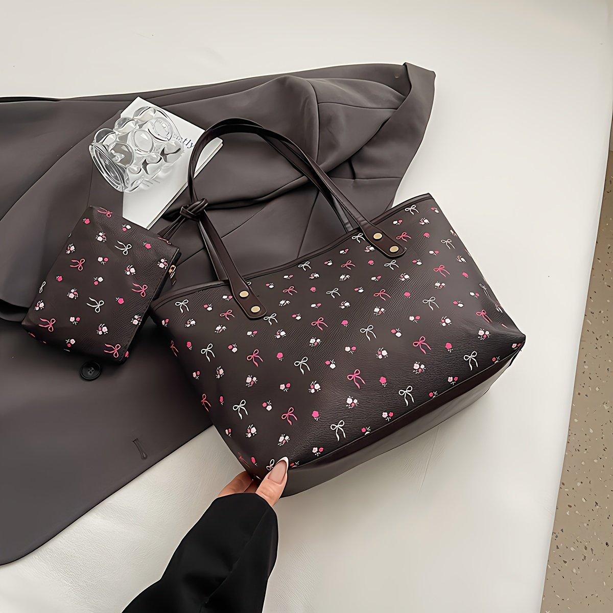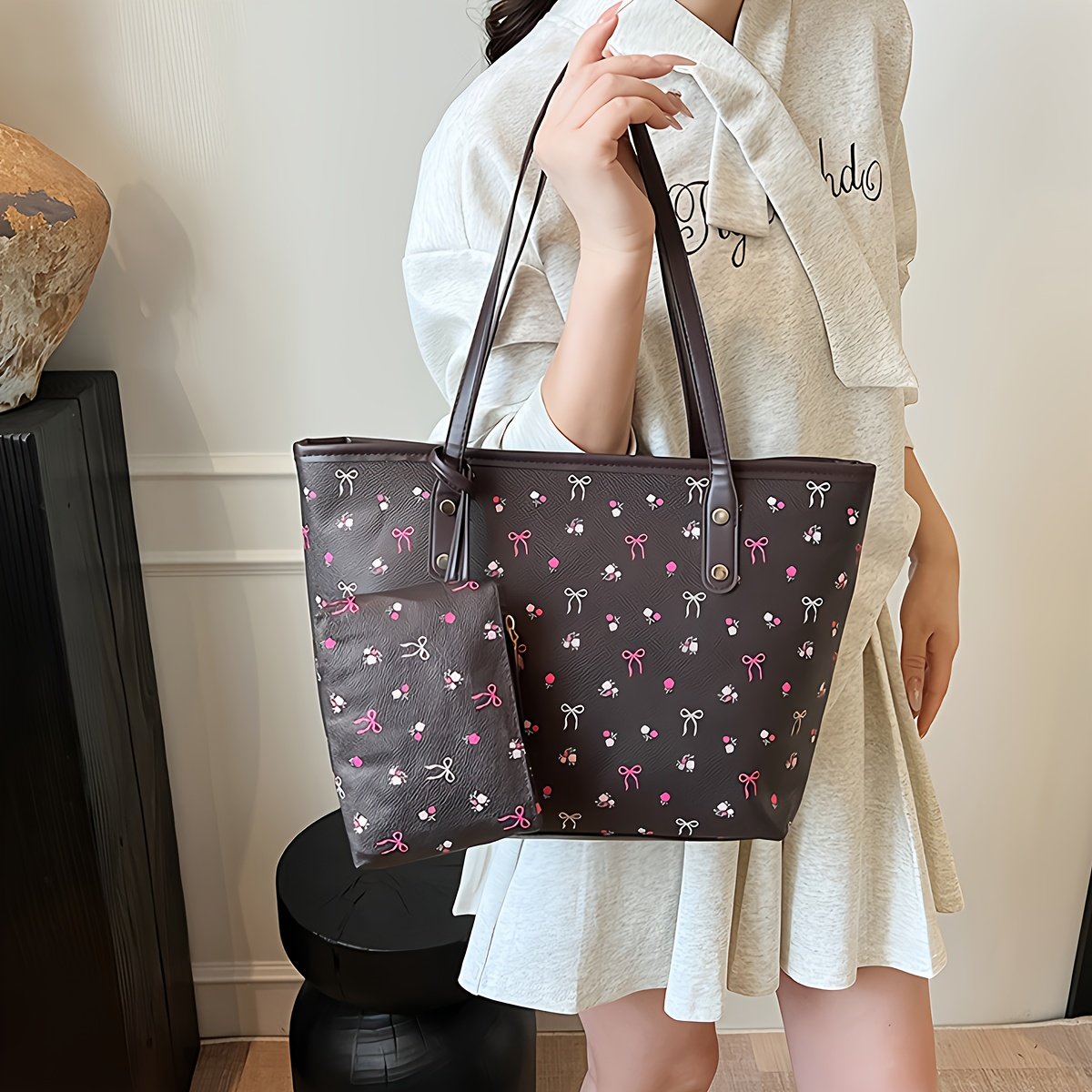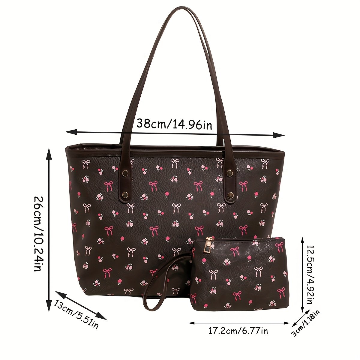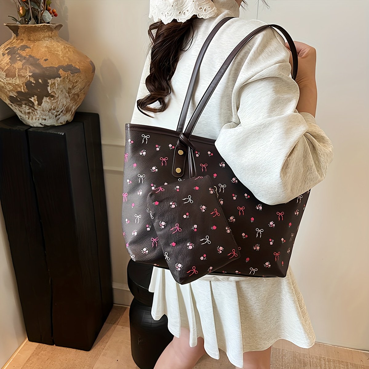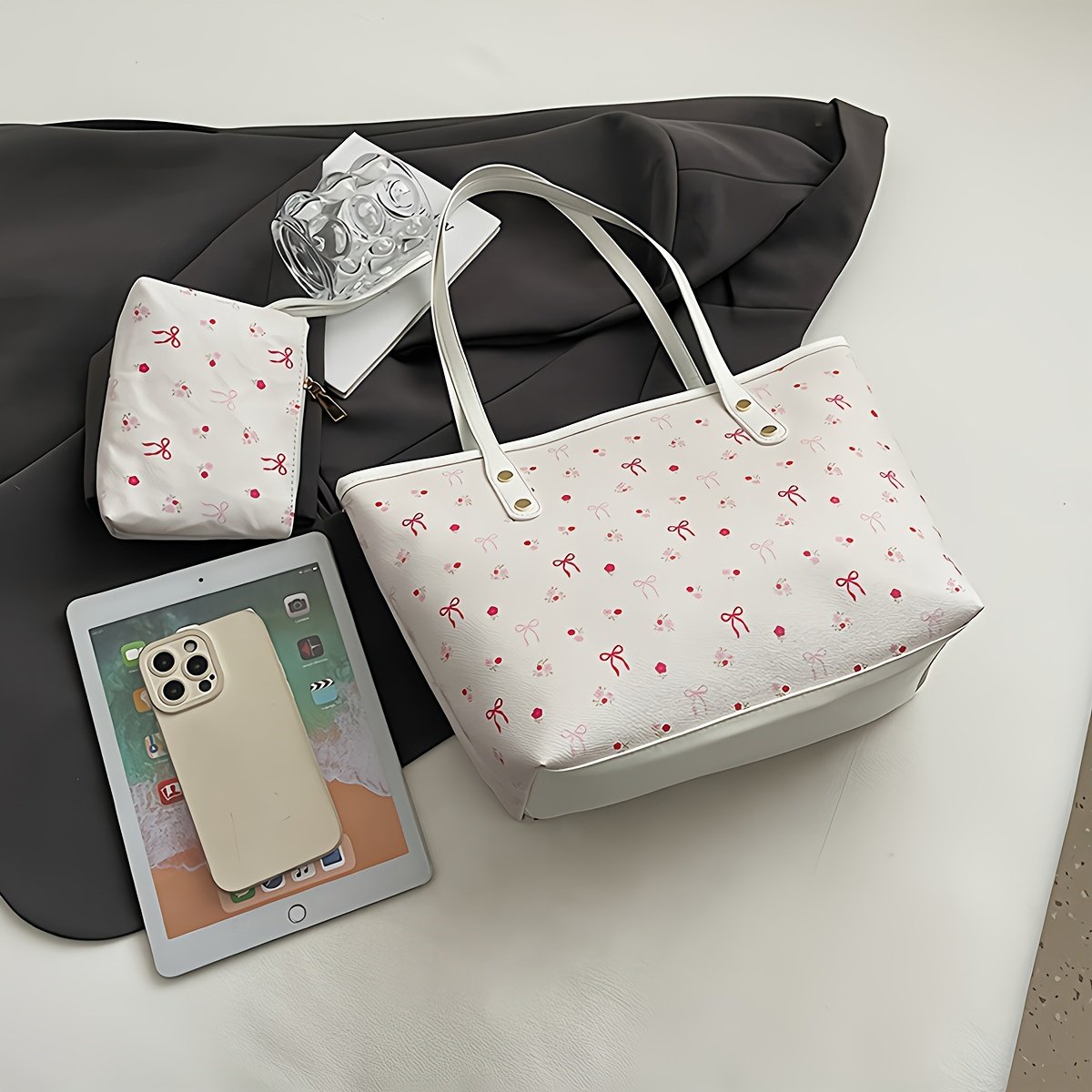 Stylish And Fresh Cherry Bow Shoulder Bag, Large Capacity Tote Bag, Underarm Bag for College Students' Commuting, Versatile Underarm Handbag Suitable for Everyday Work Outfits