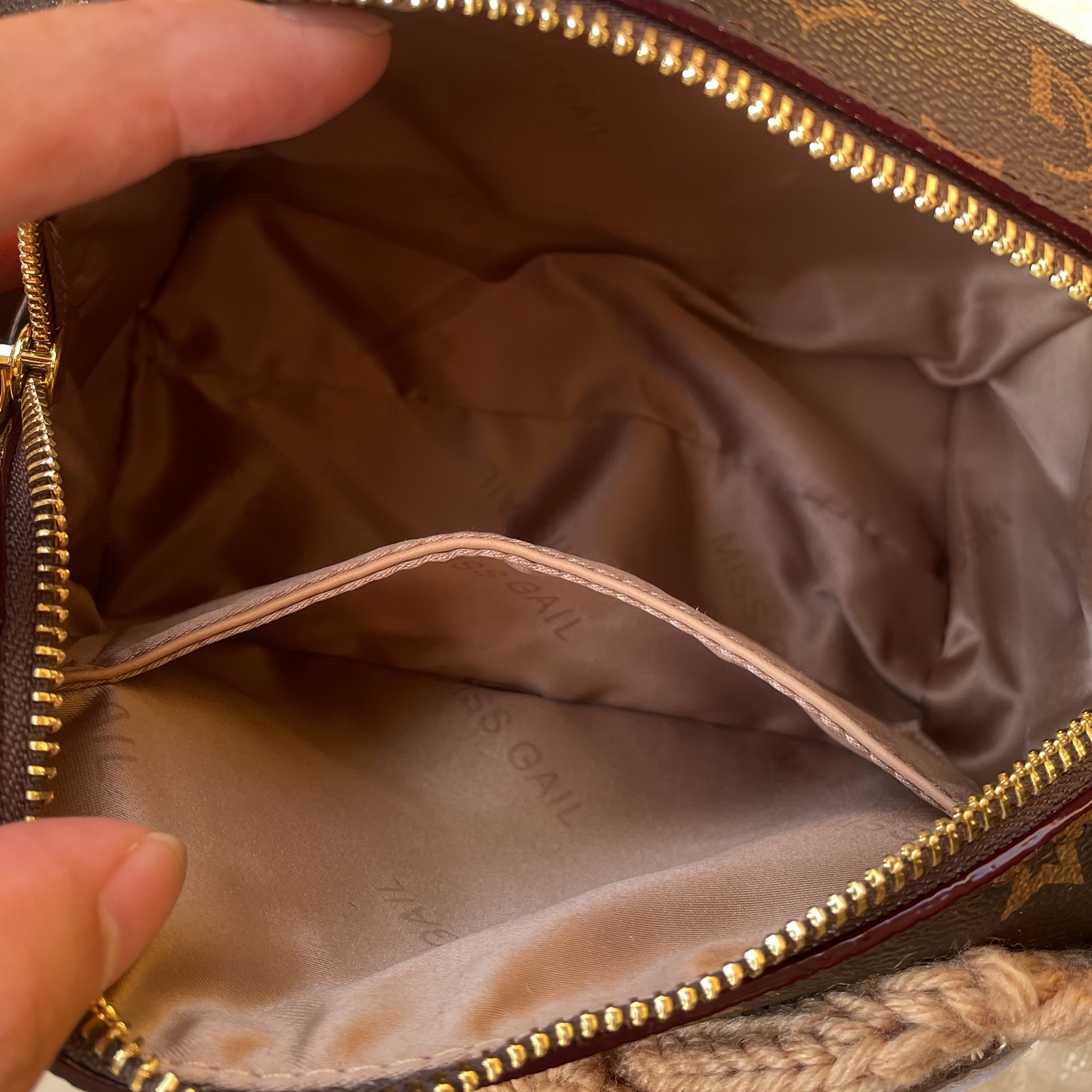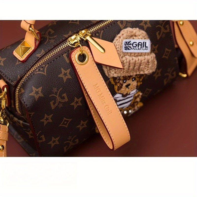 Women's Adjustable handbag with Bear & Geometric Pattern – Coffee Brown Second-Layer, Golden-Tone Hardware, Zipper Closure & Wrist Strap – Sexy Chic Design for Everyday Use, Crossbody Purse, Versatile Carryall, Playful Aesthetic, Durable Construction, Tre