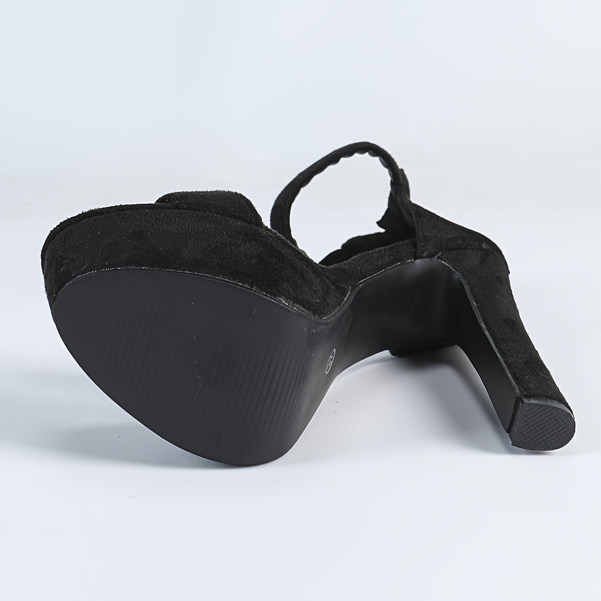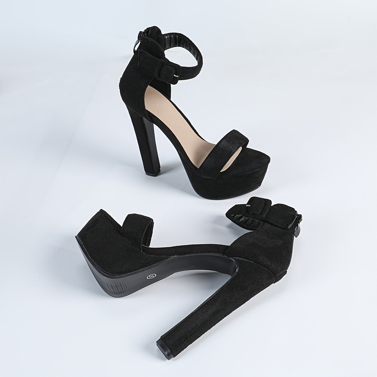 Women's Ultra-High Block Heel Platform Sandals – Black Cover Strappy Ankle Strap with Adjustable Buckle, Open-Toe Summer Dress Shoes for Parties, Events & Formal Occasions, Event Heels | Durable Rubber Sole