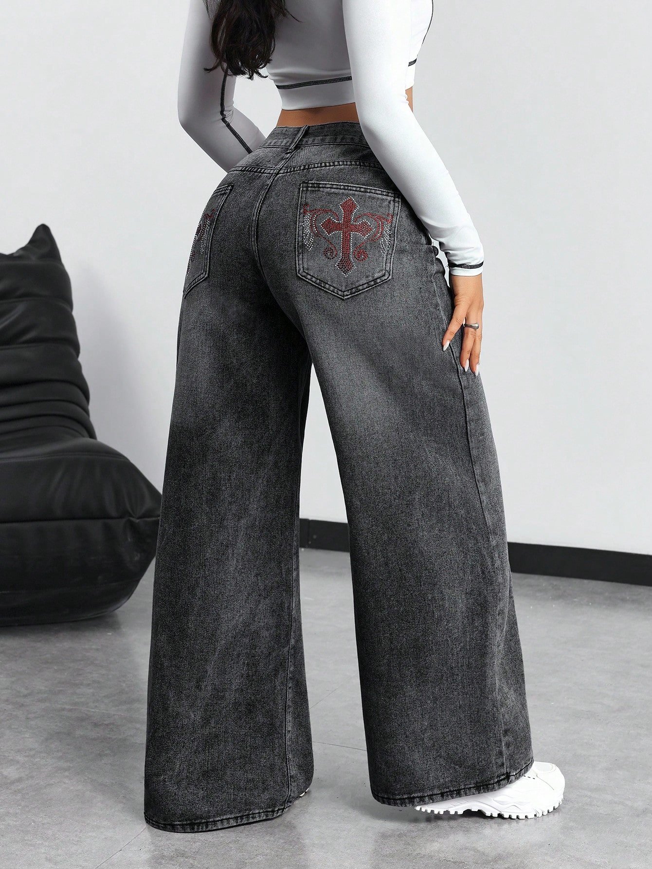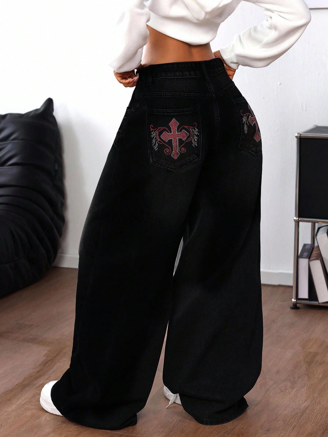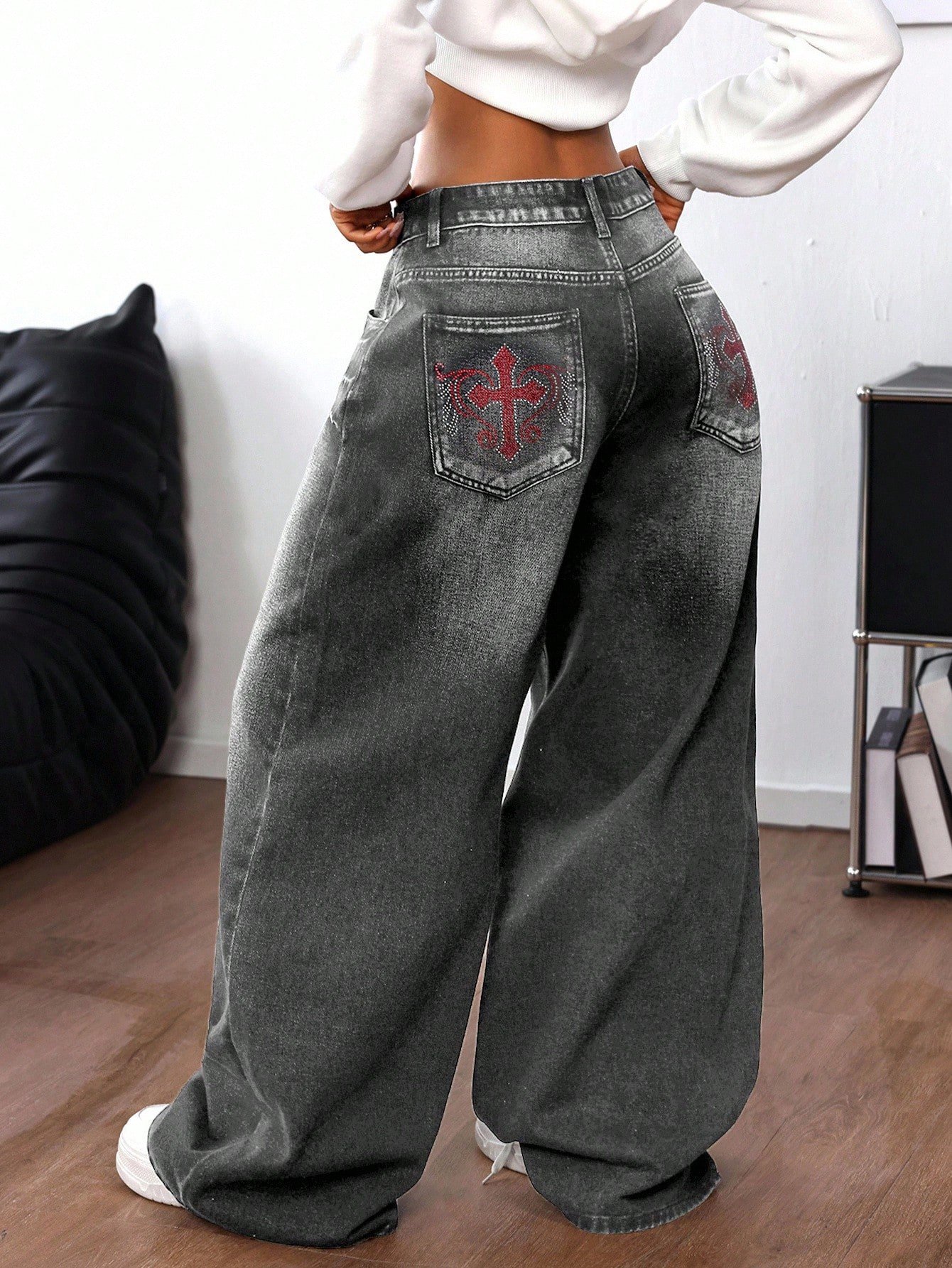 Be the first to review “SHEIN ICON Women's Rhinestone Cross Pocket Wide Leg Loose Casual Jeans” Cancel reply