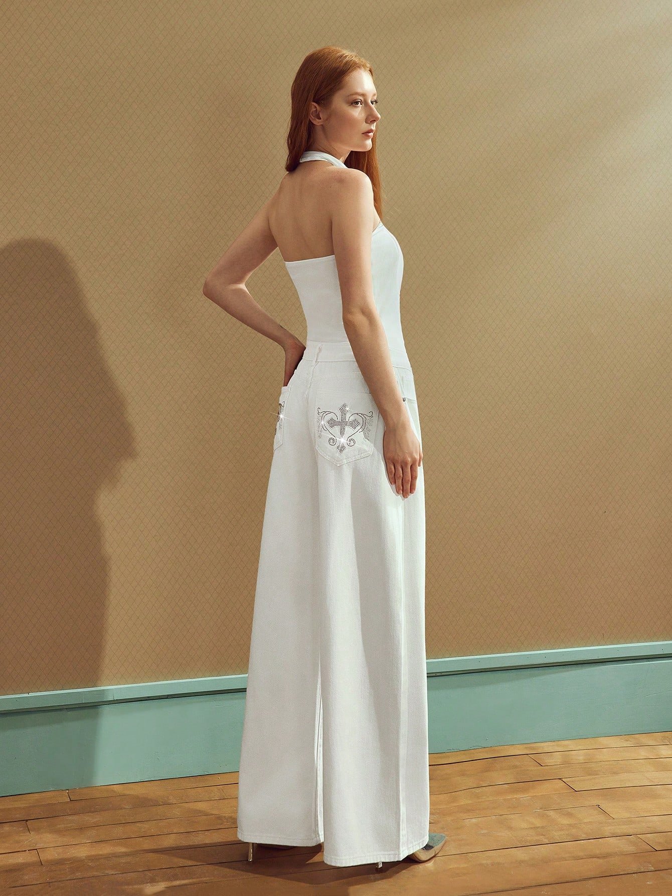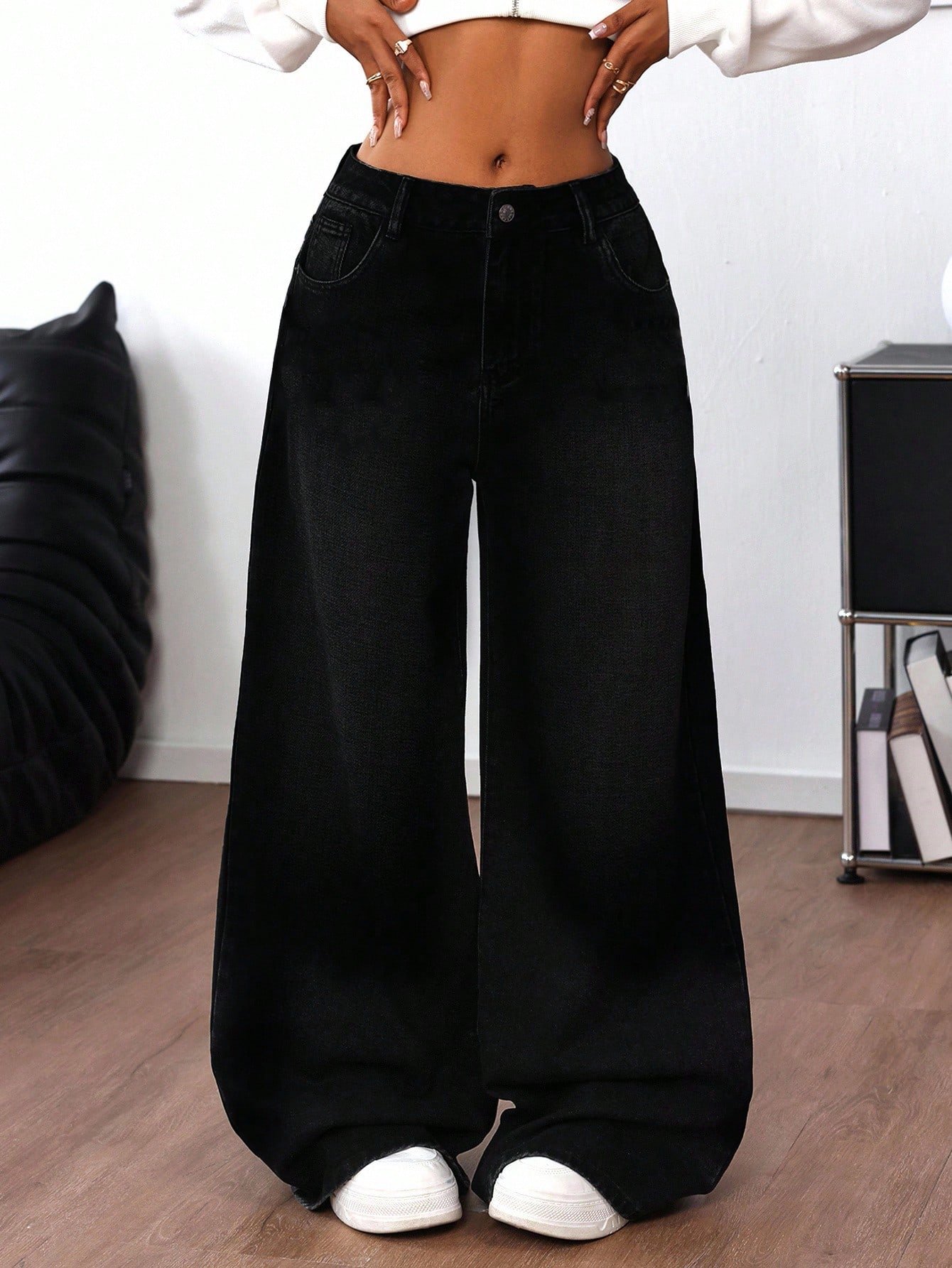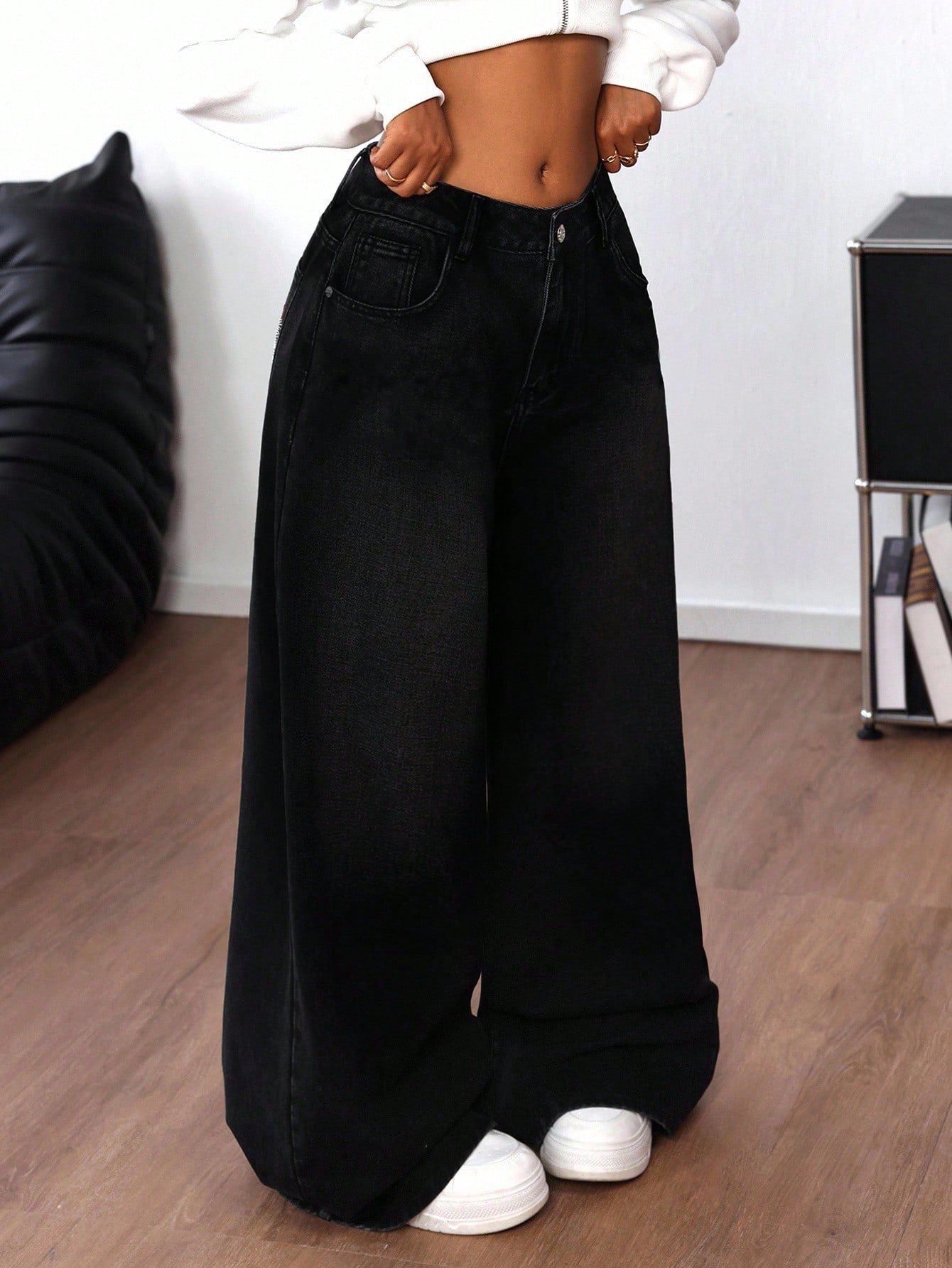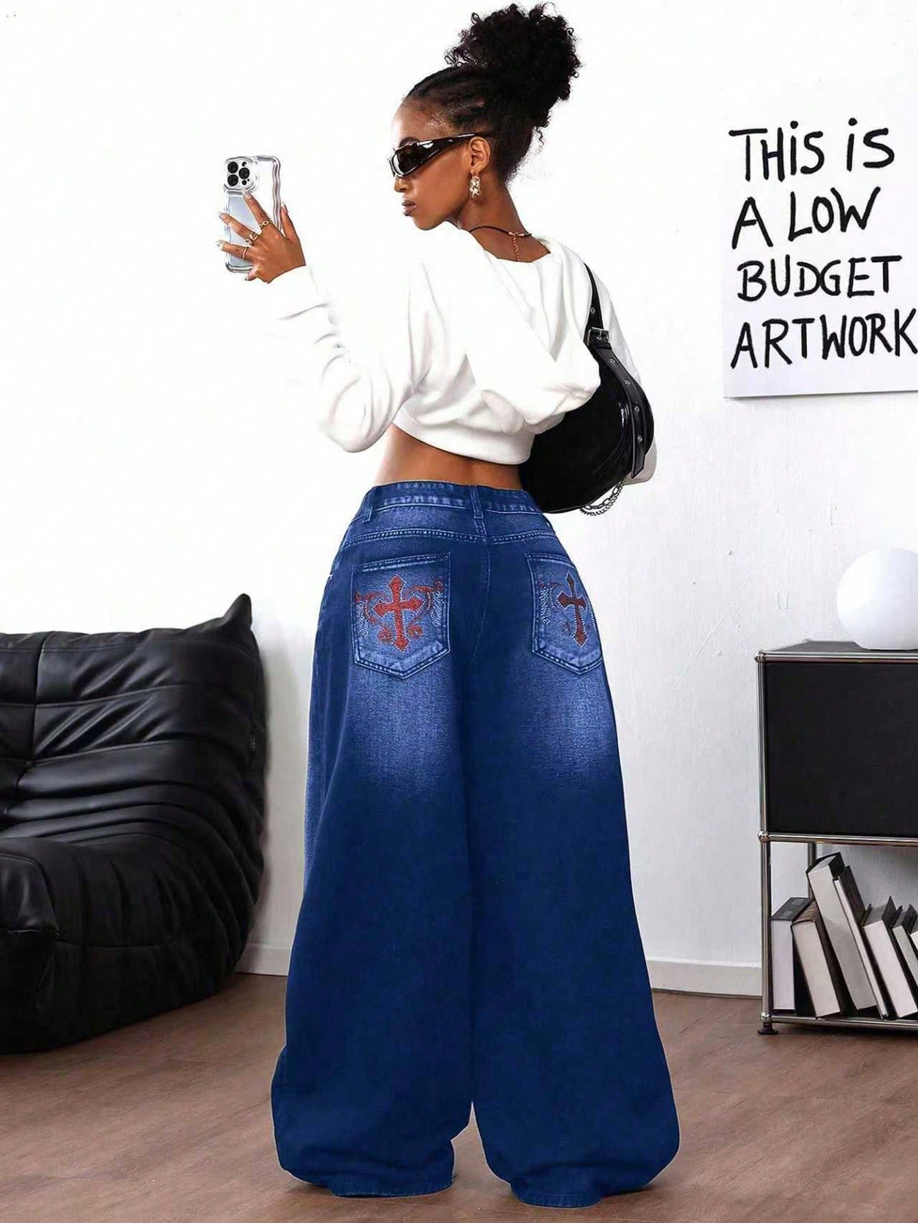 Be the first to review “SHEIN ICON Women's Rhinestone Cross Pocket Wide Leg Loose Casual Jeans” Cancel reply