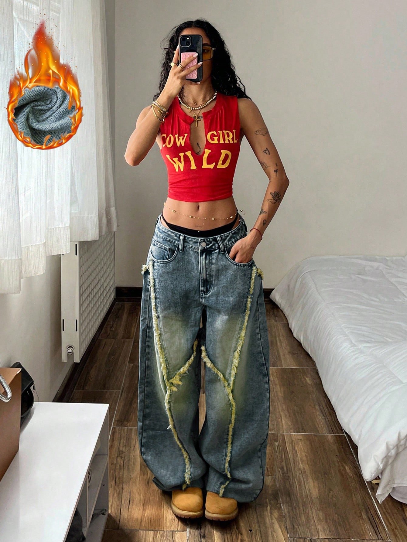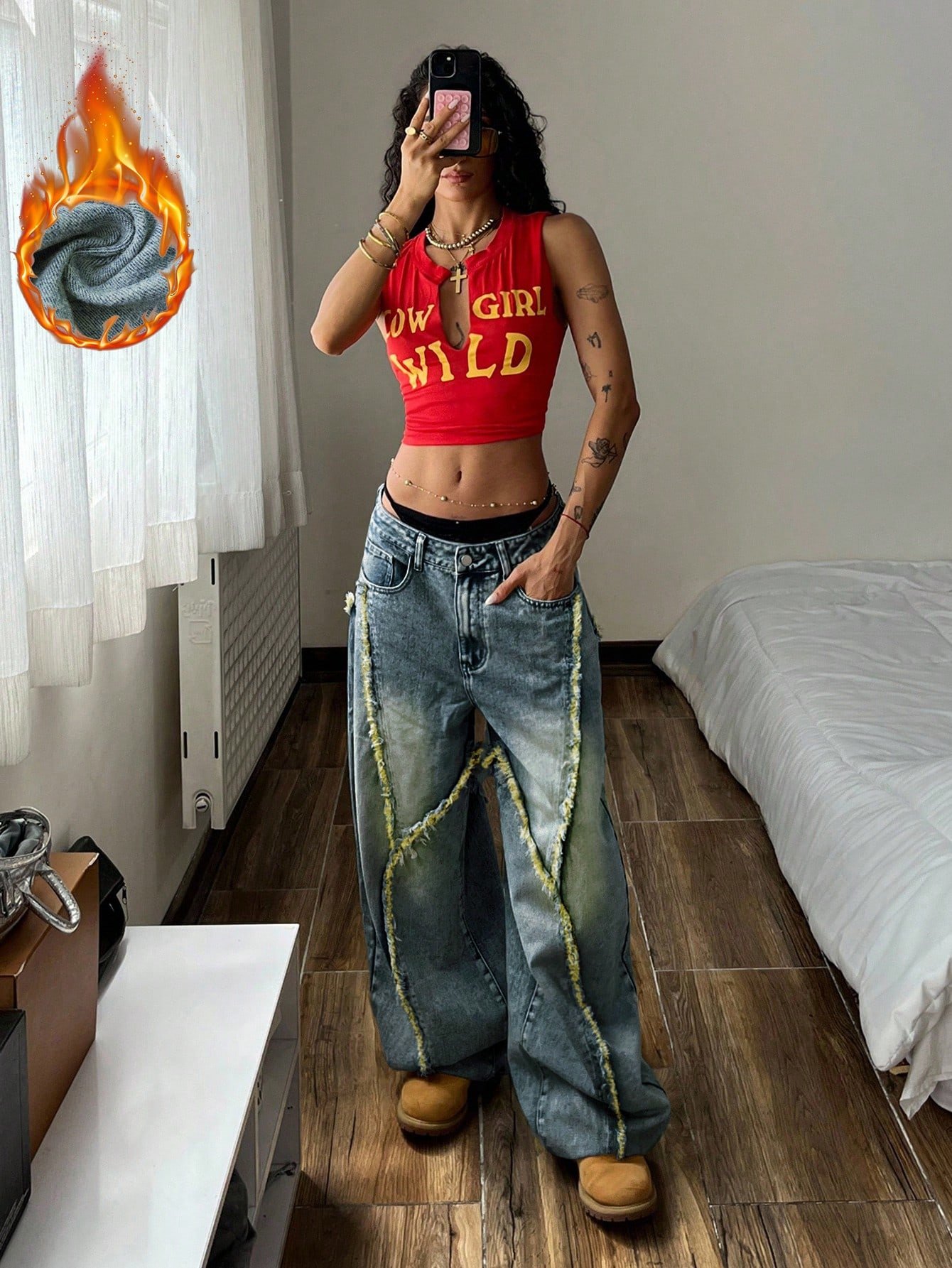 Women'S Y2K Streetwear Jeans – Non-Stretch Straight Leg Pants with Star Pattern, All-Season Non-Stretch Jeans for Edgy Outfits, Casual & Formal Events – Retro 2000s Fashion Jeans, Versatile Clothing, Distressed Look, Durable Fabric, Statement Bottoms, Fas