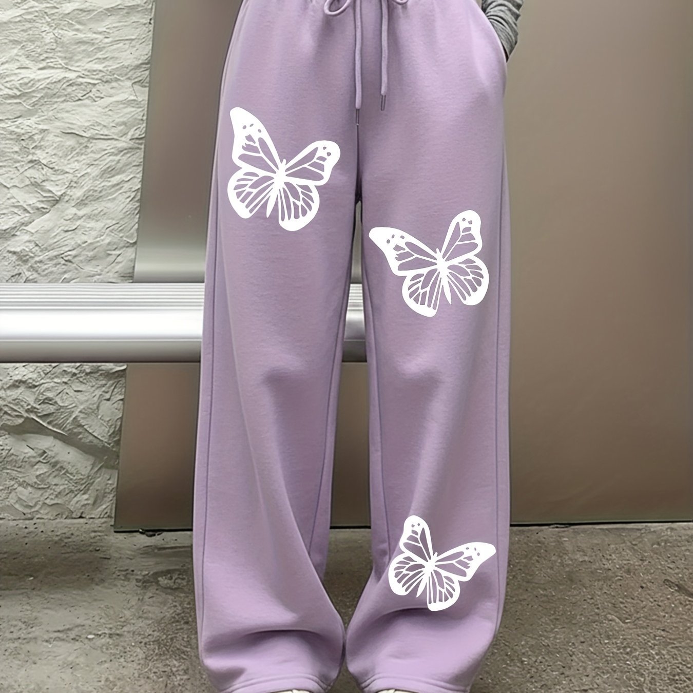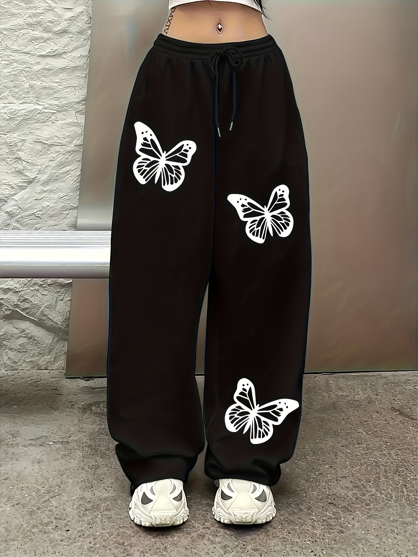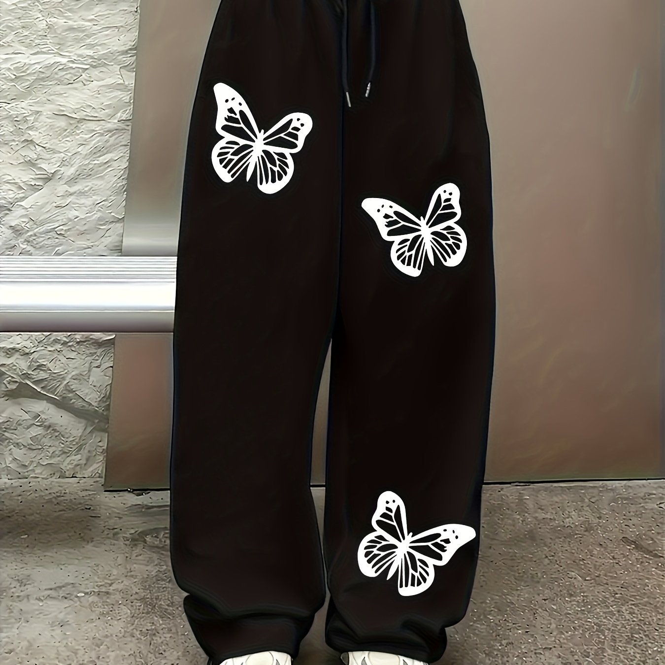 WB Women's Butterfly Print Jogger-Like Straight-Leg Pants with Elastic Drawstring Waist – All-Season Trousers, Butterfly Pattern & – Casual to Semi-Formal Wear, Machine Washable, for, Outfits & Everyday Outfits In-Stock