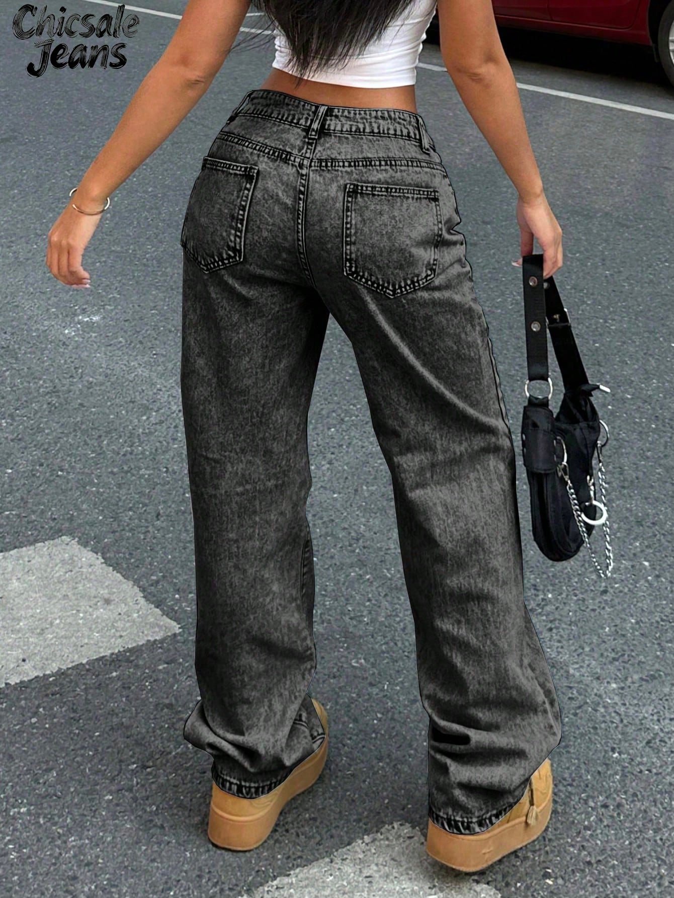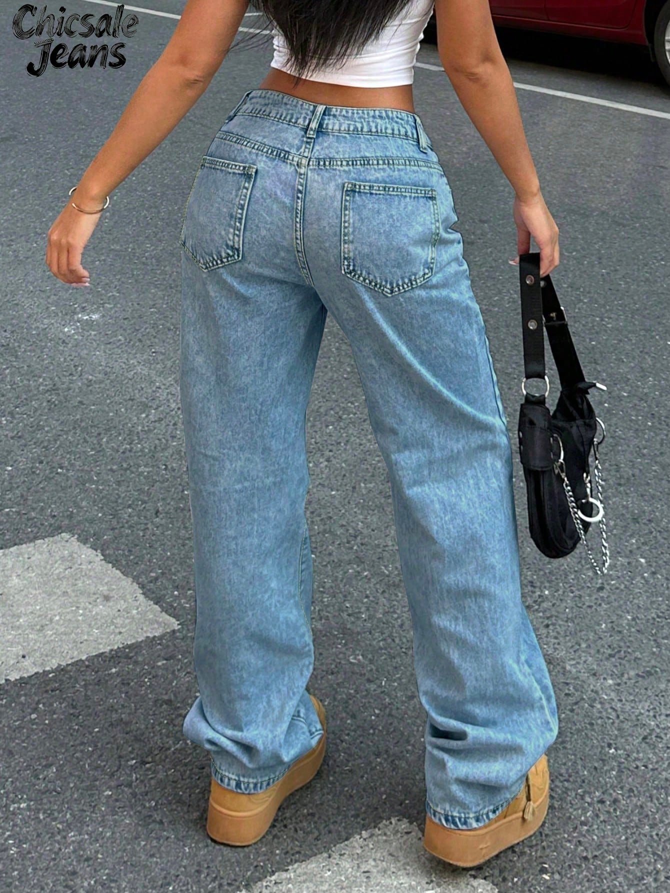 Women Casual Solid Color Water-Washed Wide Leg Denim Jeans For Daily Wear