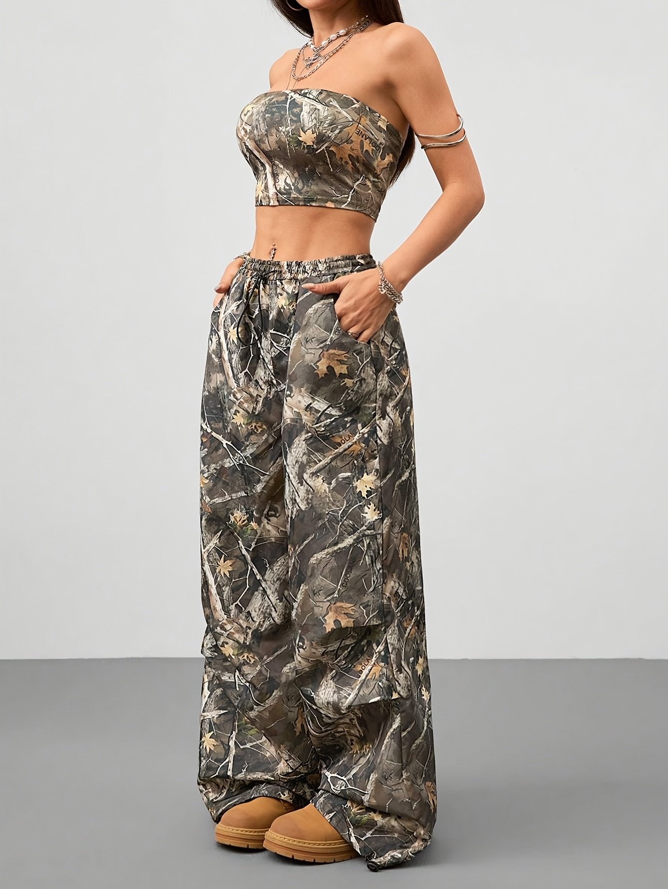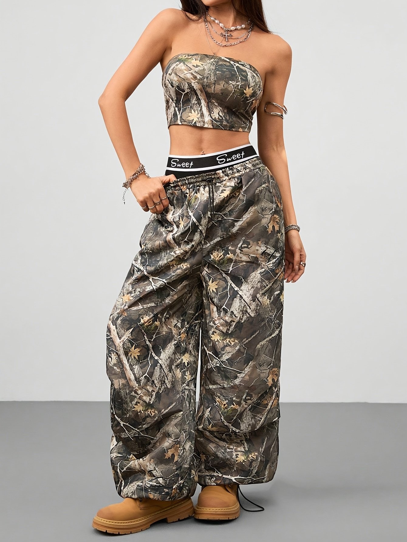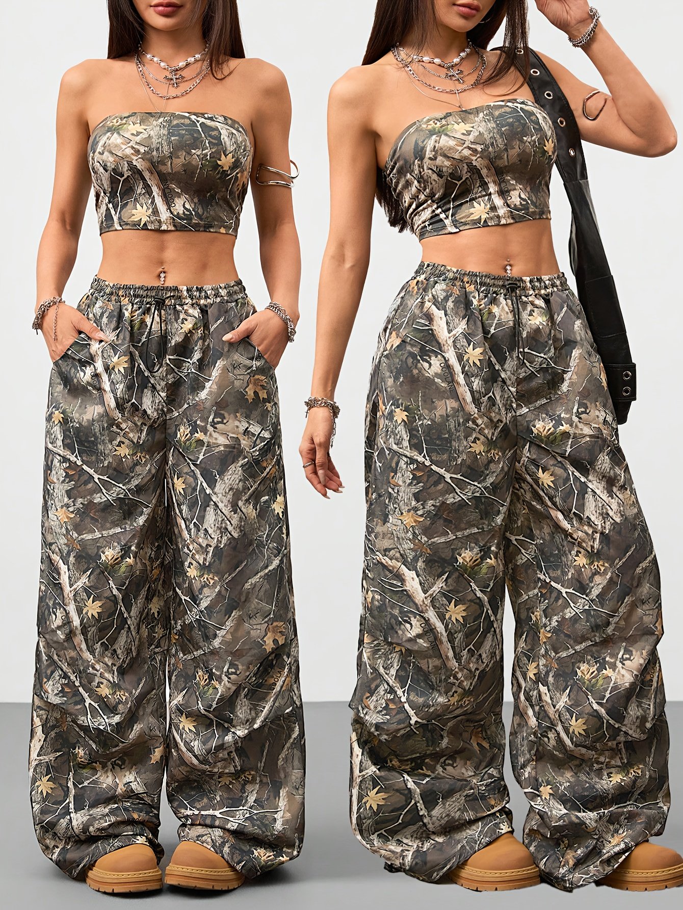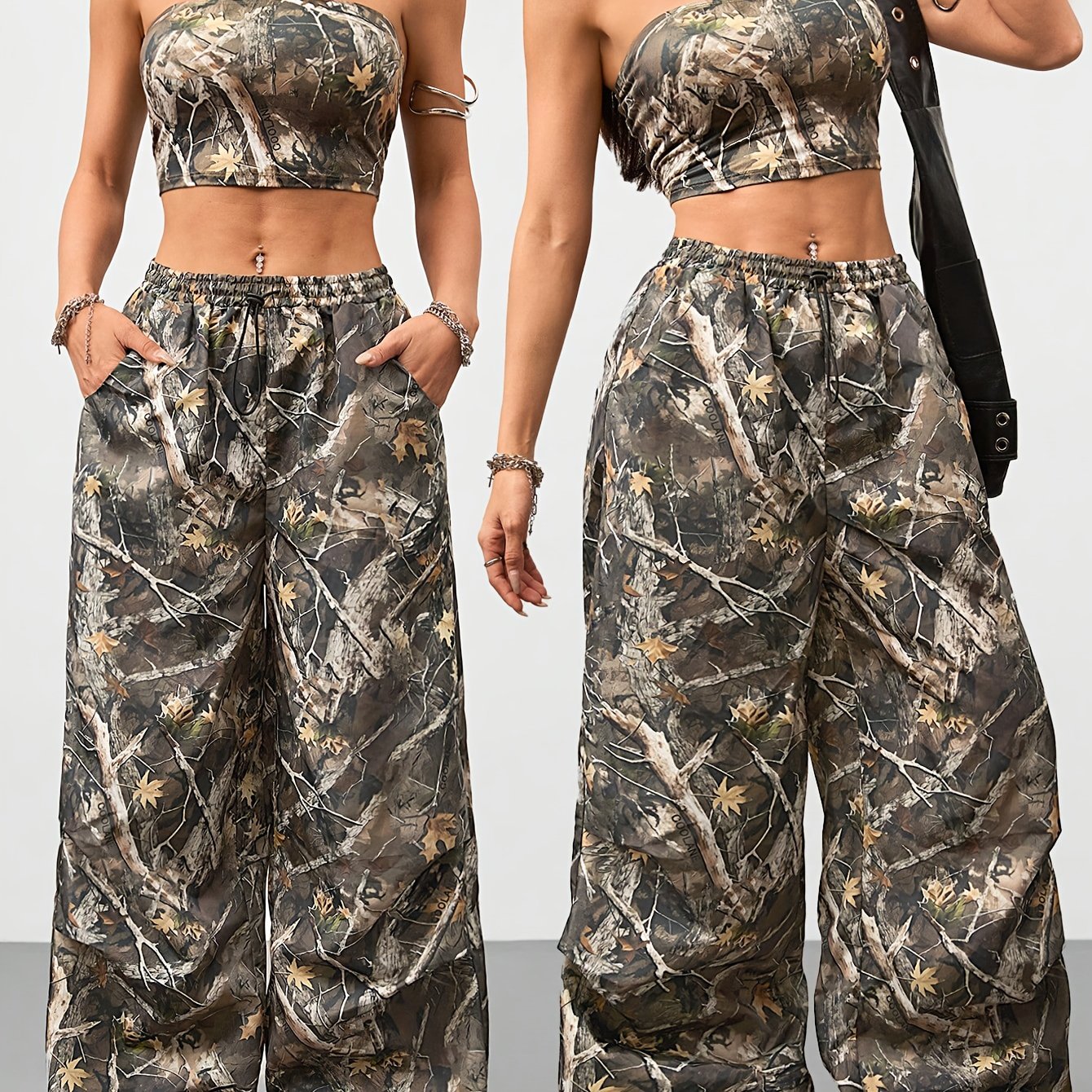 Women'S Spring/Summer Casual Outdoor Outfit – Camouflage Pants with Elastic Waistband, Casual Attire|Camouflage Pattern| Fabric