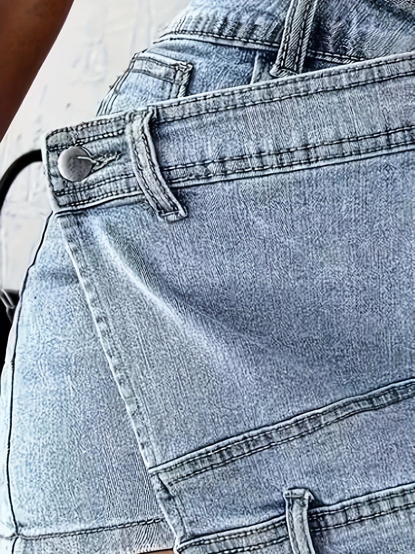 Women'S High-Waist Stretch Denim Mini Skirt with Pockets – Slim Fit Bodycon Summer Skirt, Blue Washed Vintage Street Style, Casual Chic Denim Skirt