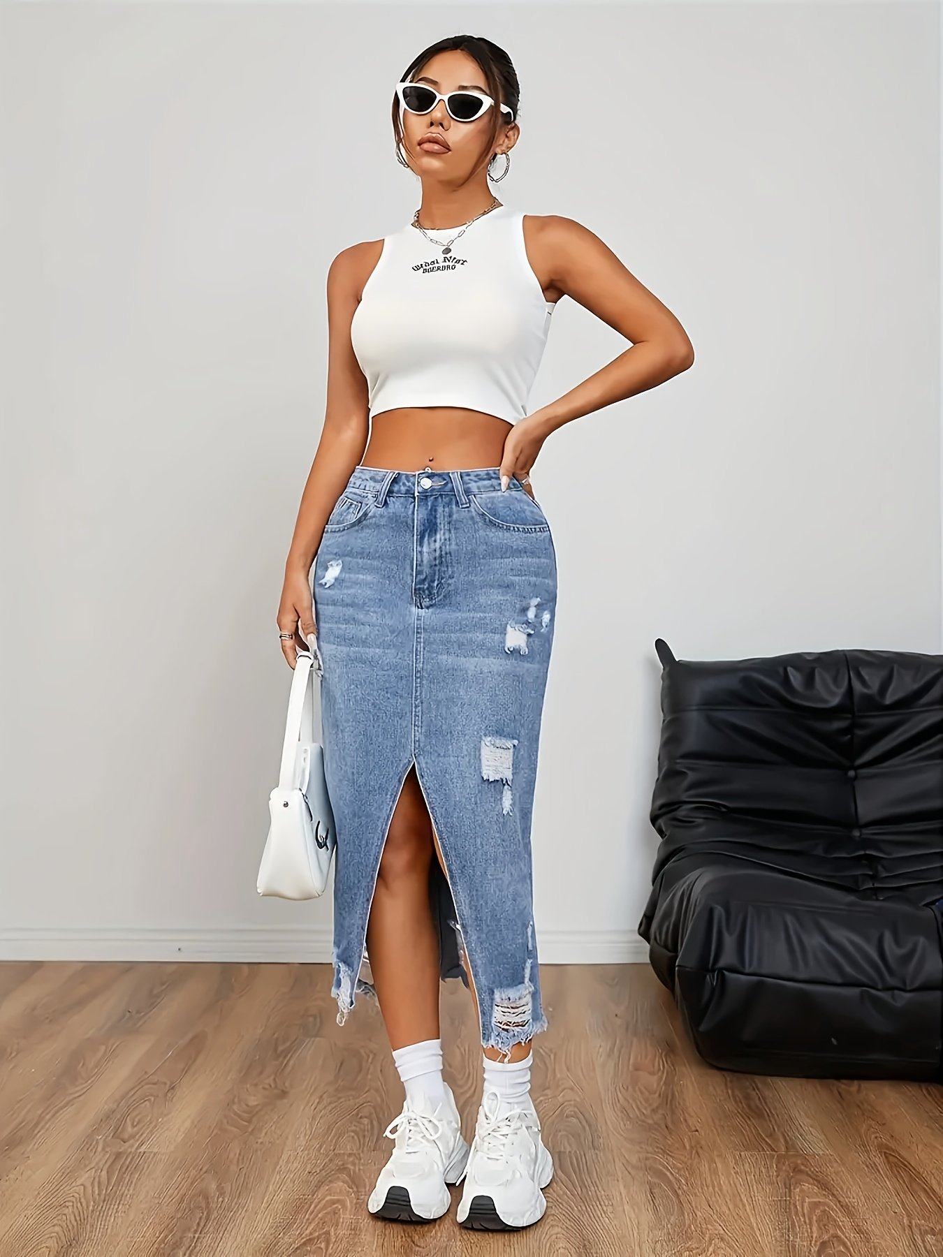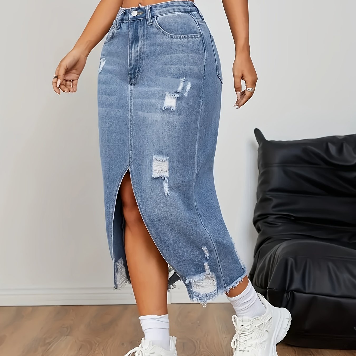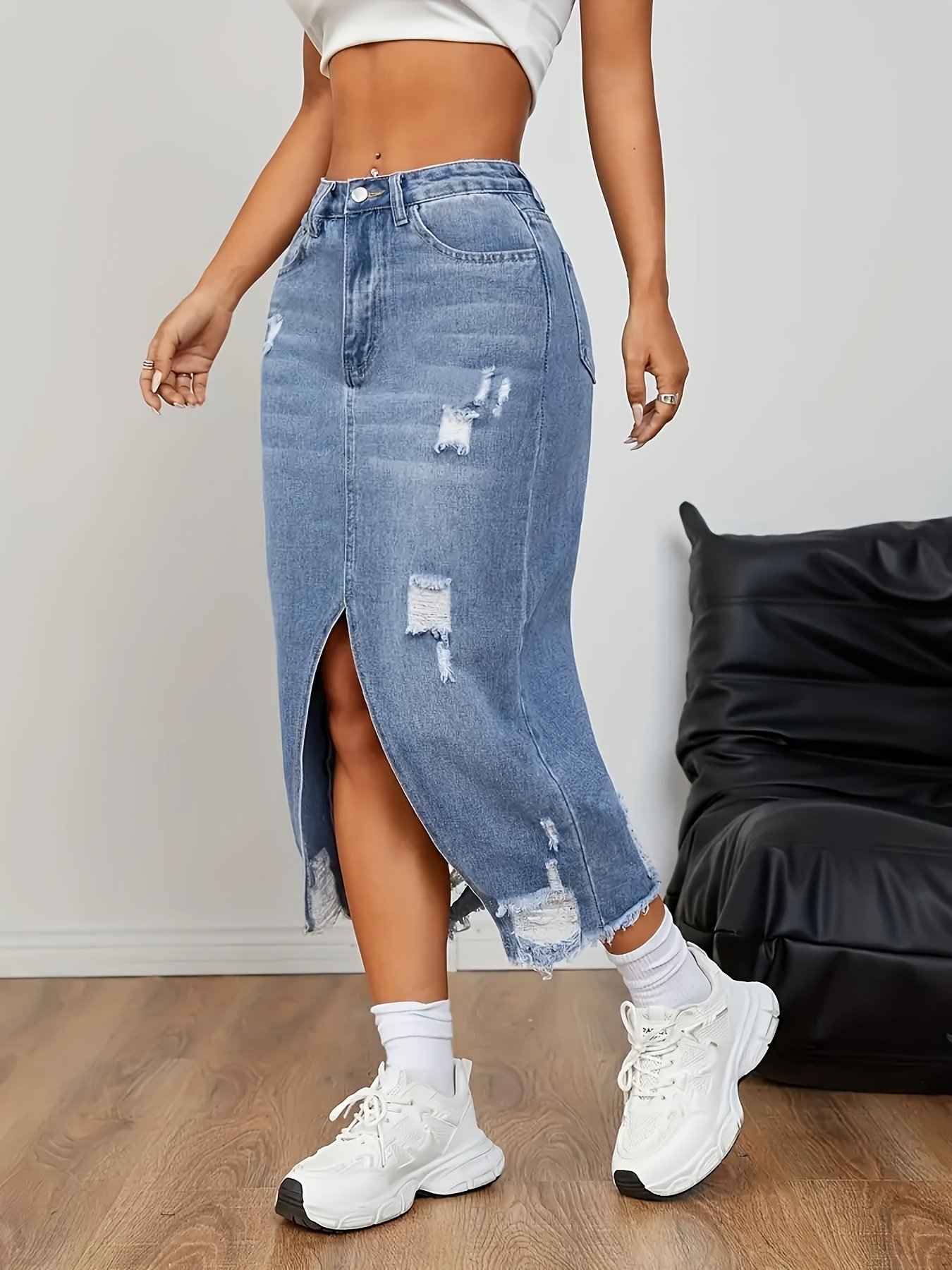 5033 Women's Minimalist Slit Denim Long Dress