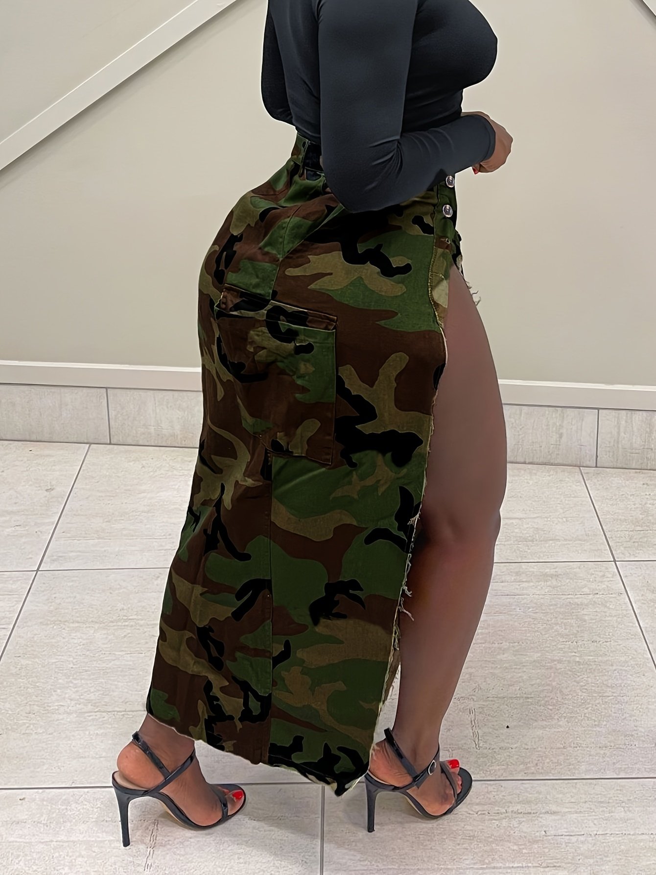 Directional Street Style High-Slit Multi-Pocket Casual Elegant Party Women'S Workwear Skirt