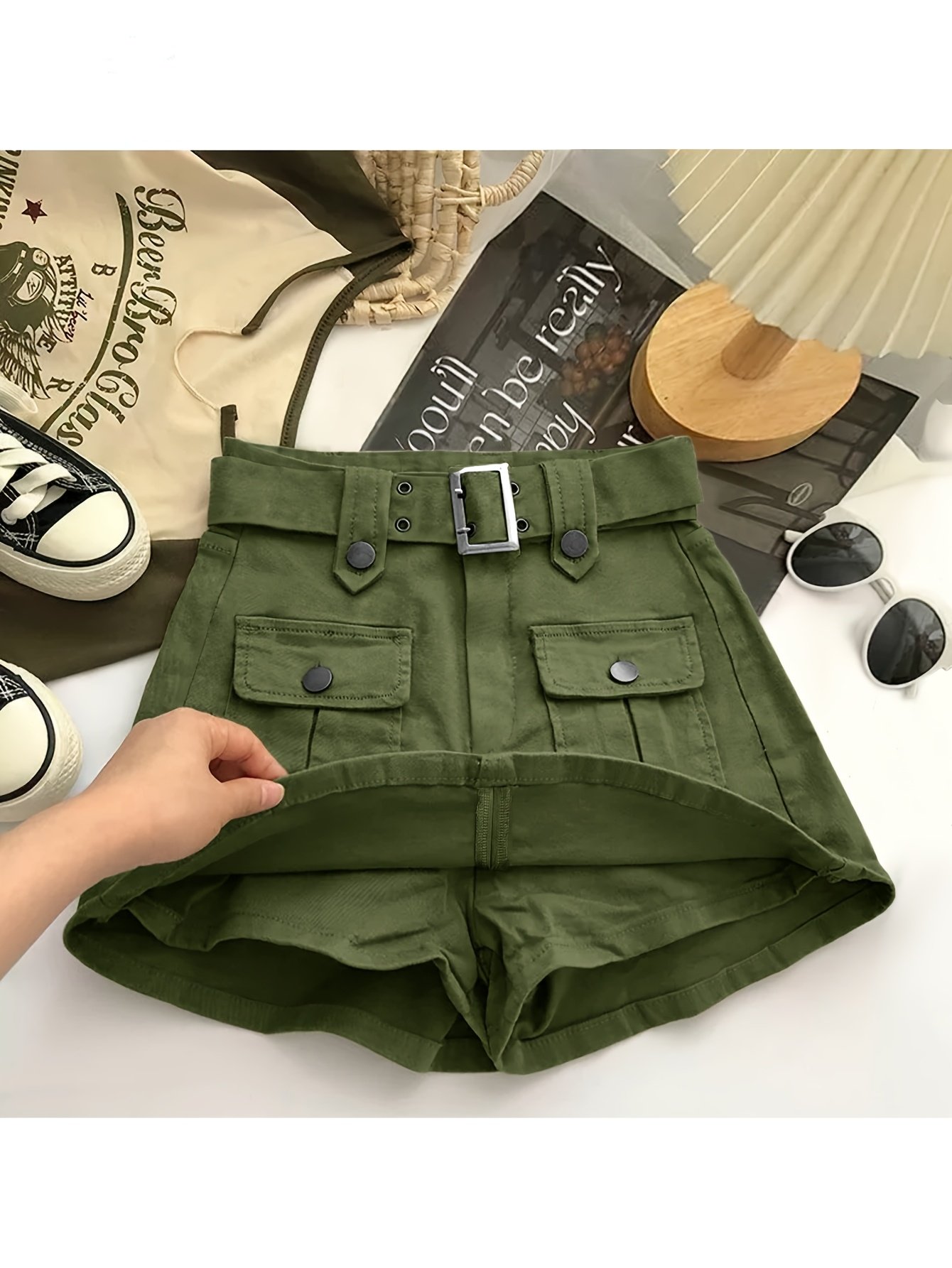 Women'S Y2K Street Fashion Asymmetric Hem Mini Skirt – Stretchy A-Line Cut with Decorative Buttons, Solid Color Sexy Style for Parties, Nightclubs & Summer Events, Summer Skirt | Y2K Fashion | Glossy Finish
