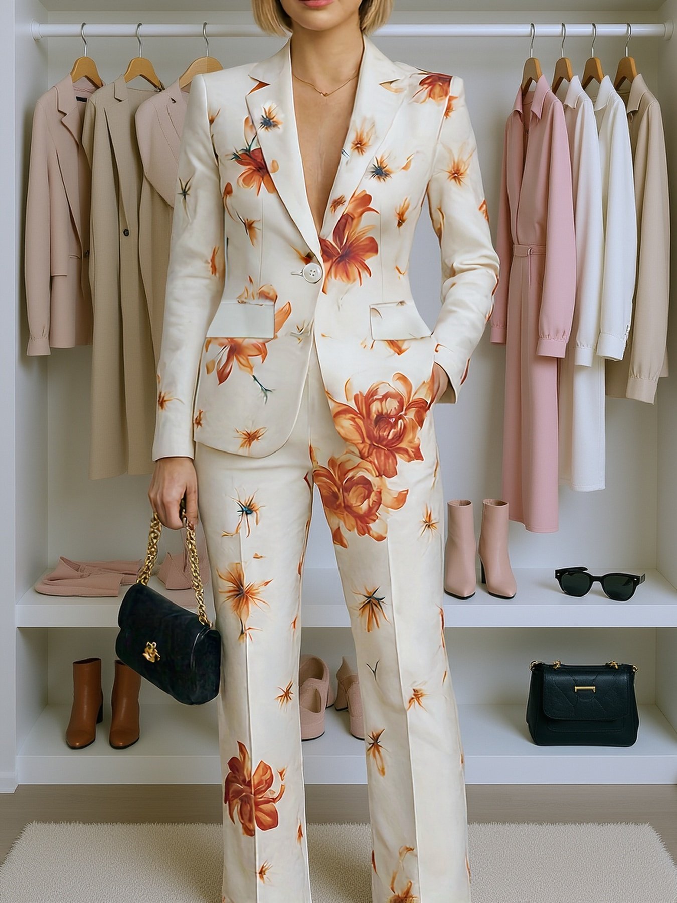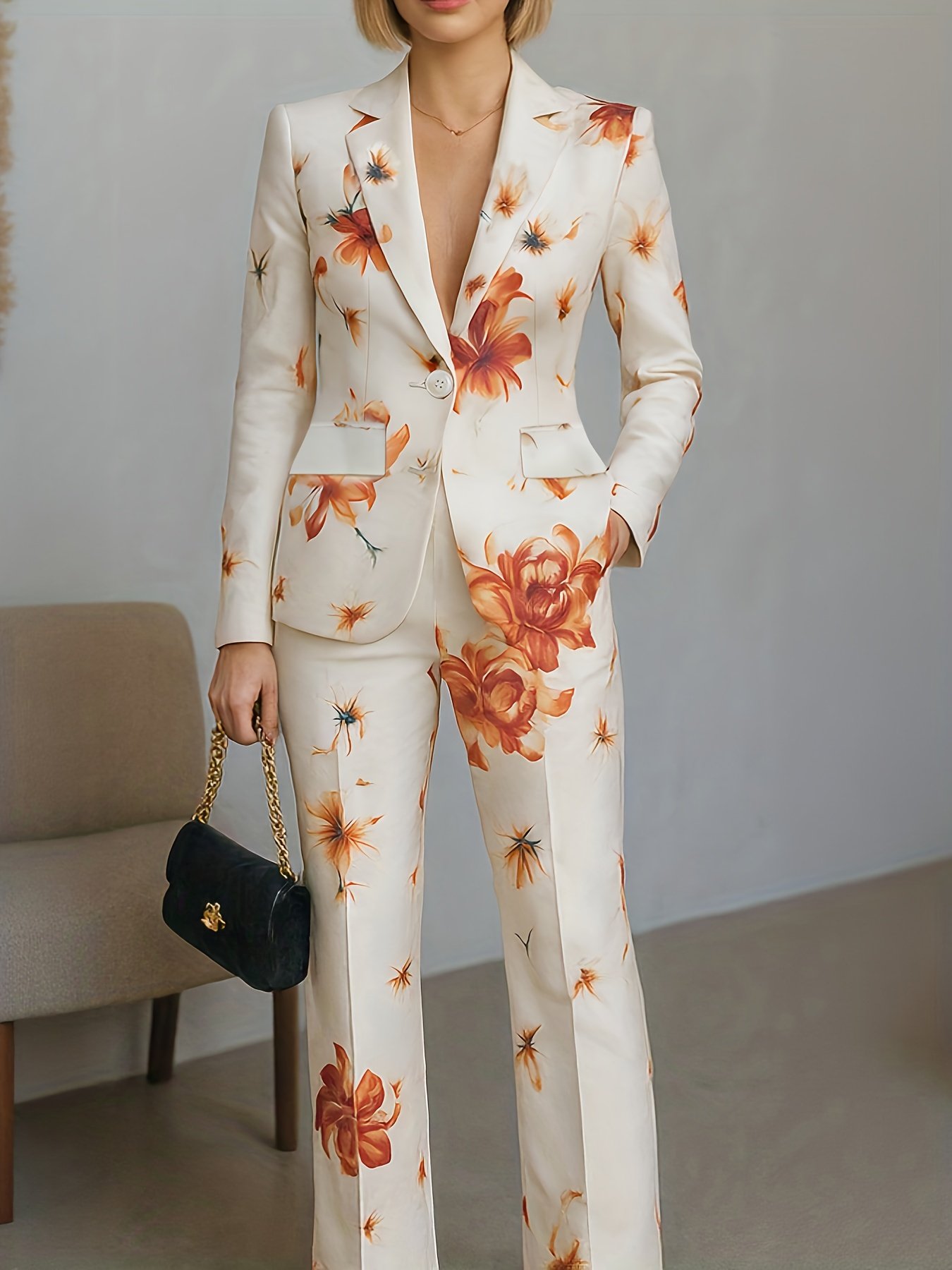 Be the first to review “Spring/Autumn New Arrival High-End Fashion Positioning Print Elegant Single-Breasted Pocket Lined Suit Jacket + Business Suit Trousers Suit Set” Cancel reply