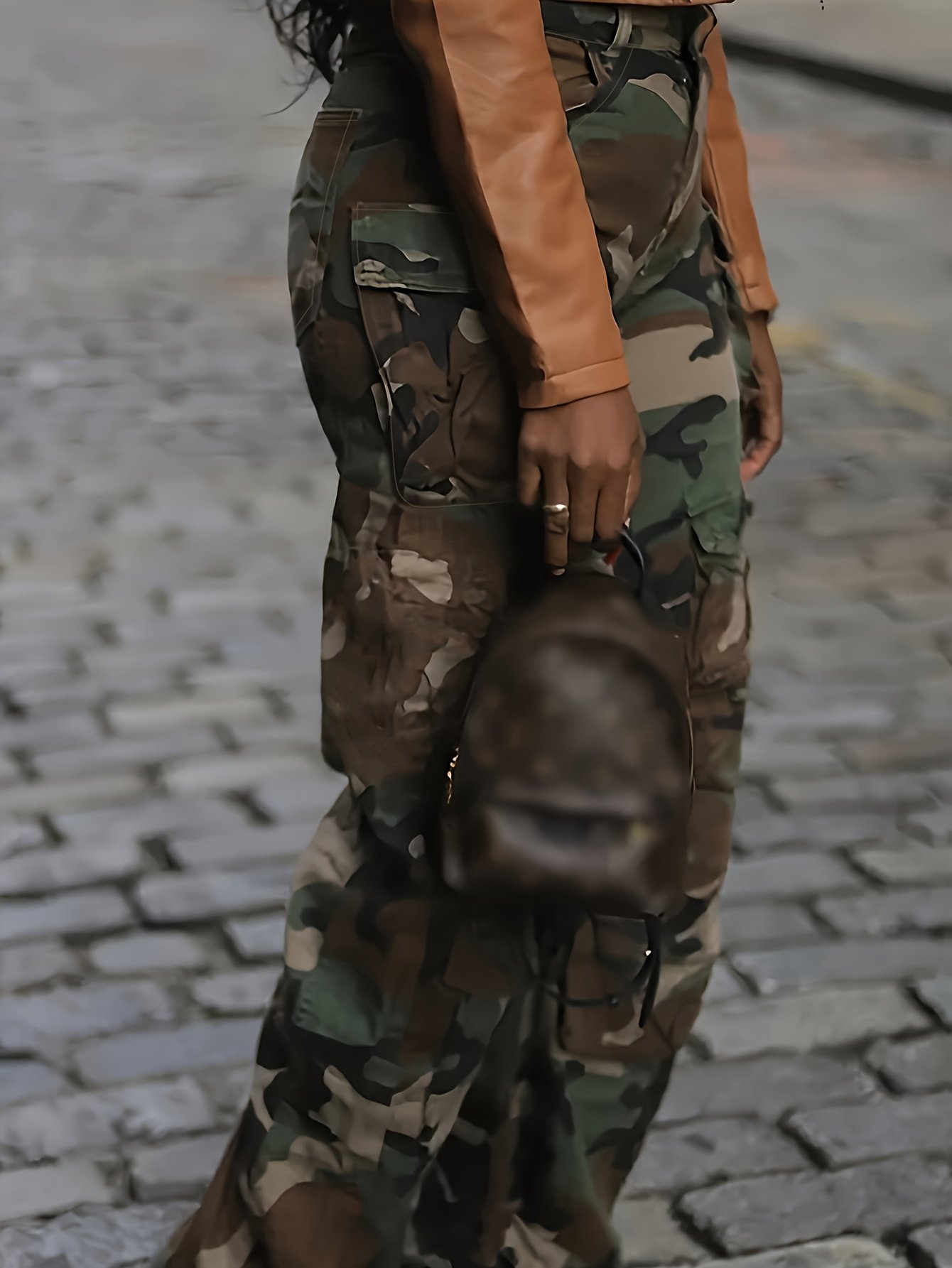 Women's Camo Cargo Pants Wide-Leg Work Pants with Multi-Pocket Design, Elastic Cuff Hem & Button Closure – All-Season Trousers for Outdoor,, Casual Wear – Heavy-Duty Non-Stretch Camouflage Pants for Women