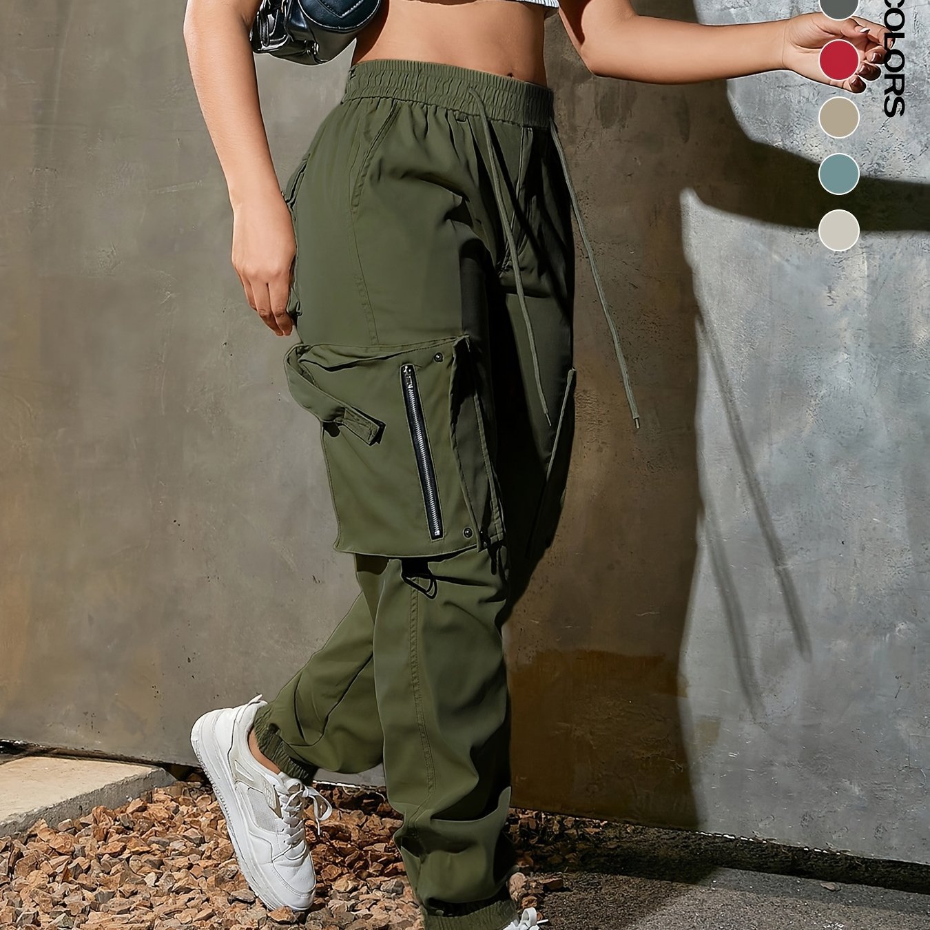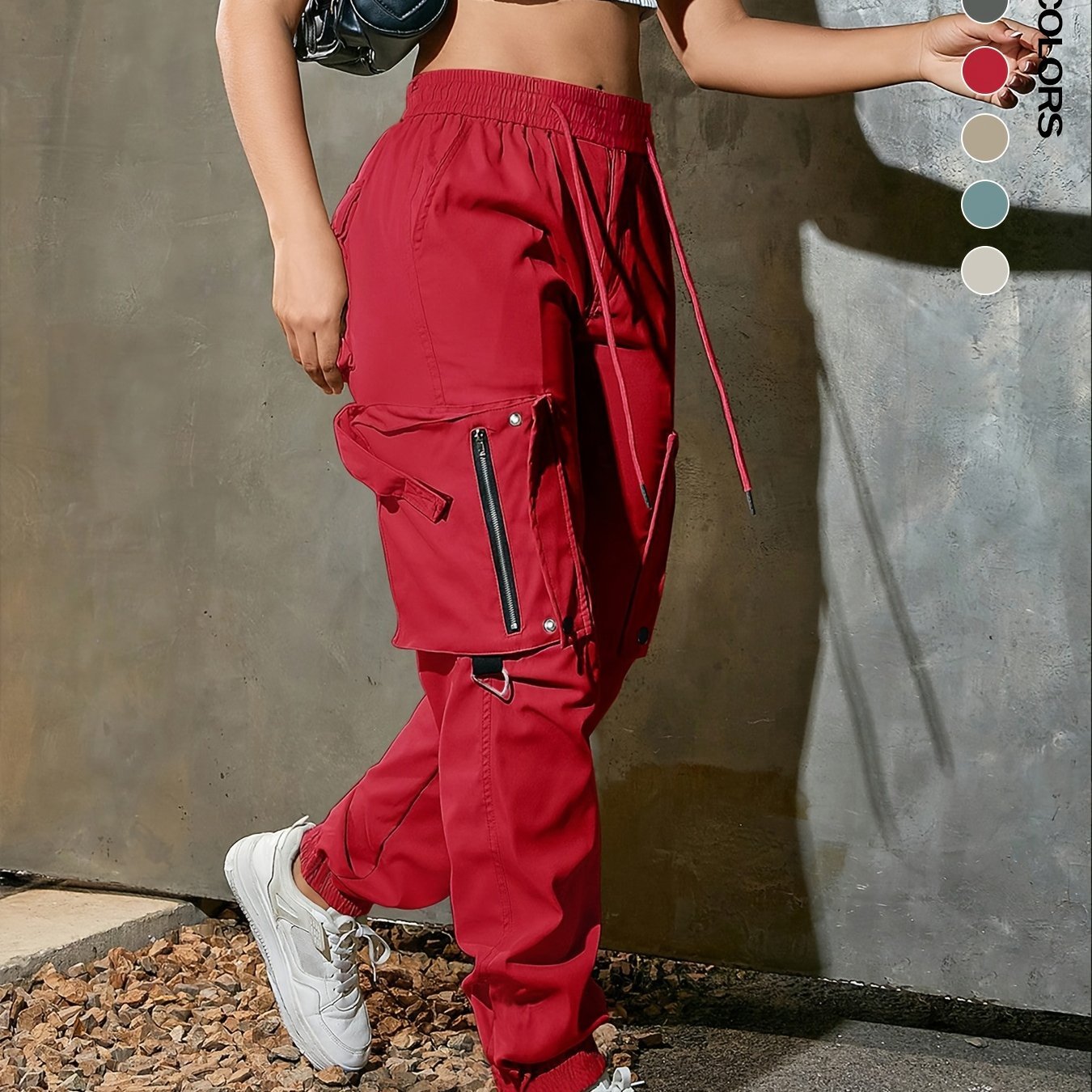 Be the first to review “Women's Casual High-waisted Wide-leg Cargo Pants with Drawstring Waist and Multiple Flap Pockets, Y2K Style Solid Color Cuffed Pants, Soft Polyester, Suitable for All Seasons” Cancel reply