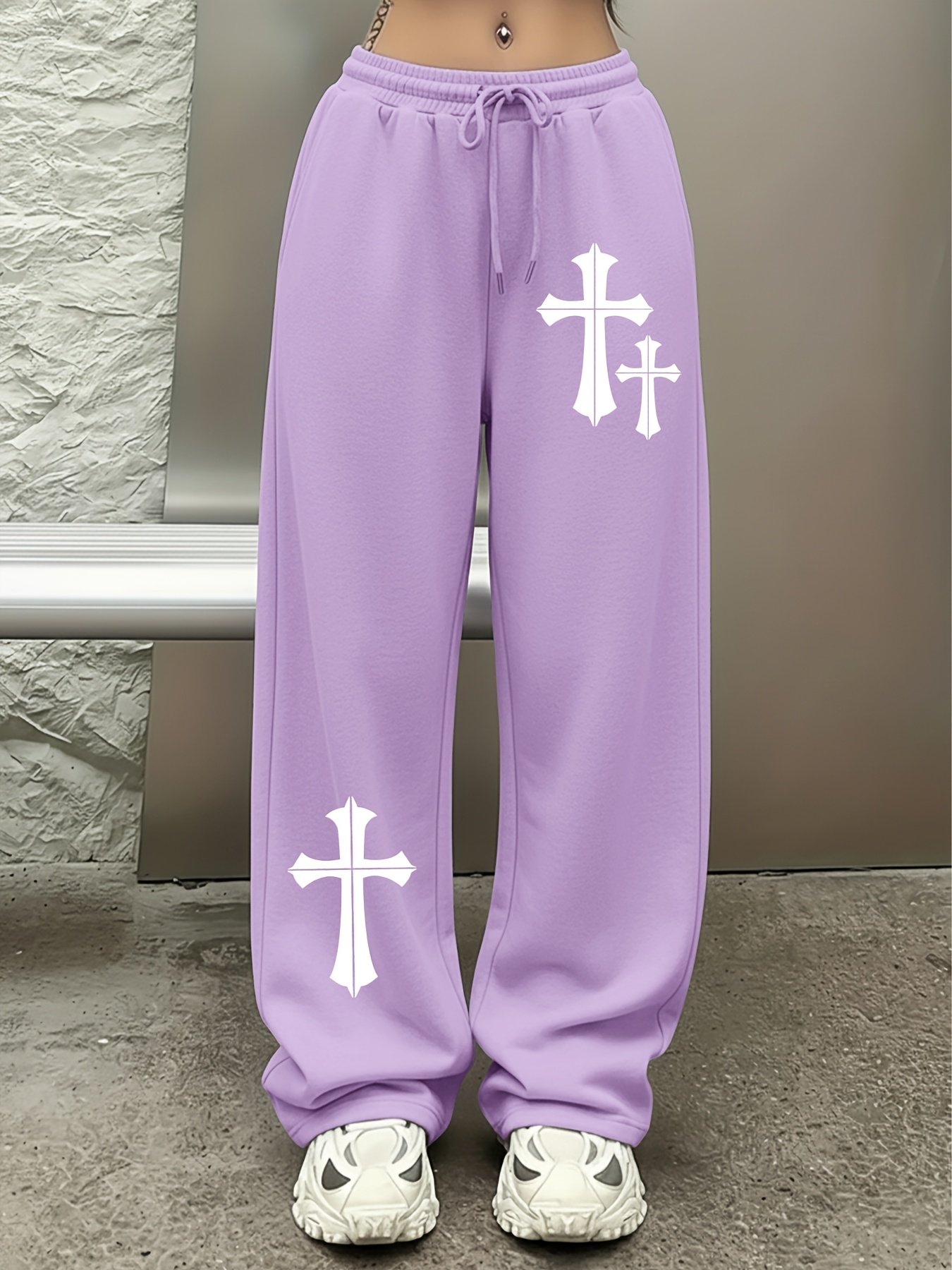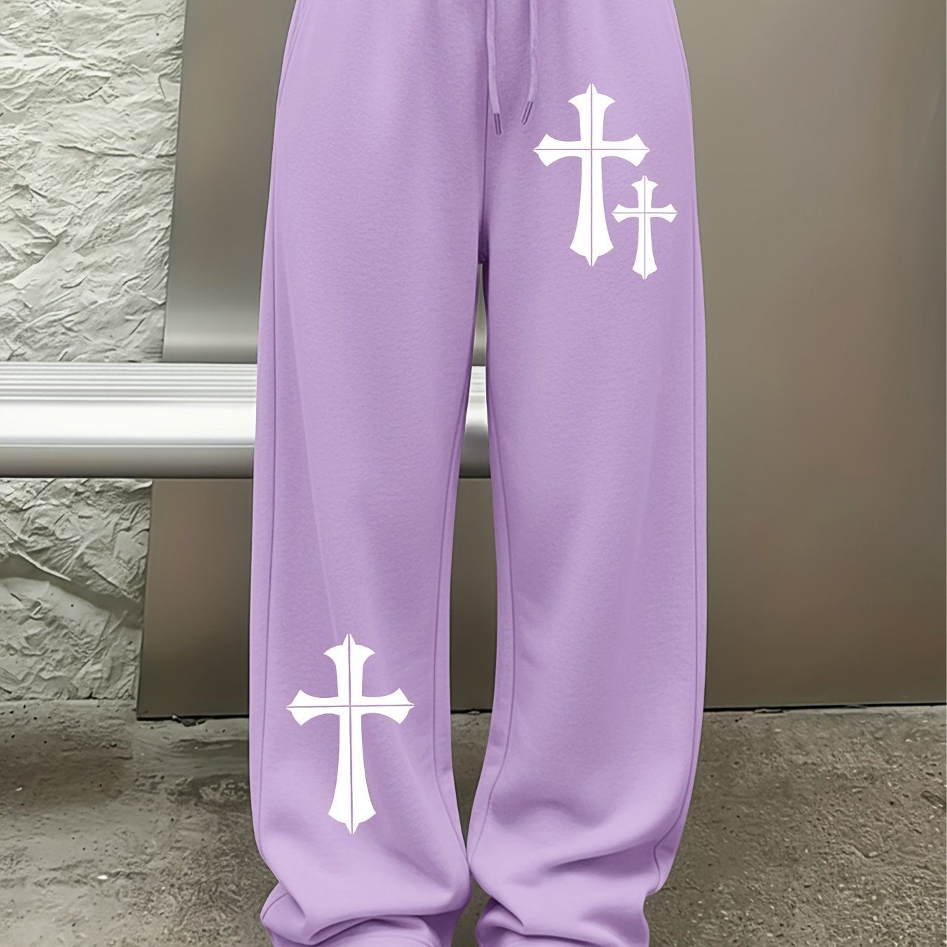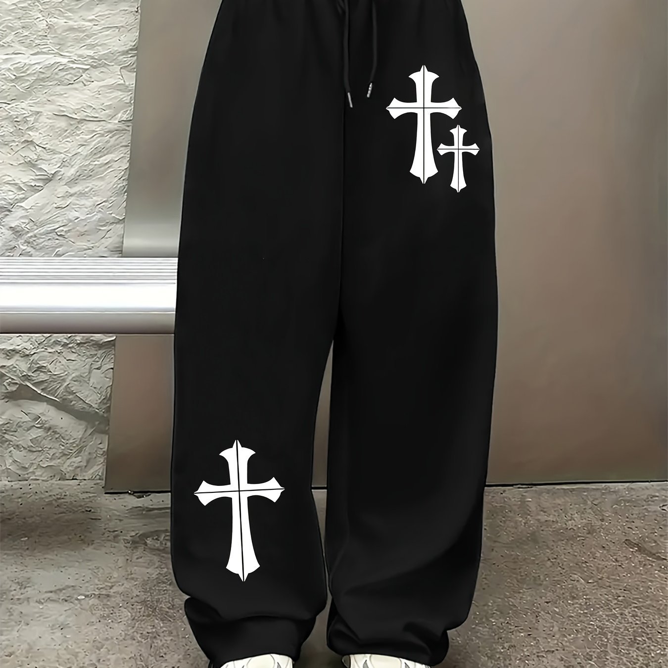 Women's Joggers with Cross Print, Street Style Loose-Fit Casual Athletic Pants