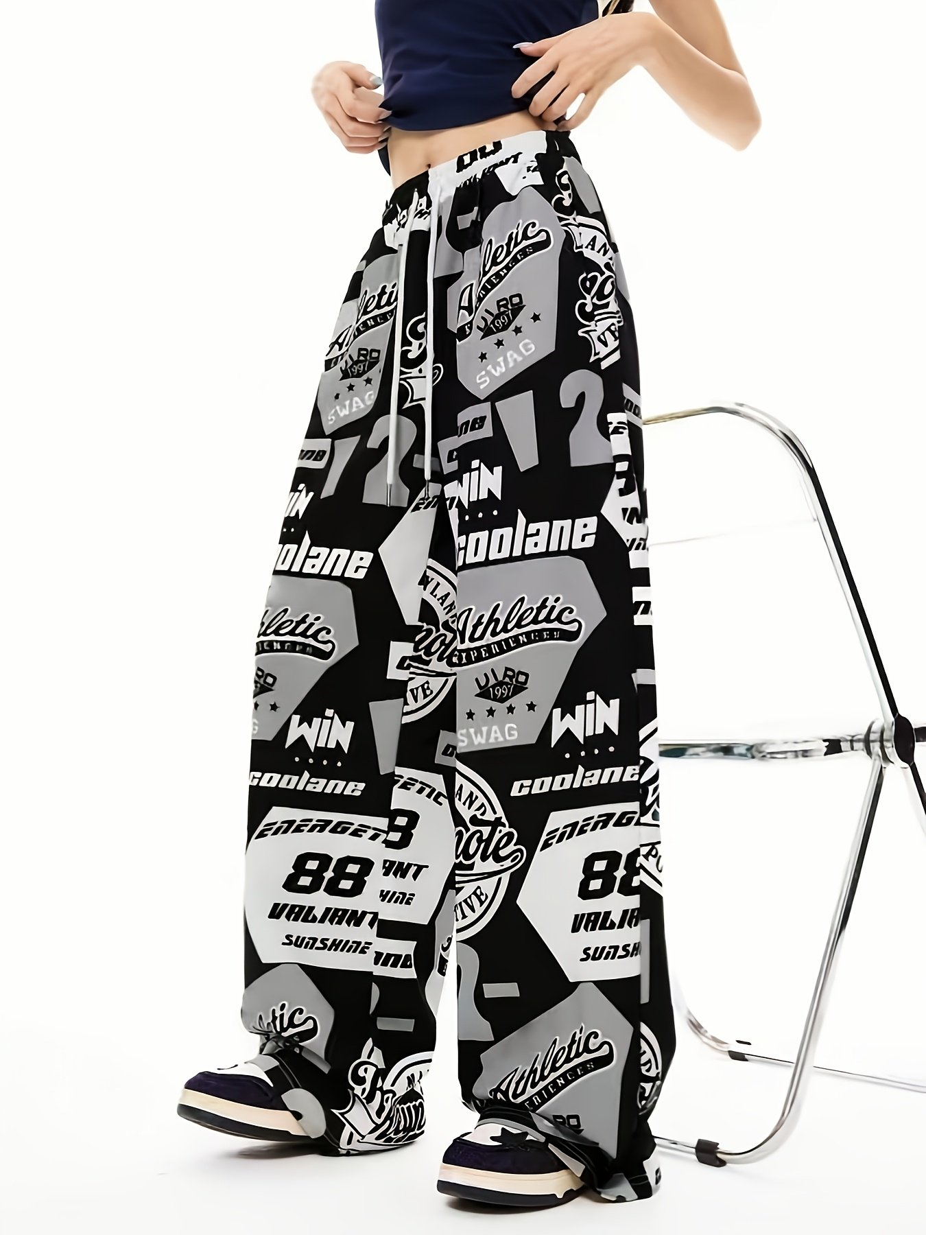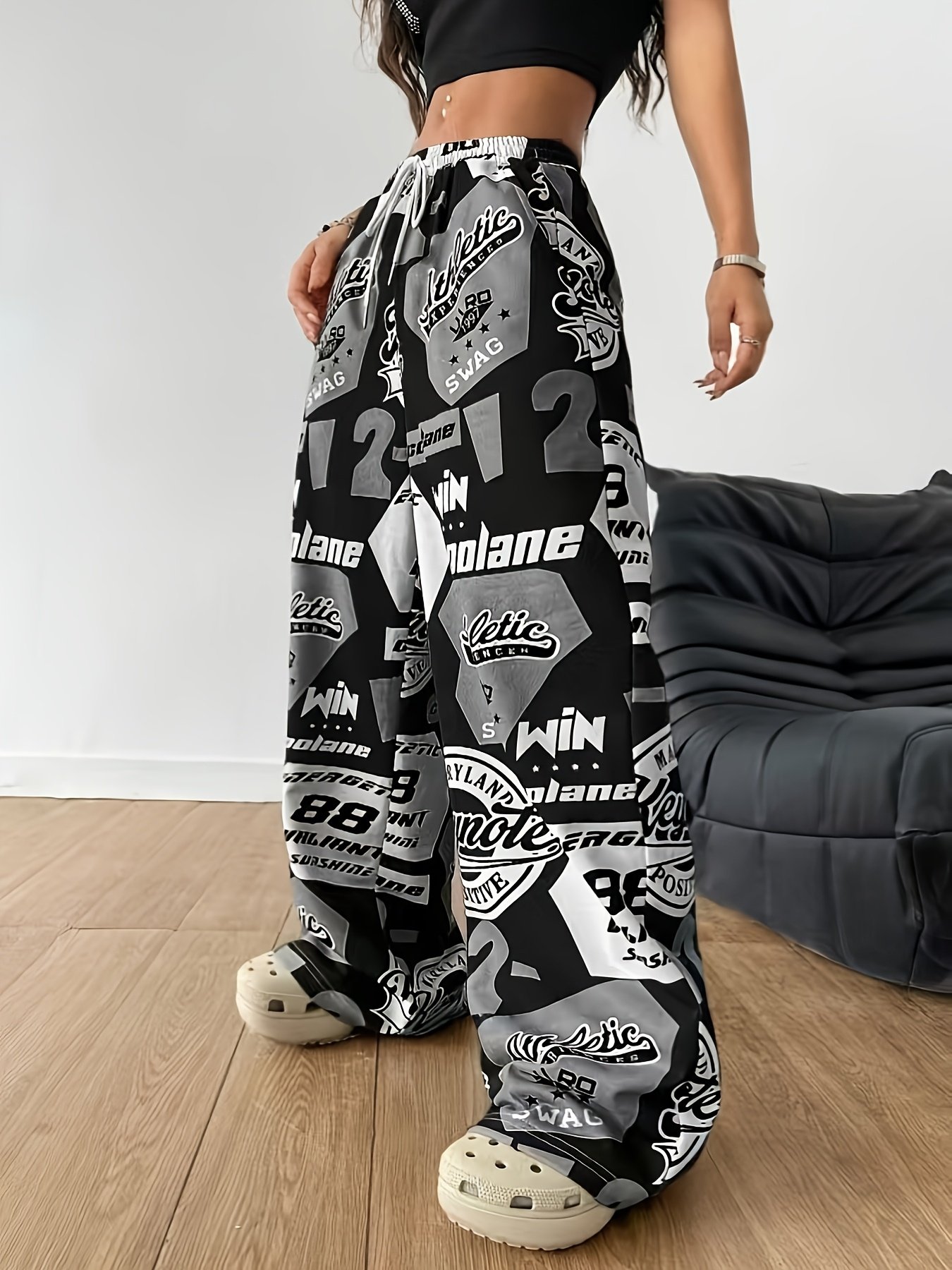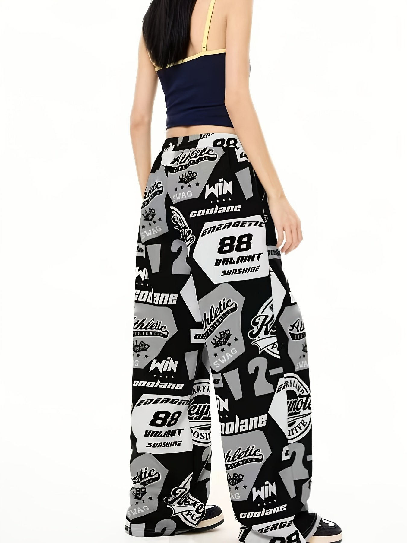 Y2K Style Women'S Joggers with Printed Wide-Leg Design Featuring Letter Patterns, Suitable for All Seasons And Casual Wear